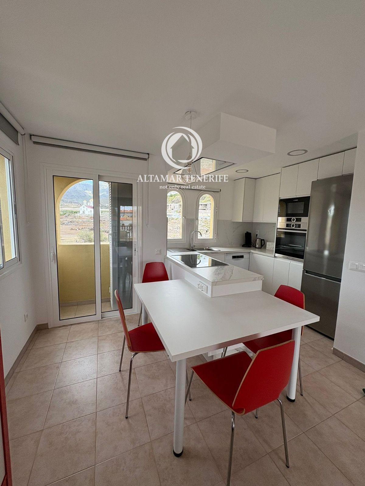 Die Wohnung verfügt über eine große Terrasse, die sowohl vom Wohnzimmer als auch vom Schlafzimmer zugänglich ist – perfekt, um sich zu entspannen und die offenen Meerblick und den Blick auf die Insel La Gomera zu genießen.