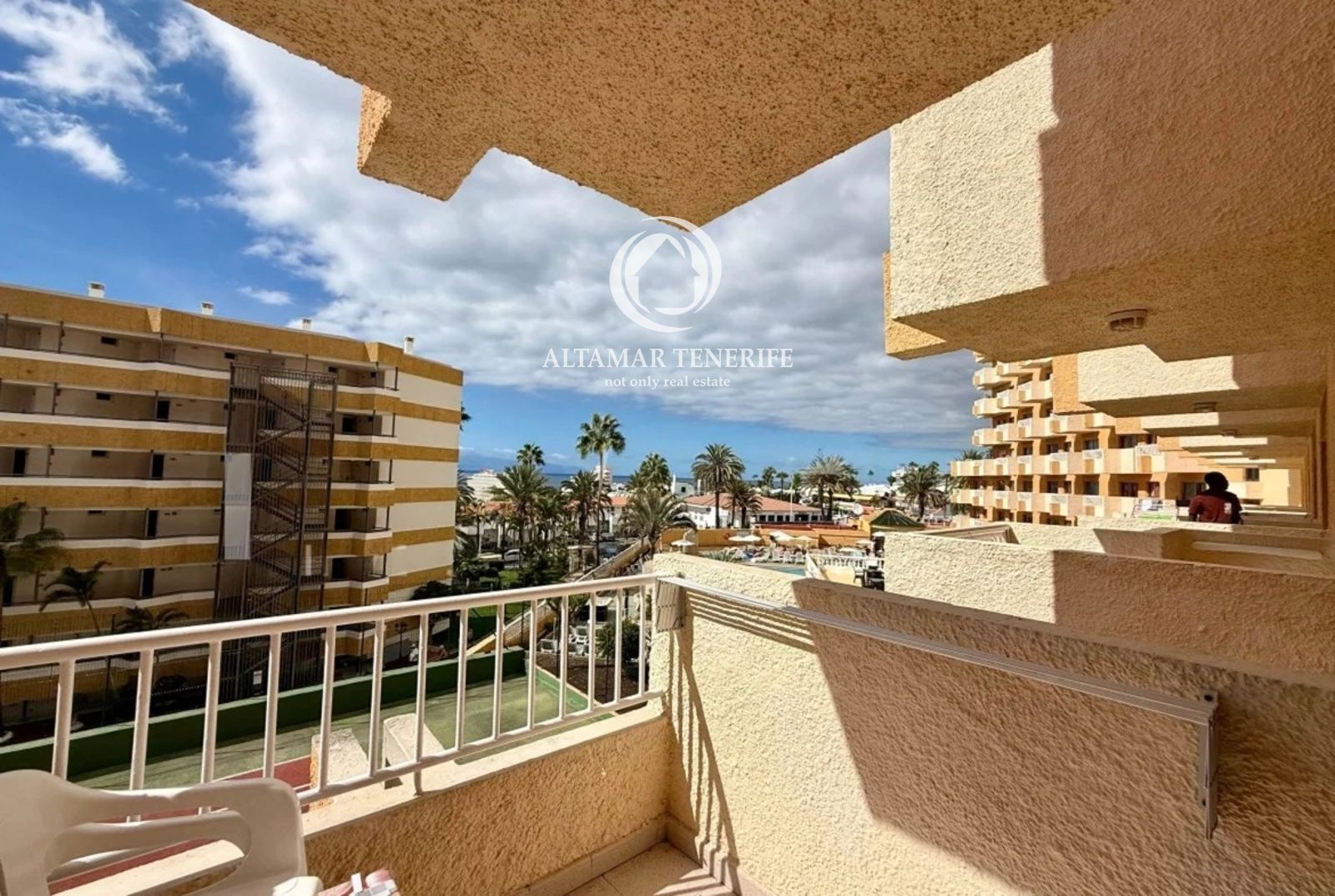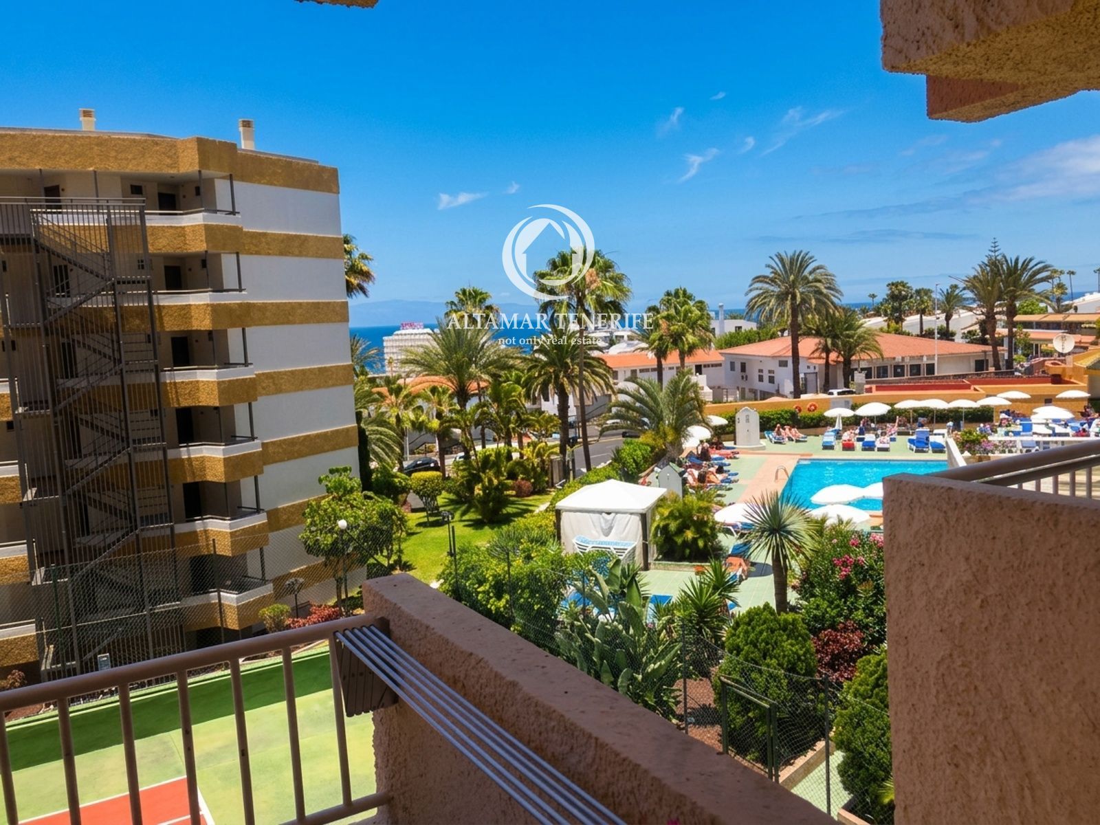 Charmante 1-Schlafzimmer-Wohnung mit Meerblick im bekannten „El Caribe“-Komplex im Herzen von Playa de Las Américas, nur wenige Gehminuten vom Strand entfernt. Eine hervorragende Lage mit Komfort und entspanntem Küstenleben.