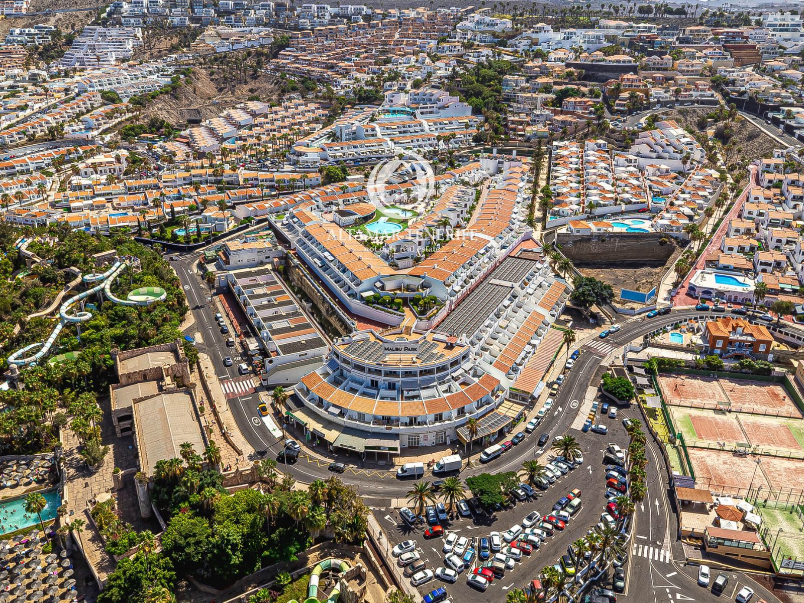 Das Apartment liegt im bekannten Komplex Malibu Park, der alles bietet, was man für ein angenehmes Leben auf der Insel braucht: zwei Gemeinschaftspools (für Erwachsene und Kinder), Aufzug, Kinderspielplatz und eine gepflegte Anlage. Direkt am Eingang des Komplexes befinden sich ein Gemüse- und Obstladen sowie ein Supermarkt. Öffentliche Parkplätze sind direkt vor dem Eingang vorhanden.