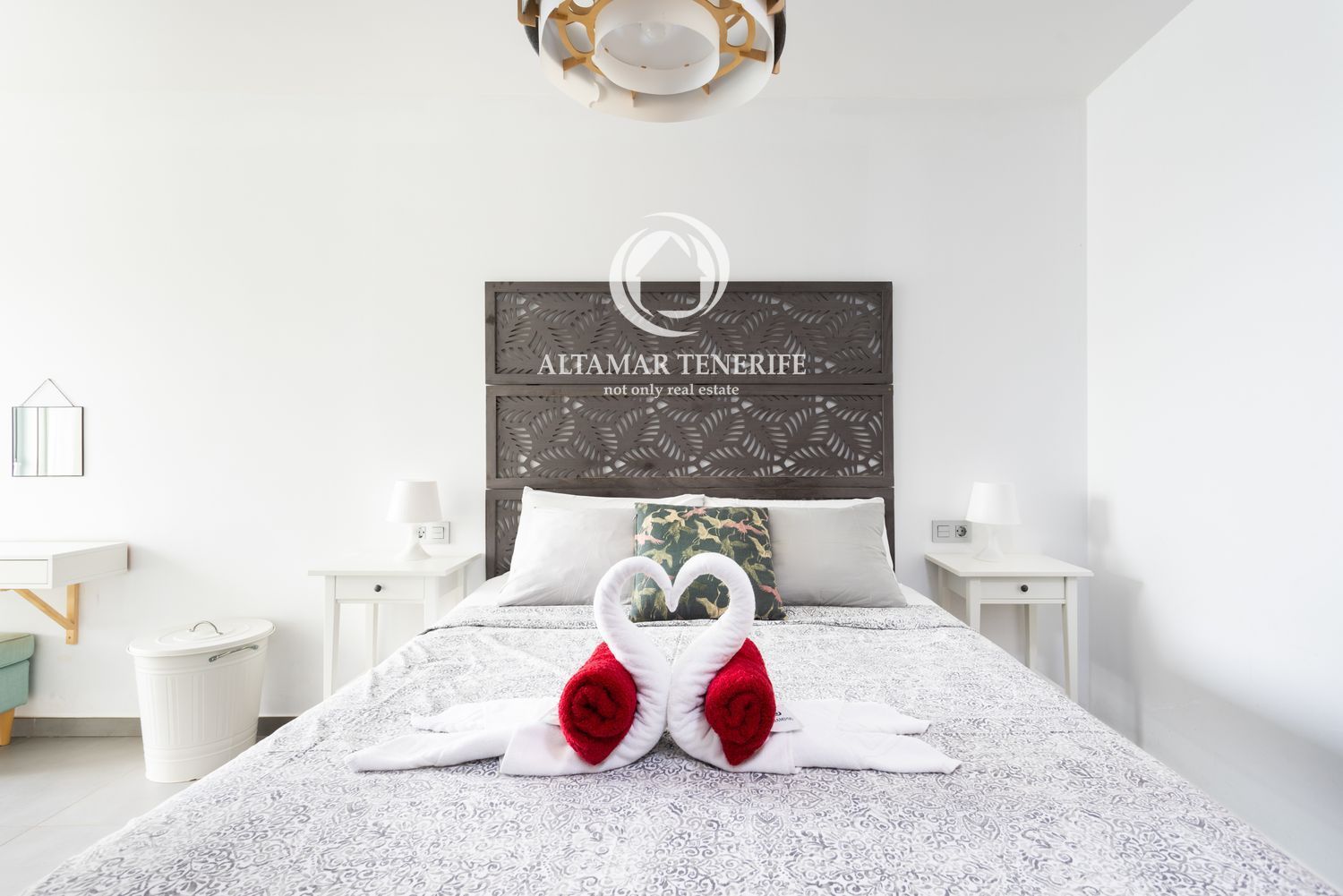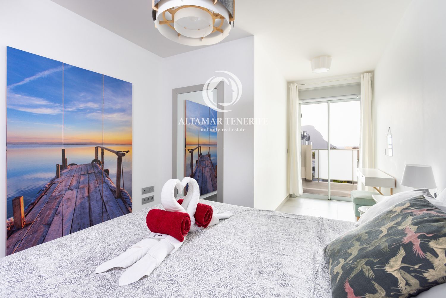 Die Wohnung verfügt über eine voll ausgestattete offene Küche, Wohn-Essbereich mit Zugang zur ersten Terrasse von 21,20 m², Hauptschlafzimmer, zweites Schlafzimmer, Badezimmer mit Dusche und einen Hauswirtschaftsraum. Von der ersten Terrasse führt eine Wendeltreppe zu einer privaten Terrasse von 47,82 m² mit direktem Meerblick.