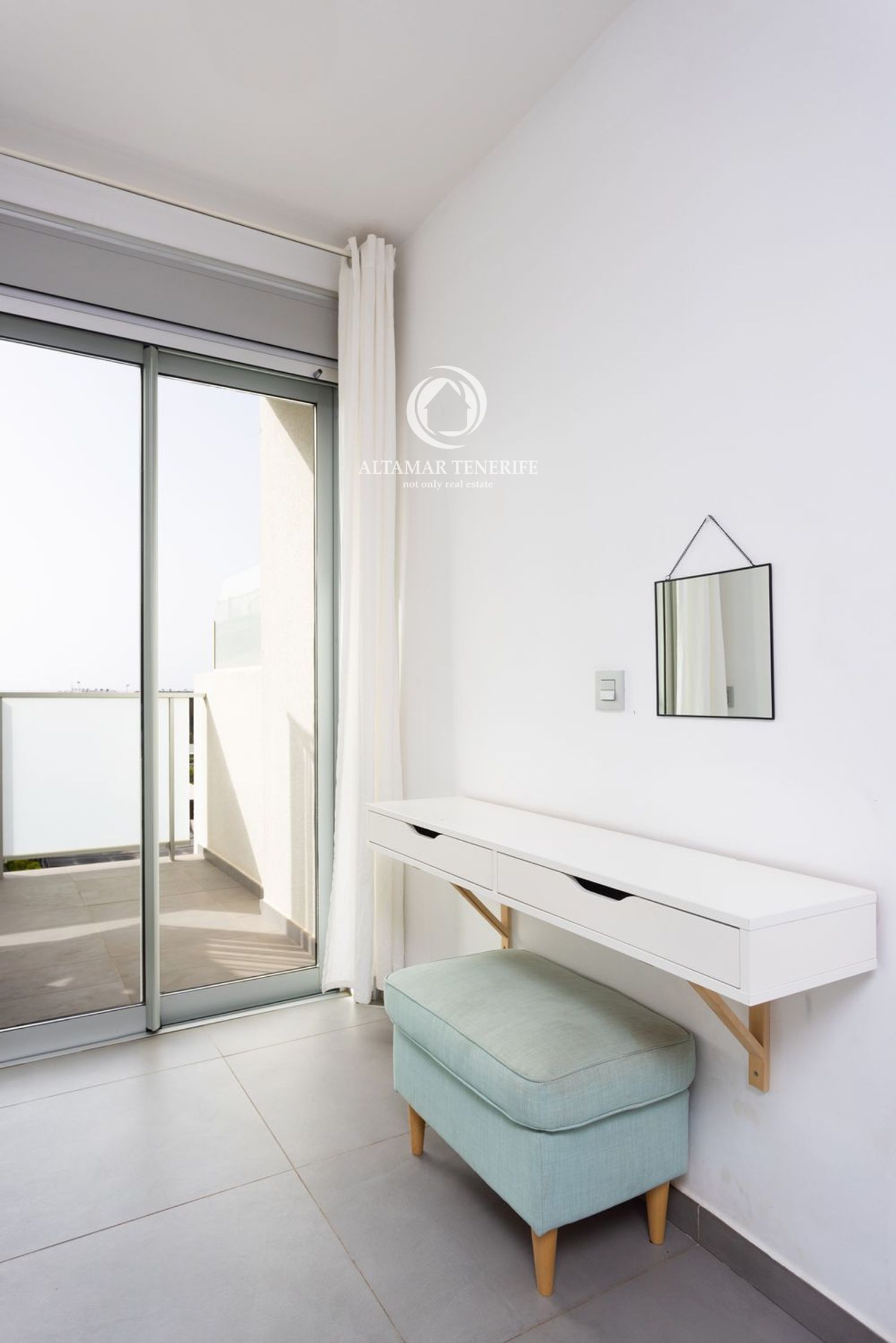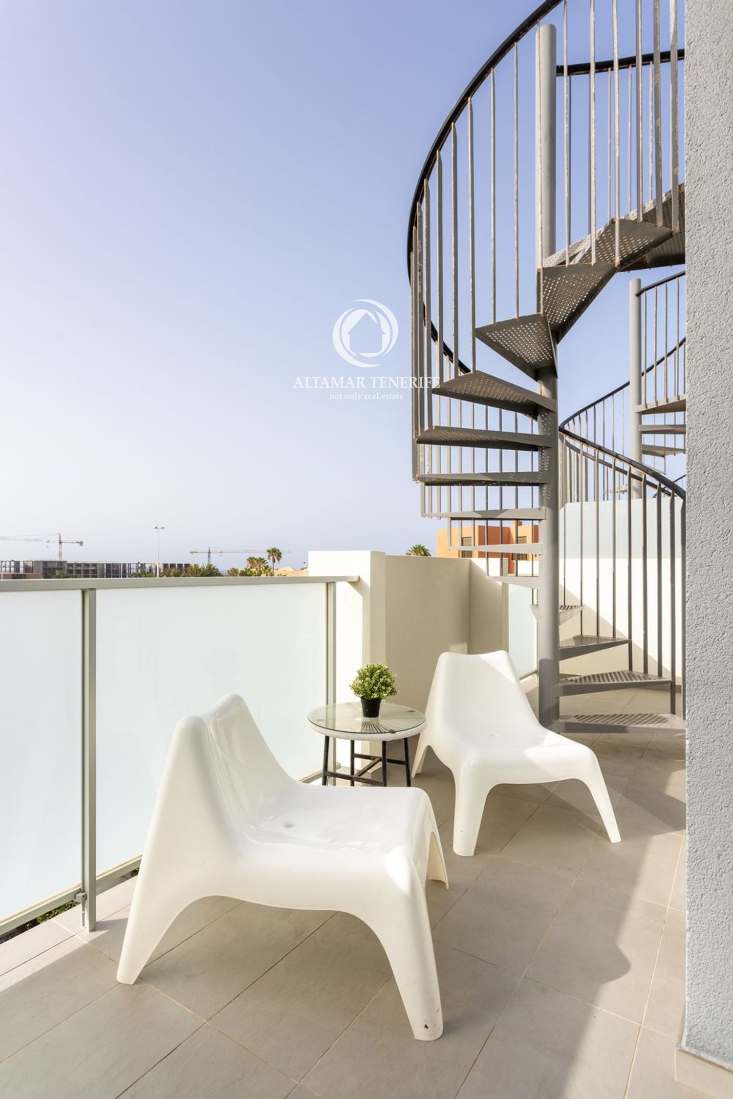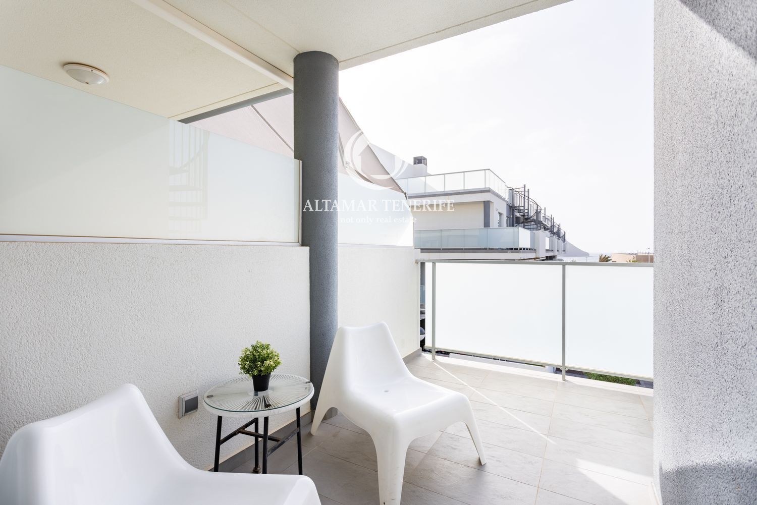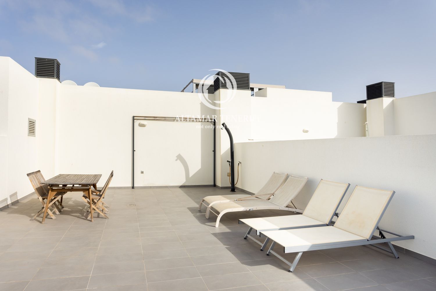 Wir präsentieren dieses moderne Penthouse mit zwei Schlafzimmern und atemberaubendem Blick auf den Atlantischen Ozean, gelegen in der exklusiven Gegend von La Tejita im Residencial Terrazas de Sotavento.