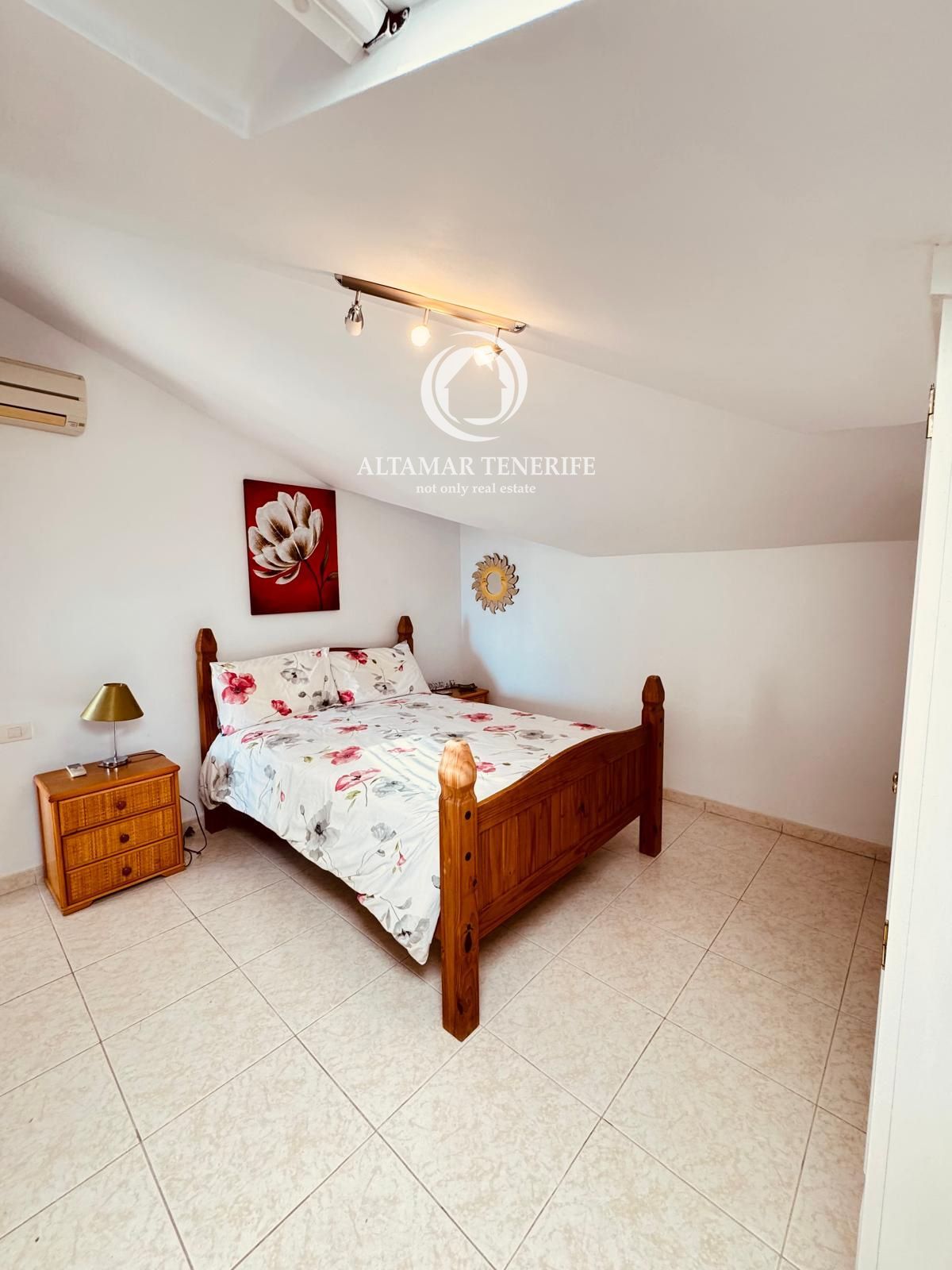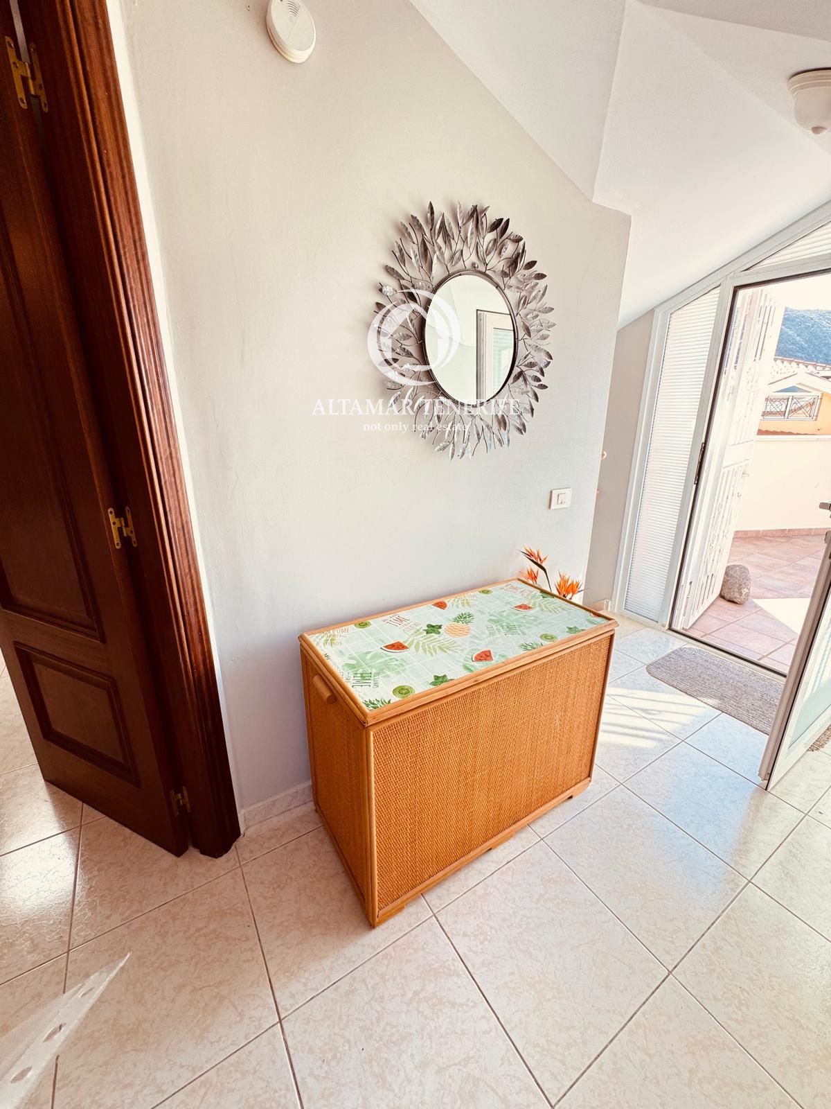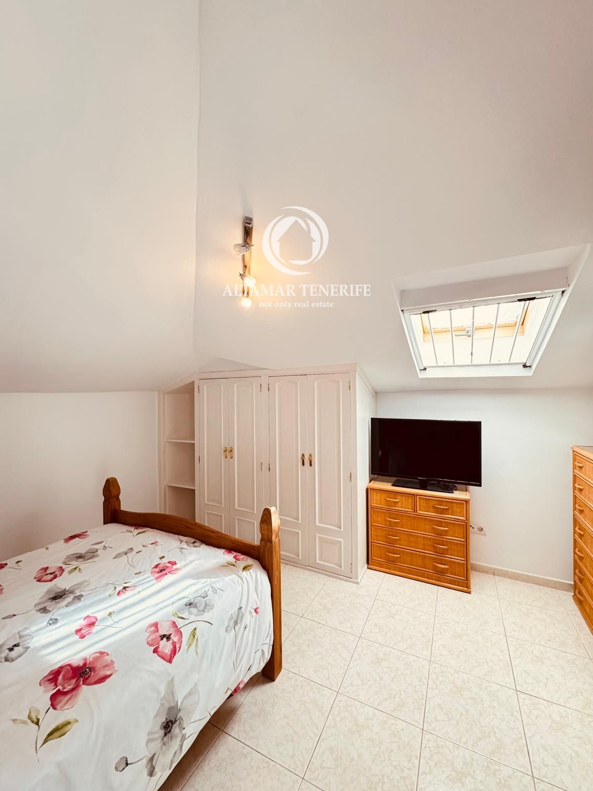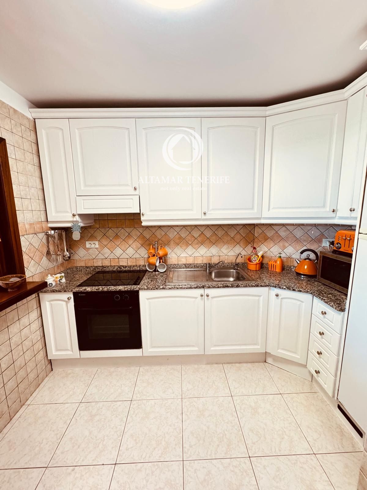 Die Immobilie verfügt über zwei geräumige Doppelzimmer mit Einbauschränken und drei moderne Badezimmer, davon zwei en suite mit bodengleichen Duschen. Die vollständig ausgestattete, separate Küche beinhaltet hochwertige Geräte, während der helle Wohn-/Essbereich direkt auf eine große 80 m² Terrasse führt – perfekt, um das Klima Teneriffas und den Blick auf Pool und Gärten zu genießen. Ein elektrisch betriebener Sonnenschutz sorgt für Schatten und Komfort im Freien.
