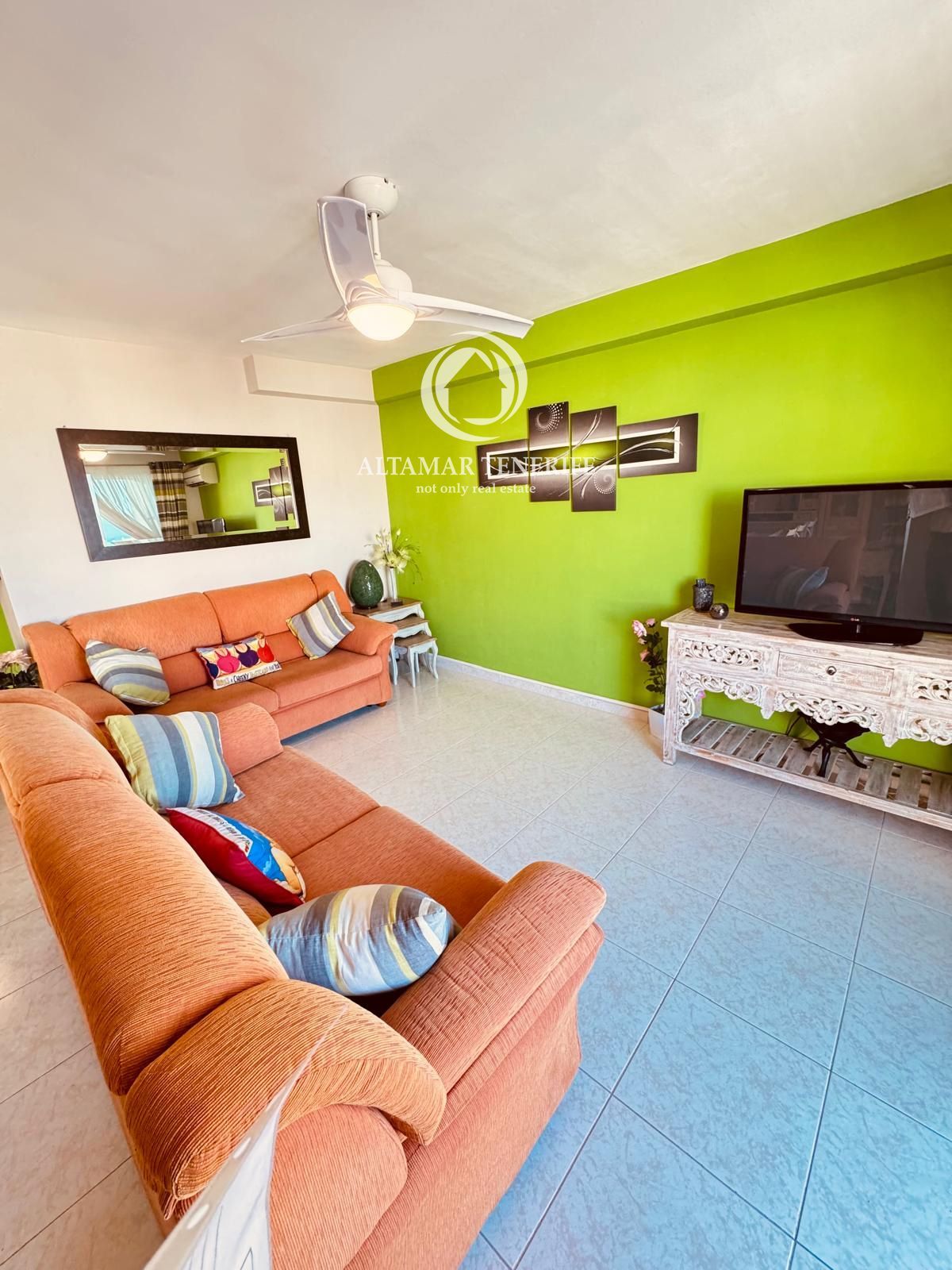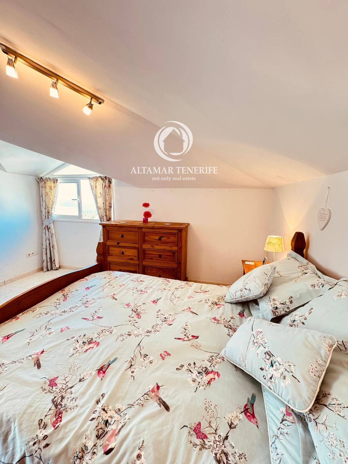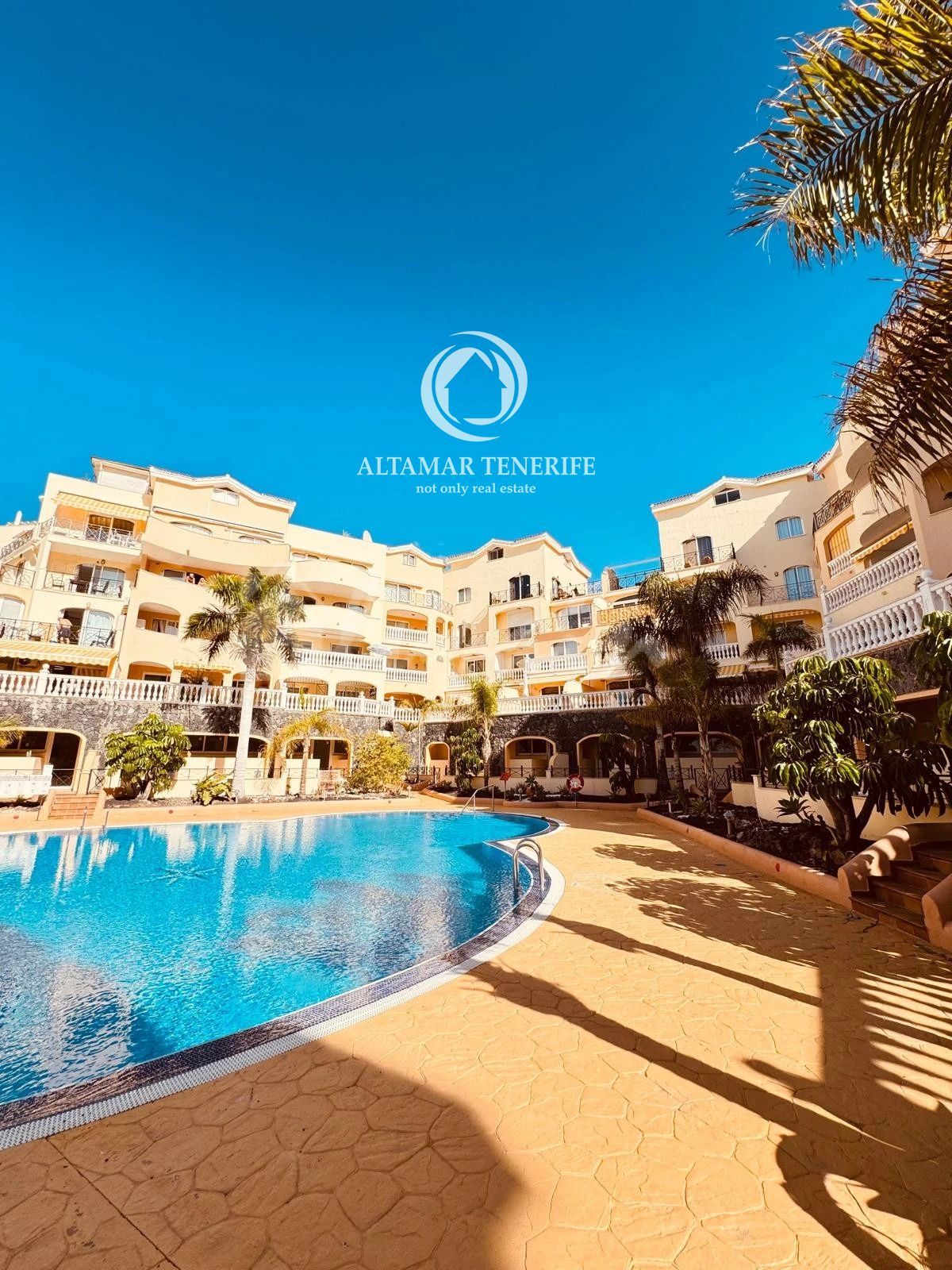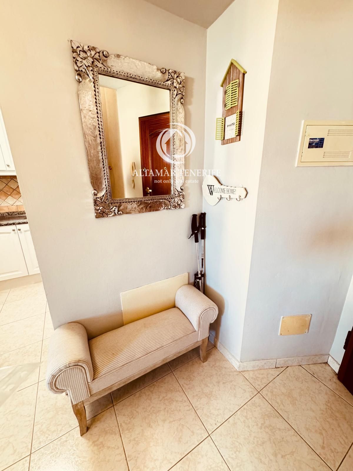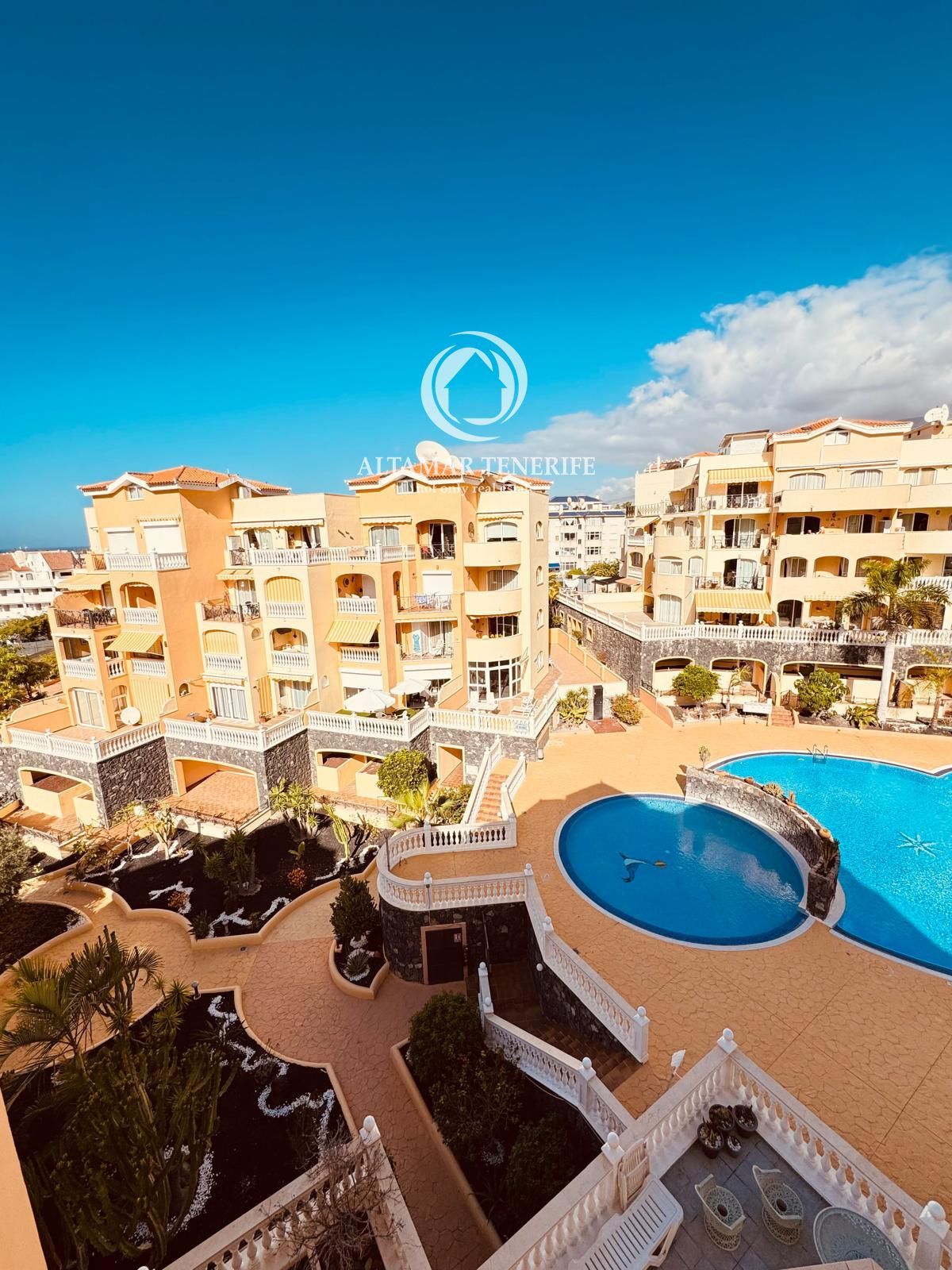 Die Immobilie verfügt über zwei geräumige Doppelzimmer mit Einbauschränken und drei moderne Badezimmer, davon zwei en suite mit bodengleichen Duschen. Die vollständig ausgestattete, separate Küche beinhaltet hochwertige Geräte, während der helle Wohn-/Essbereich direkt auf eine große 80 m² Terrasse führt – perfekt, um das Klima Teneriffas und den Blick auf Pool und Gärten zu genießen. Ein elektrisch betriebener Sonnenschutz sorgt für Schatten und Komfort im Freien.