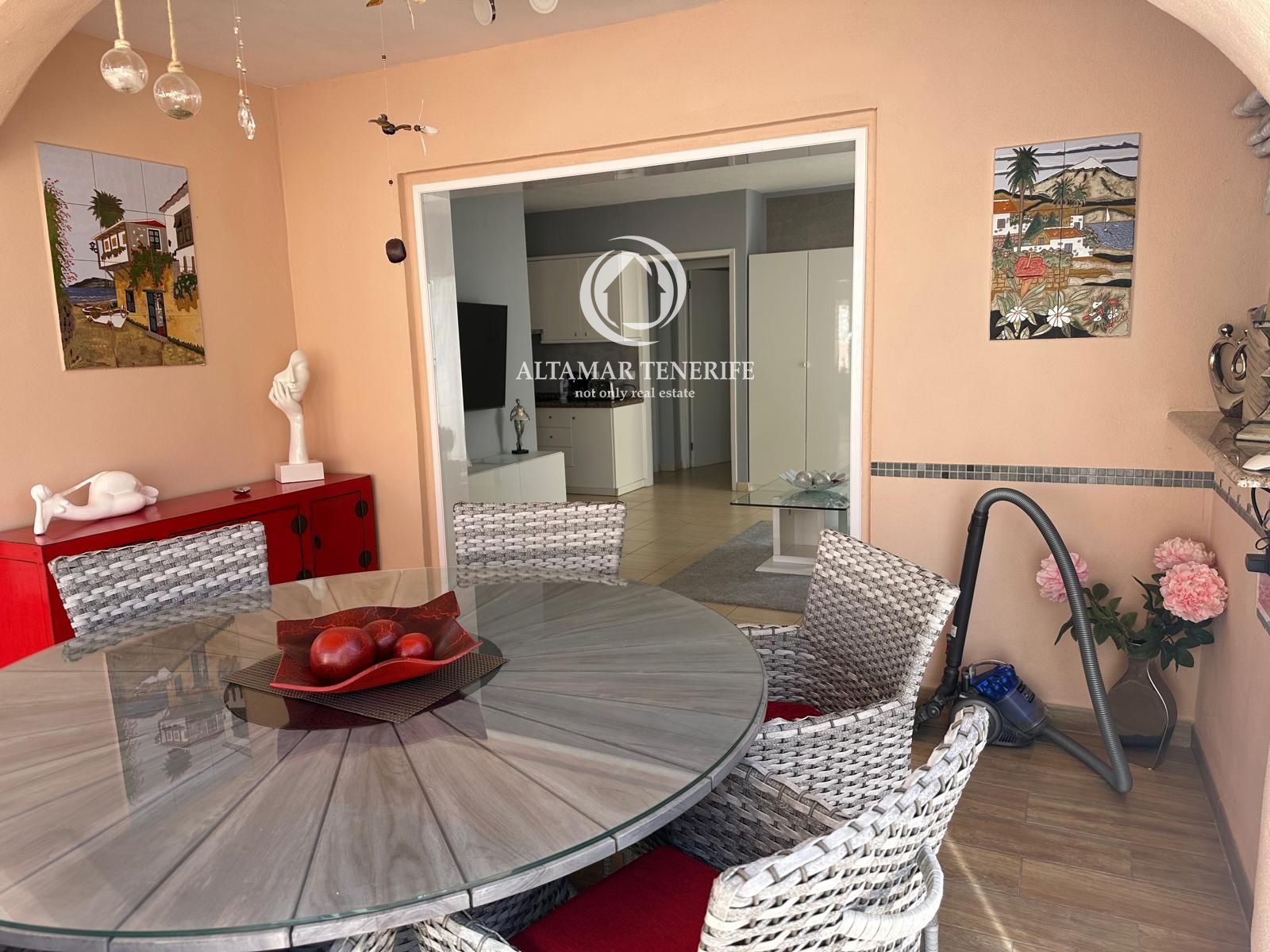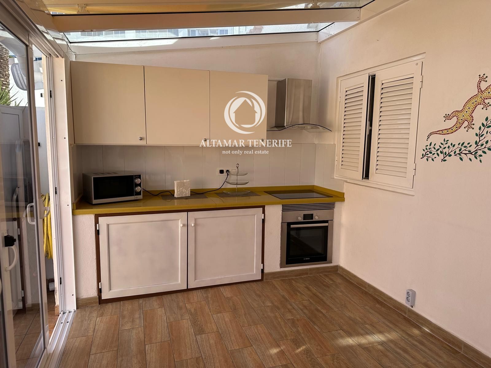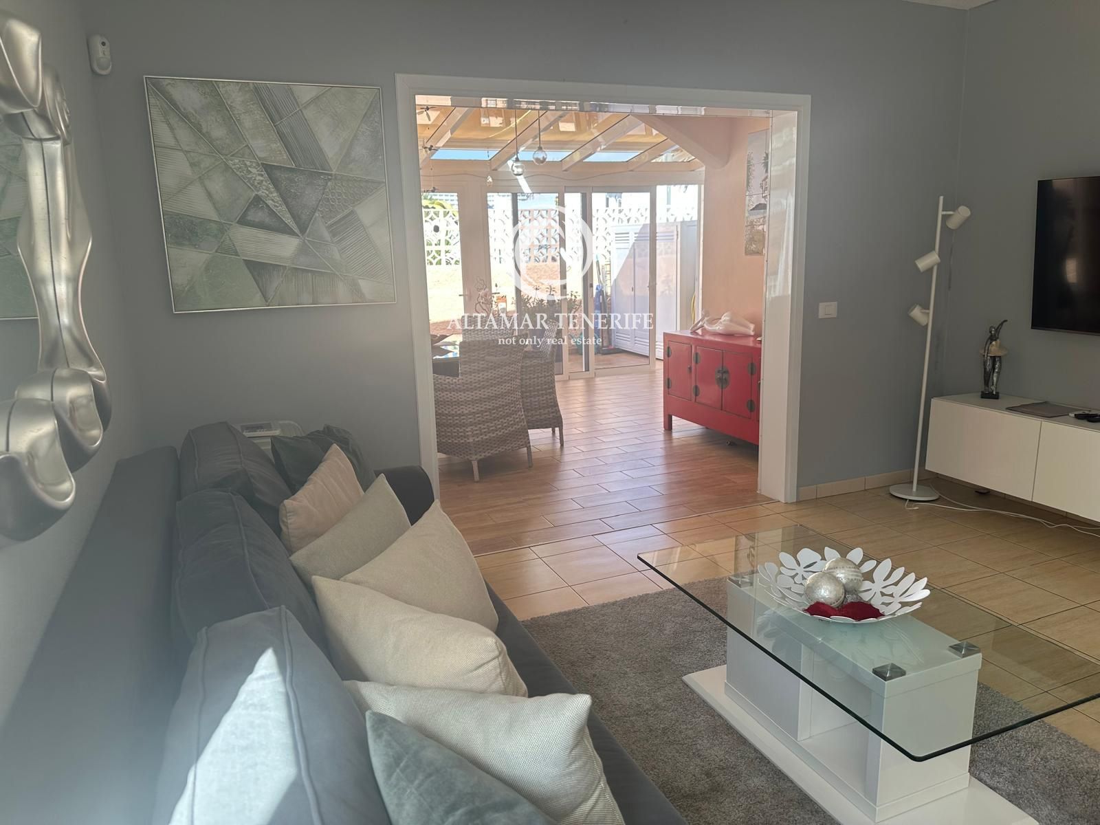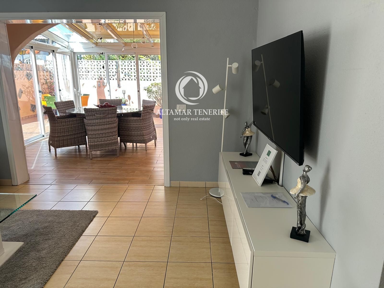 Im Außenbereich erwartet Sie eine private Terrasse mit ausreichend Platz für Sonnenliegen und einen Esstisch, ideal, um das privilegierte Klima im Süden Teneriffas zu genießen.