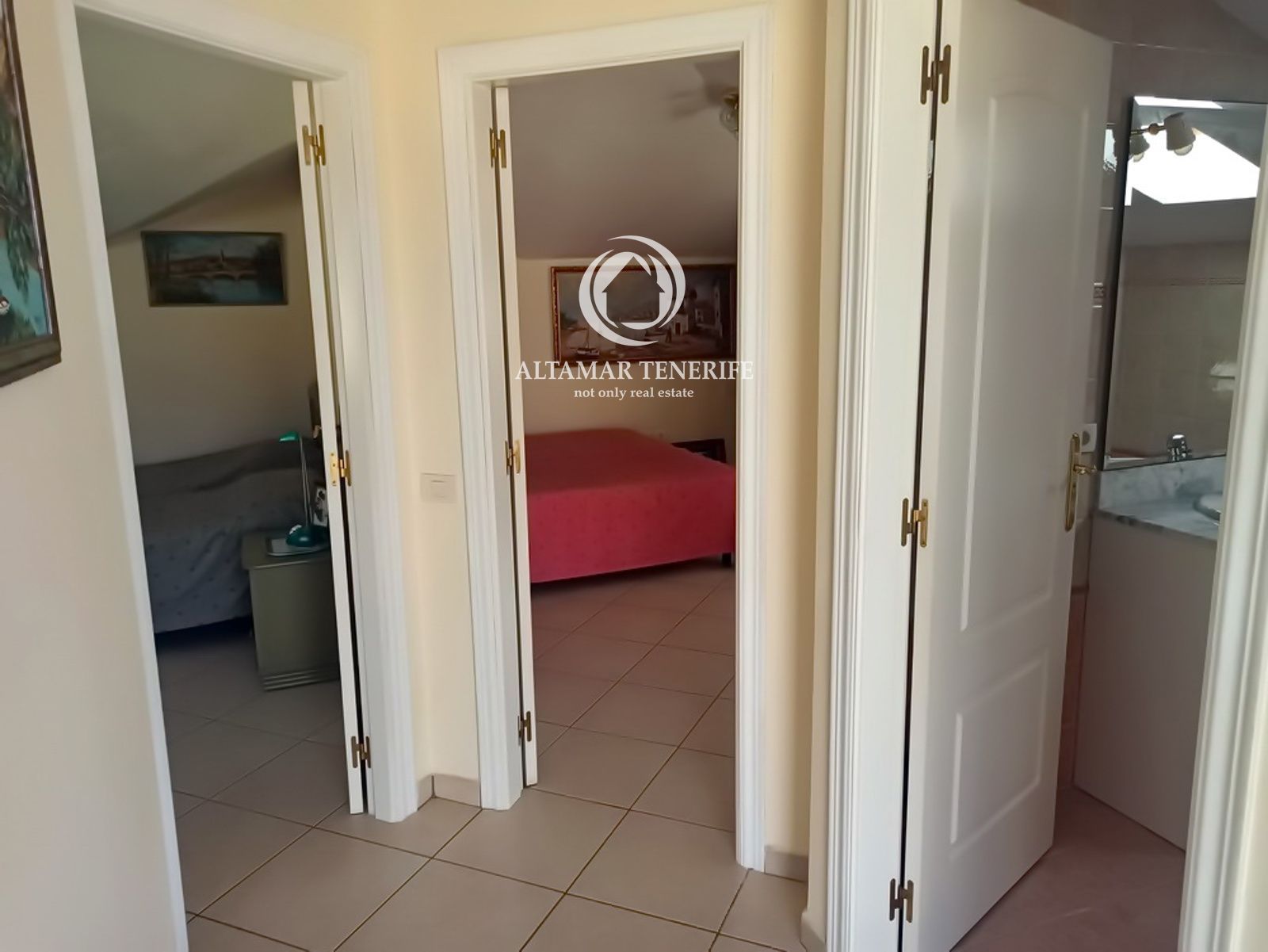 Das Obergeschoss (101 m²) umfasst zwei Schlafzimmer, zwei Bäder und eine große Solarium-Terrasse mit Panoramablick auf den Ozean.