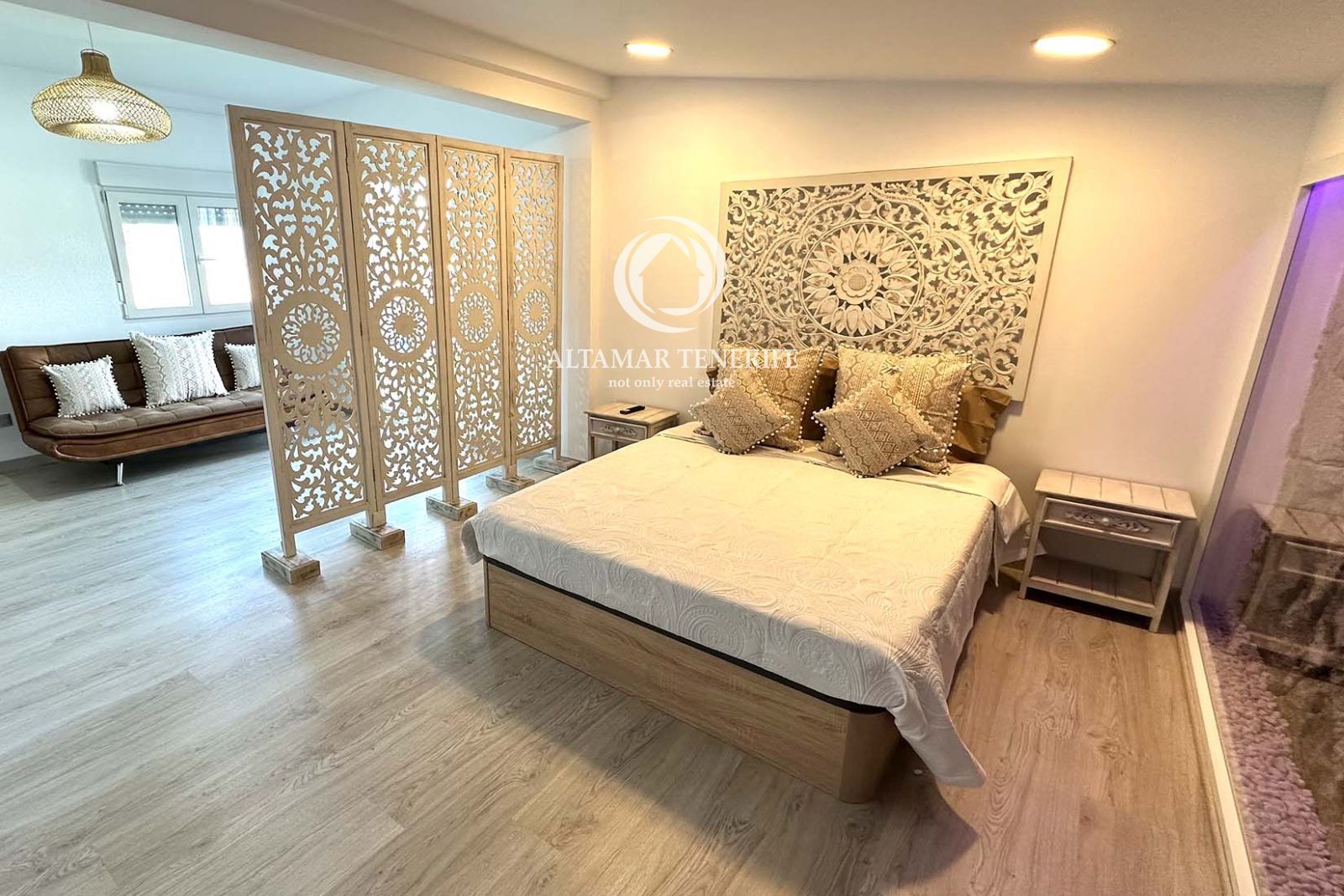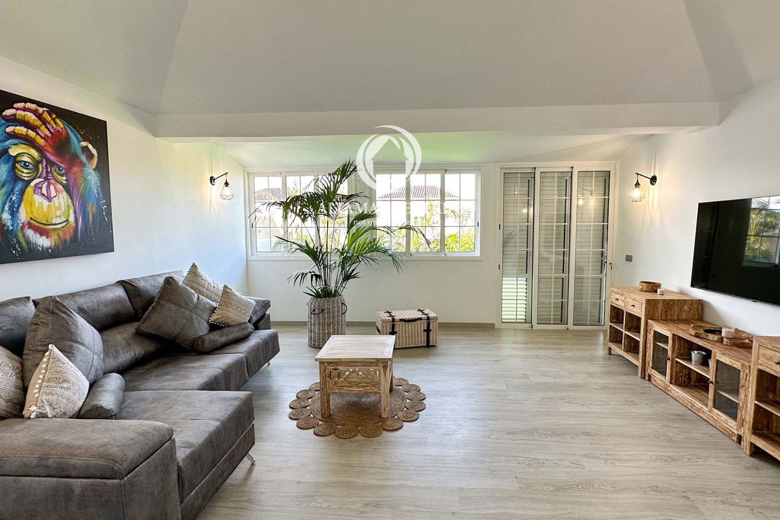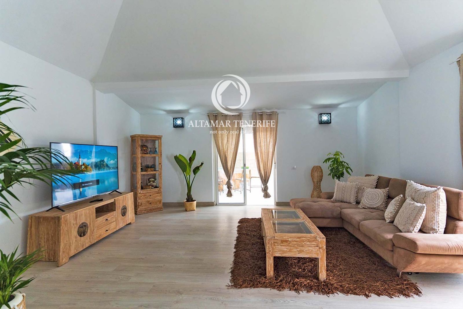 Diese elegante, 2000 erbaute und kürzlich renovierte Doppelhaushälfte liegt in der exklusiven Wohnanlage Valle de Fañabé. Auf einem 320 m² großen Grundstück verteilt sich das Haus über zwei Etagen mit hellem Wohnbereich und direktem Zugang zum Garten mit privatem Pool, separater Küche mit Essbereich, Gäste-WC und einem großzügigen Schlafzimmer mit Bad en suite im Erdgeschoss. Im Obergeschoss befinden sich zwei weitere Schlafzimmer, ein Badezimmer und ein spektakulärer Meerblick.