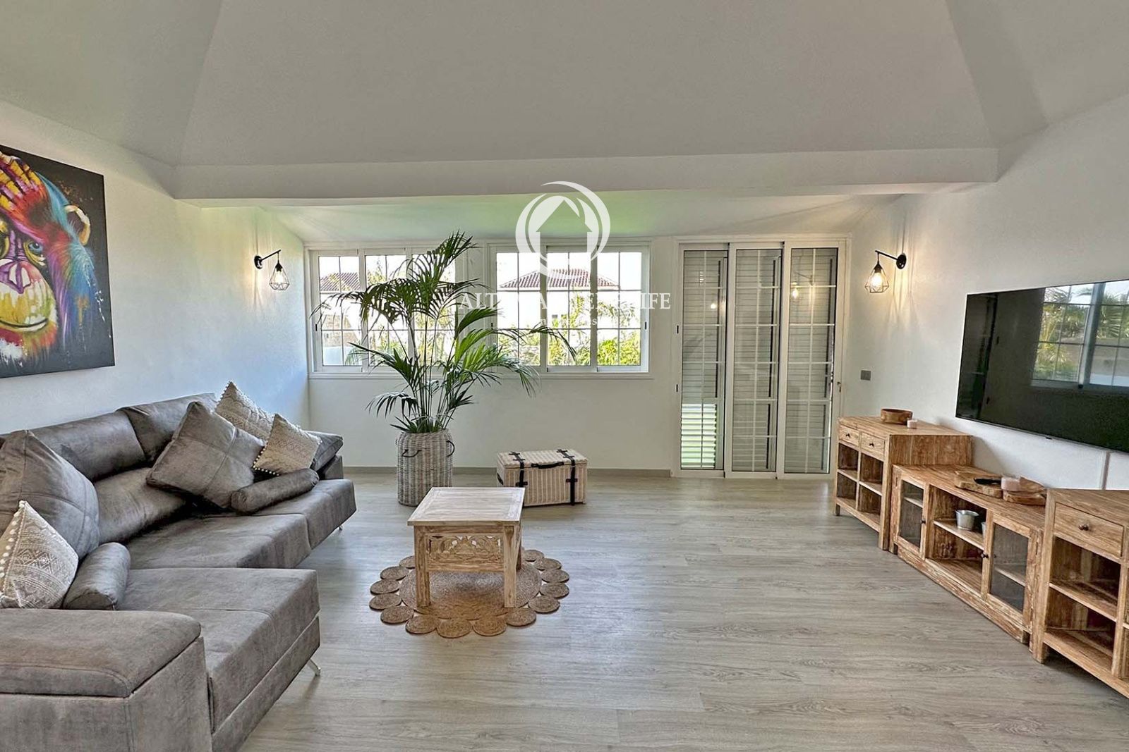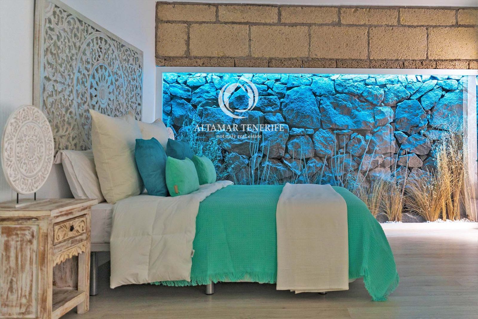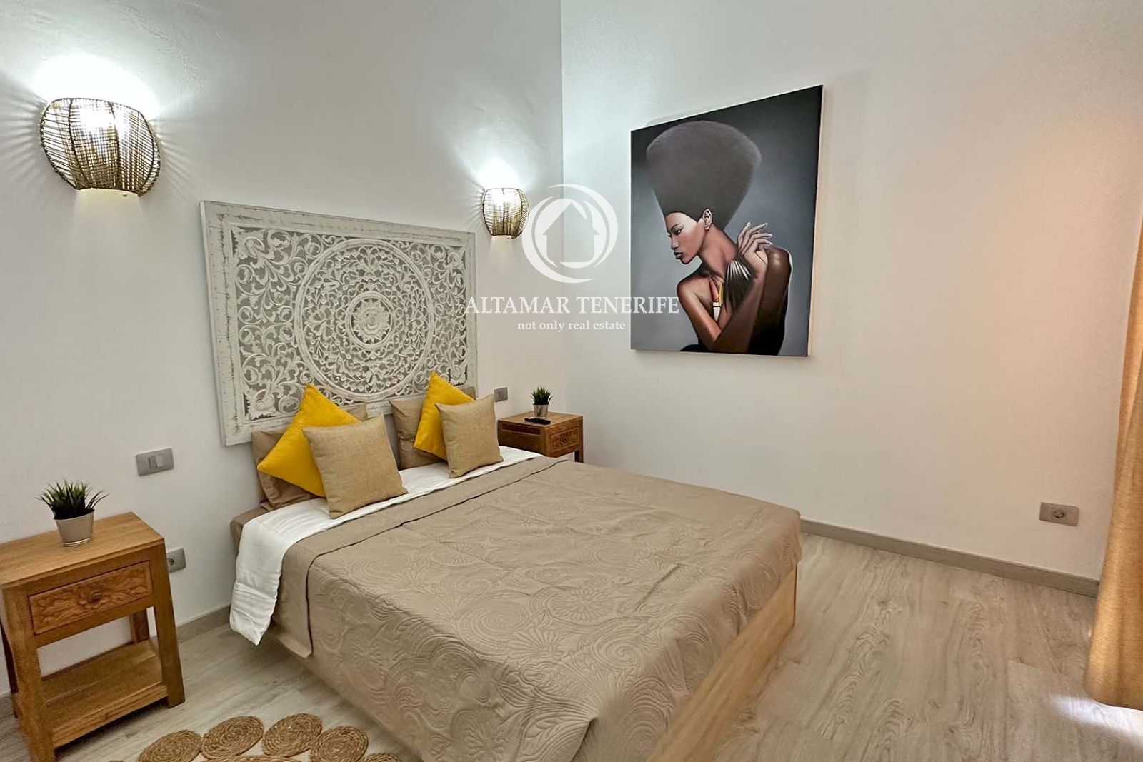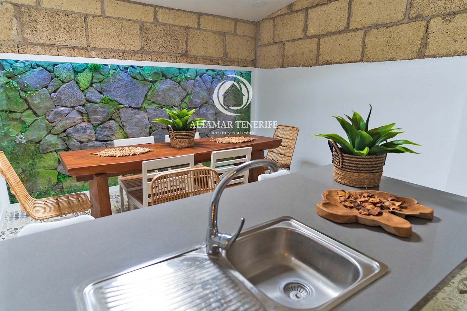 Diese elegante, 2000 erbaute und kürzlich renovierte Doppelhaushälfte liegt in der exklusiven Wohnanlage Valle de Fañabé. Auf einem 320 m² großen Grundstück verteilt sich das Haus über zwei Etagen mit hellem Wohnbereich und direktem Zugang zum Garten mit privatem Pool, separater Küche mit Essbereich, Gäste-WC und einem großzügigen Schlafzimmer mit Bad en suite im Erdgeschoss. Im Obergeschoss befinden sich zwei weitere Schlafzimmer, ein Badezimmer und ein spektakulärer Meerblick.