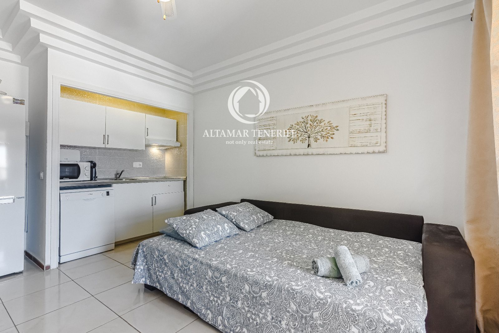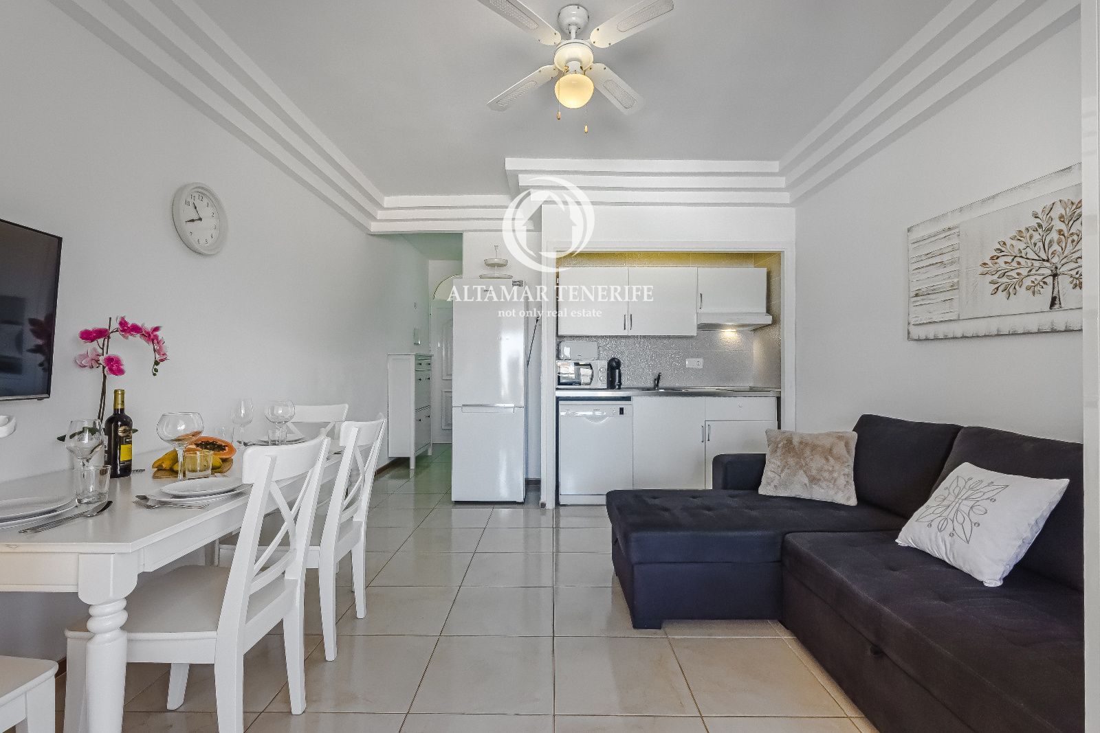 This cozy one-bedroom apartment of 51 m² is located in the Orlando Complex, on the 3rd floor of Block 5, right in the heart of the tourist area of Las Américas, just a few minutes’ walk from the beach. Its excellent location allows you to enjoy the sea, restaurants, and leisure activities without the need for a car.