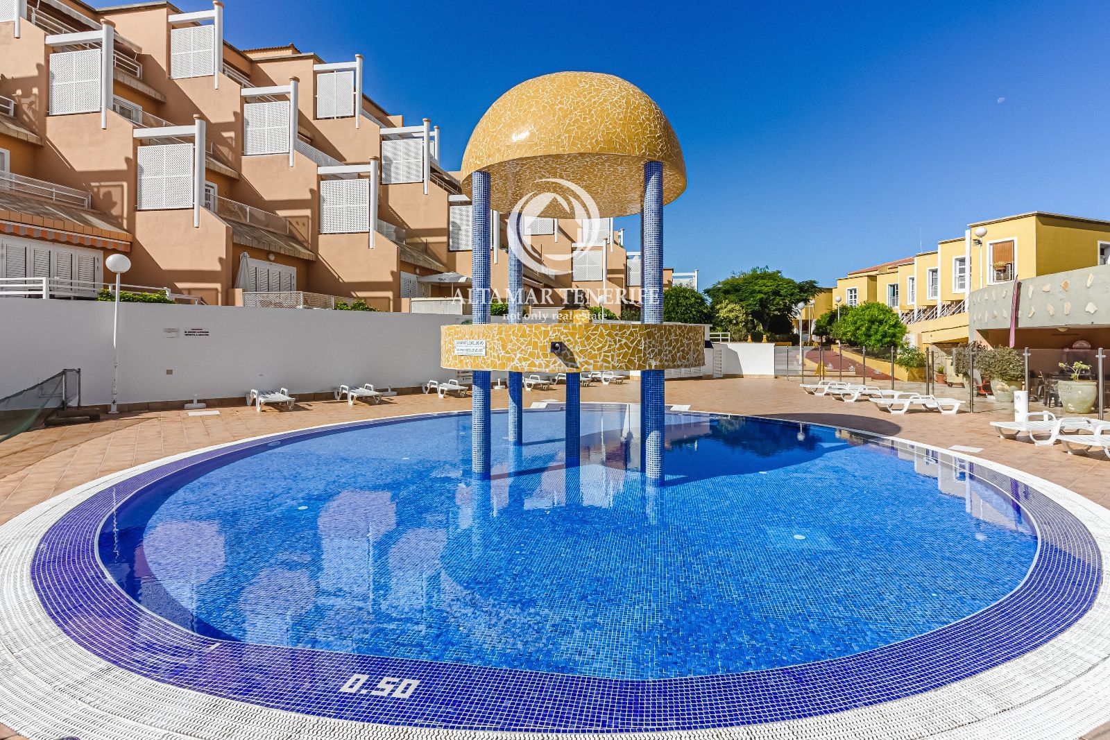 The complex features an elevator and three swimming pools—two for adults and one for children—ideal for relaxing and enjoying the privileged climate all year round. Torviscas Beach is only 500 meters away, and next to the complex entrance there is a 24-hour supermarket, providing great convenience during your stay.