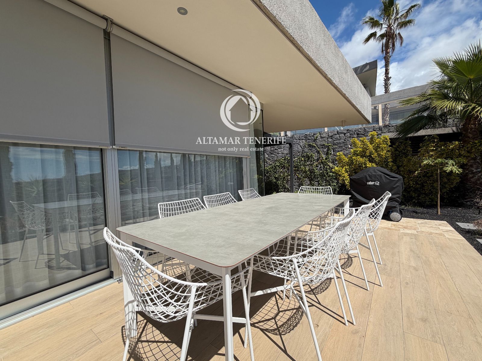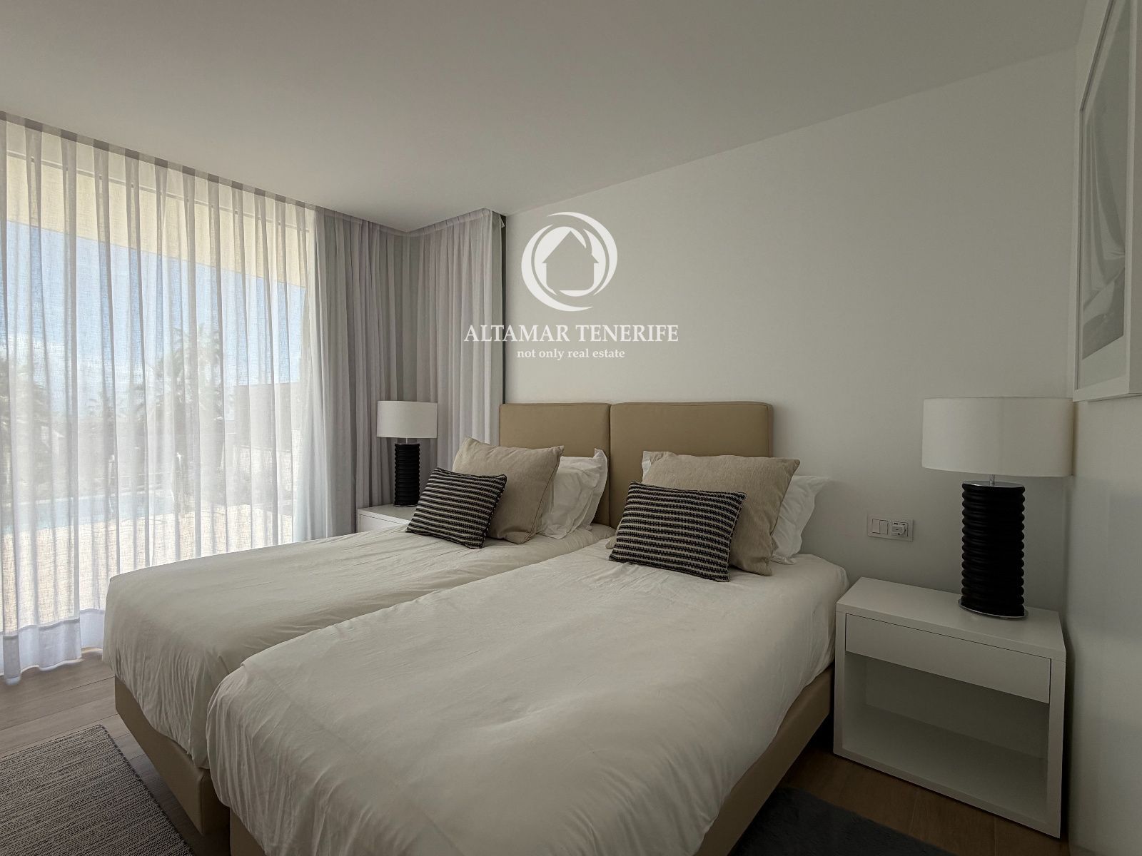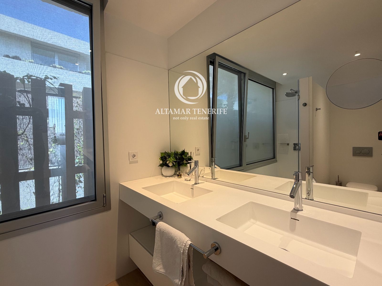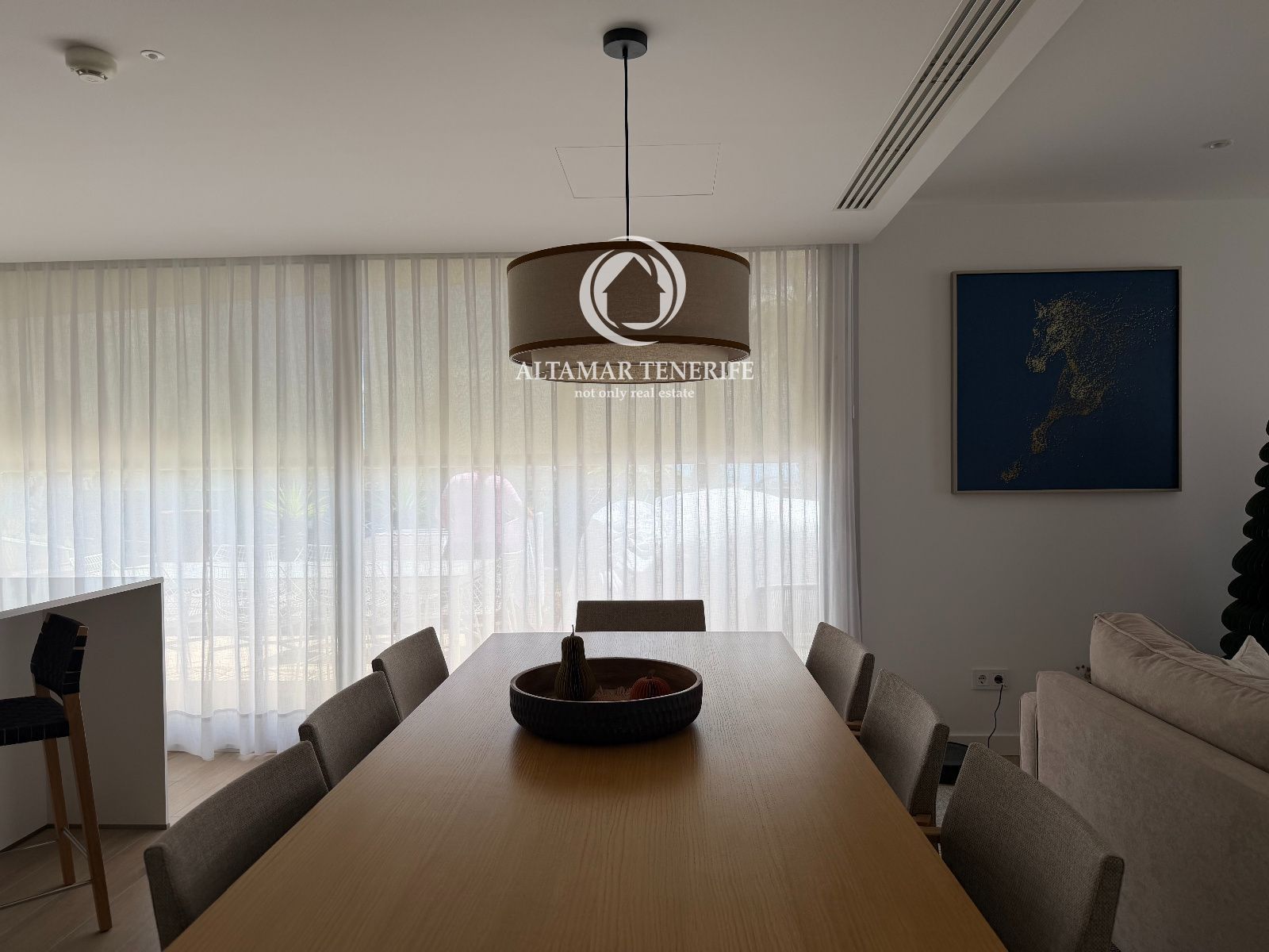 The villa features 3 spacious bedrooms with walk-in closets, 2 modern bathrooms with showers, and a bright living room with large windows opening to the terrace and garden. The private heated infinity pool is perfect for relaxing and enjoying Tenerife’s climate, while the outdoor area includes spaces for al fresco dining and leisure.