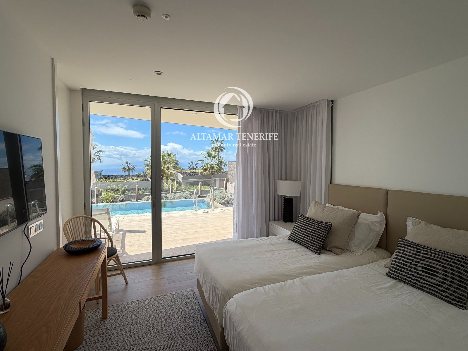 Discover this stunning single-story villa located in the prestigious Abama resort, in the south of Tenerife. With 265 m² built on a 662 m² plot, this property combines modern design, luxury, and comfort in a private setting with views of the Atlantic Ocean, the golf course, and La Gomera.