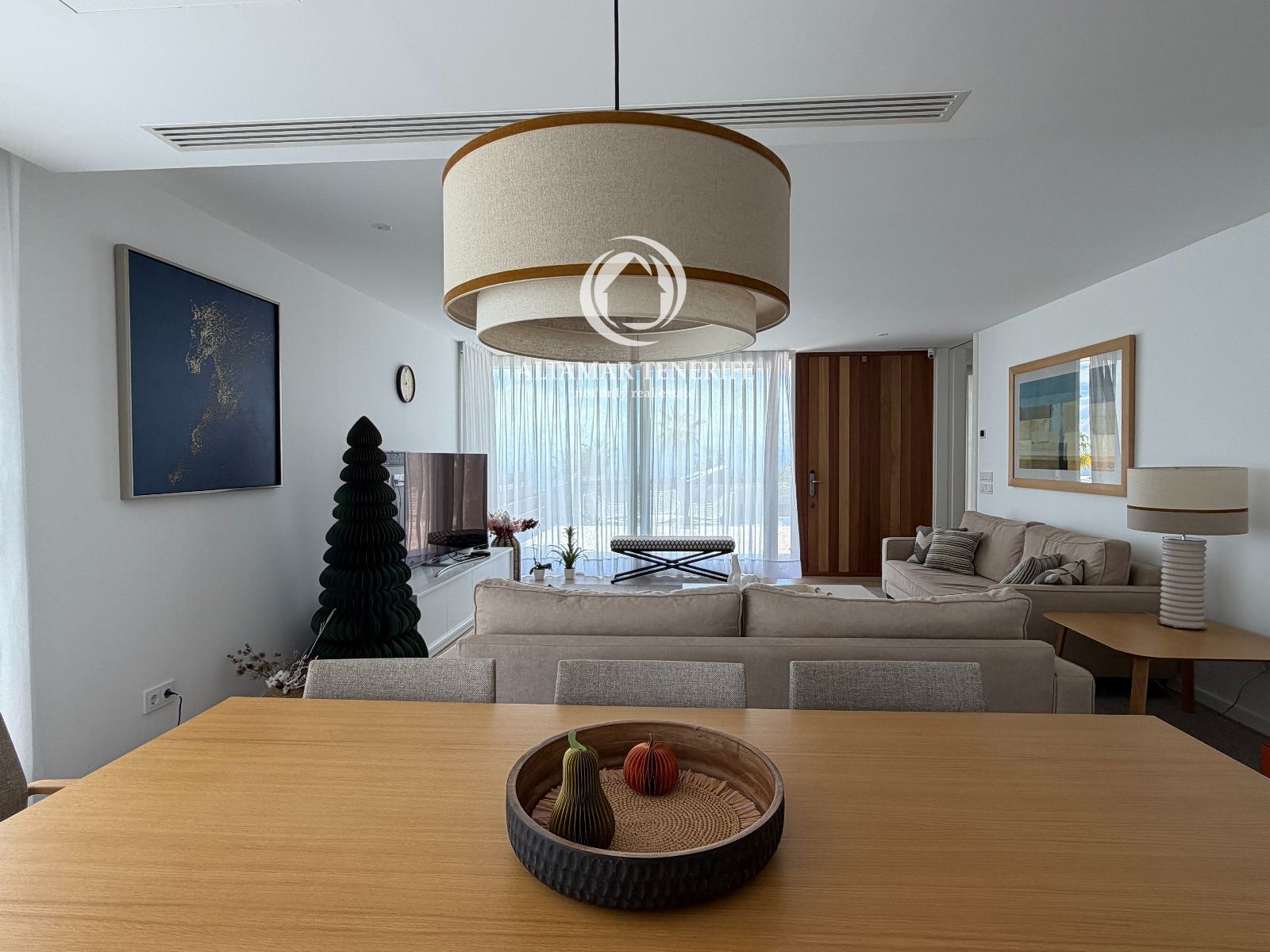 The property includes a garage for one car and a buggy and is sold fully furnished with luxury furniture, including outdoor pieces. Windows feature automatic roller blinds to control sunlight without sacrificing brightness.