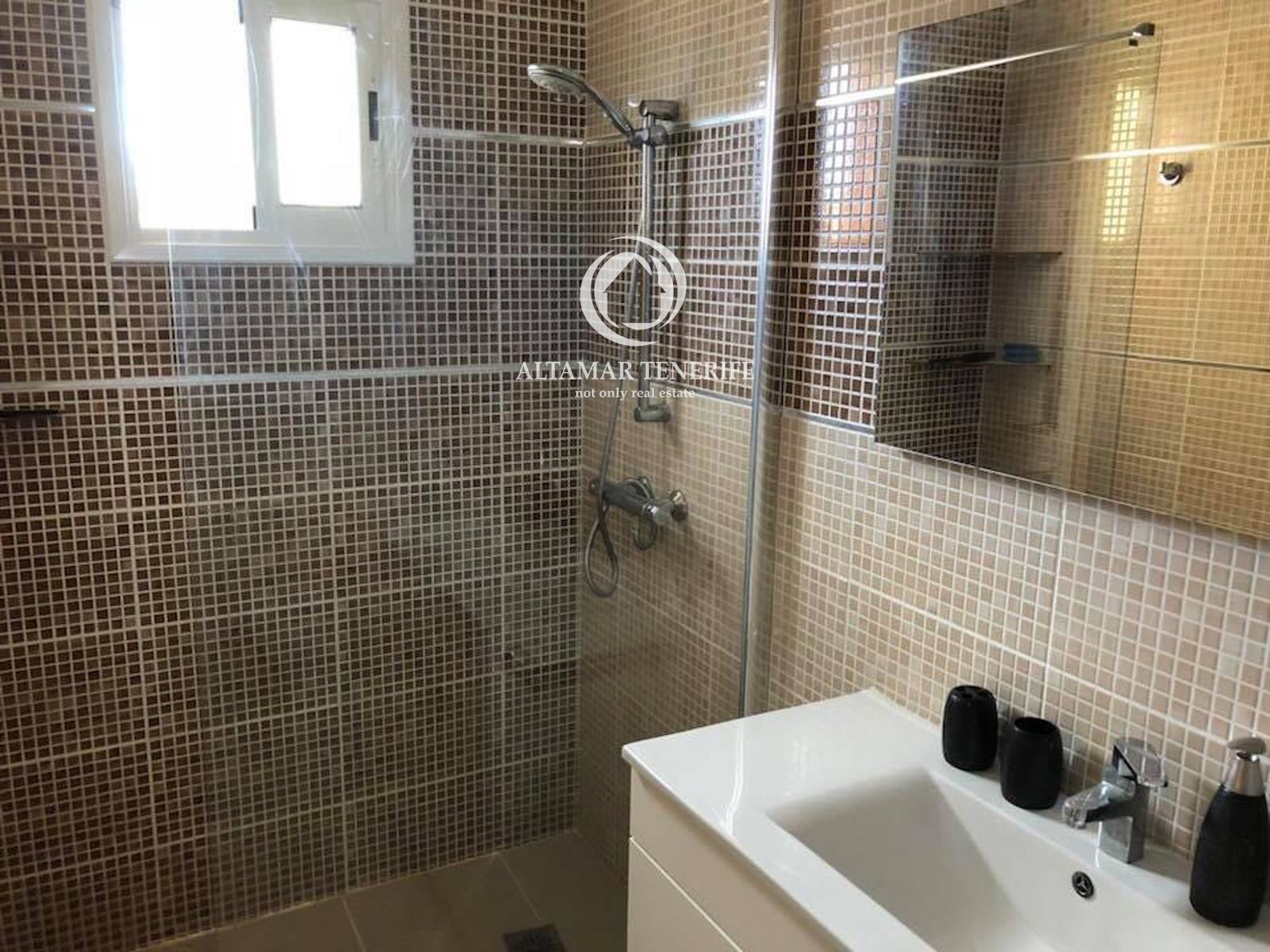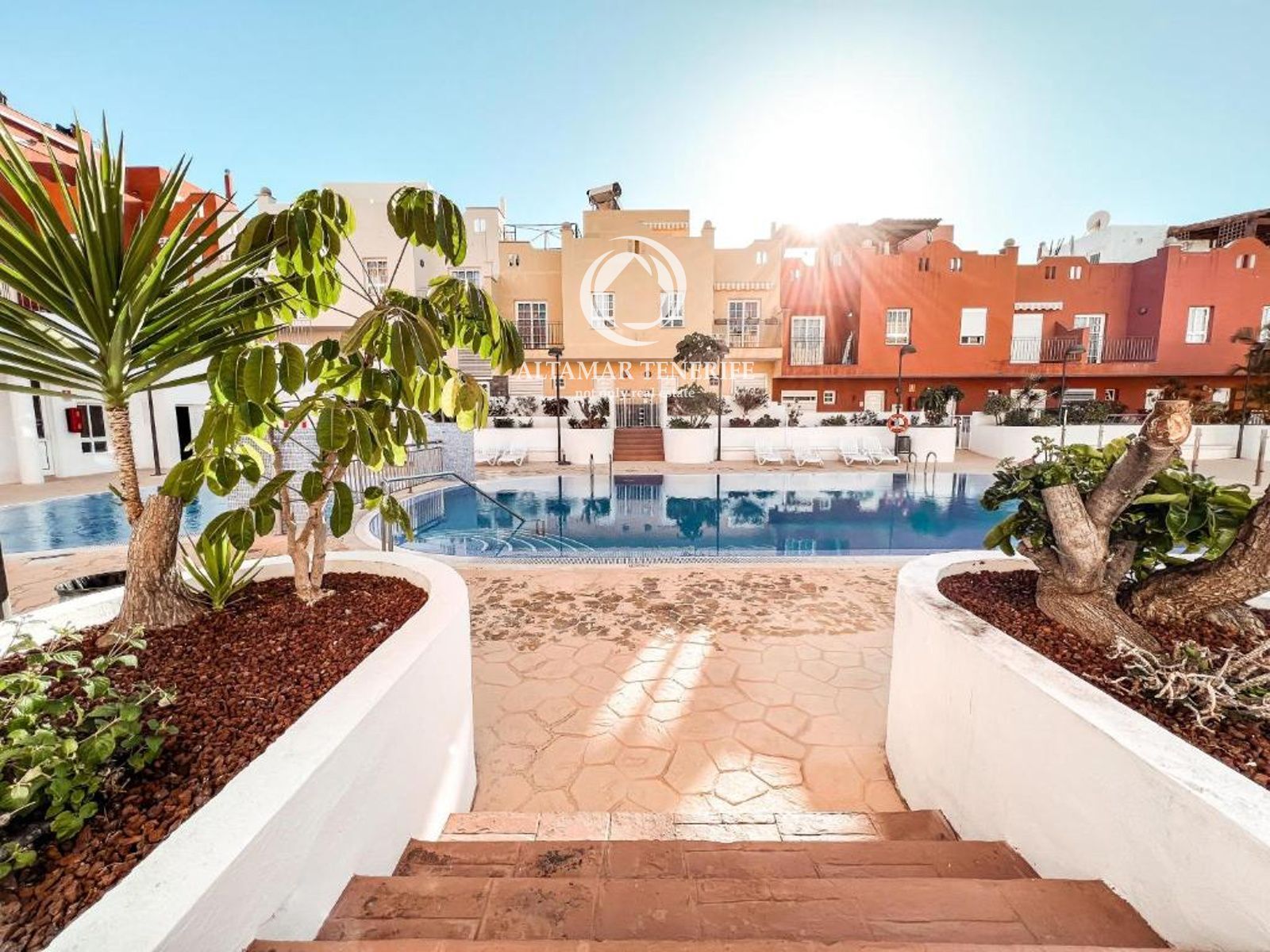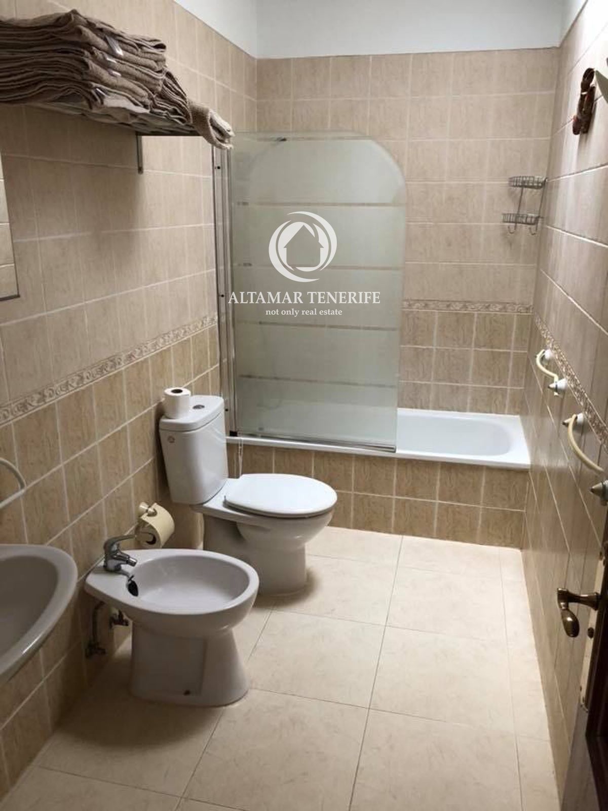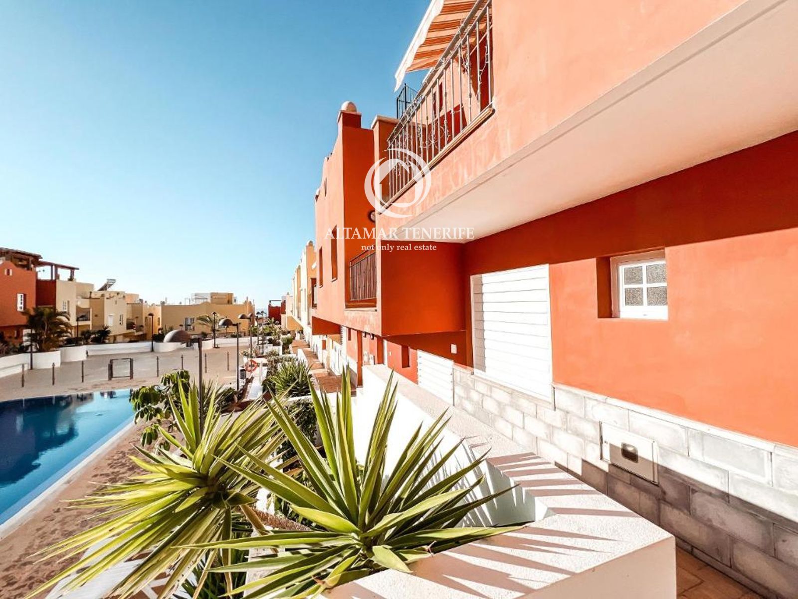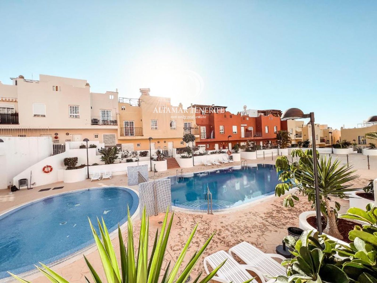 On the top floor, the property offers a large, fully renovated rooftop terrace equipped with a shower and relaxation area. This private space provides excellent views of the sea and the complex surroundings.