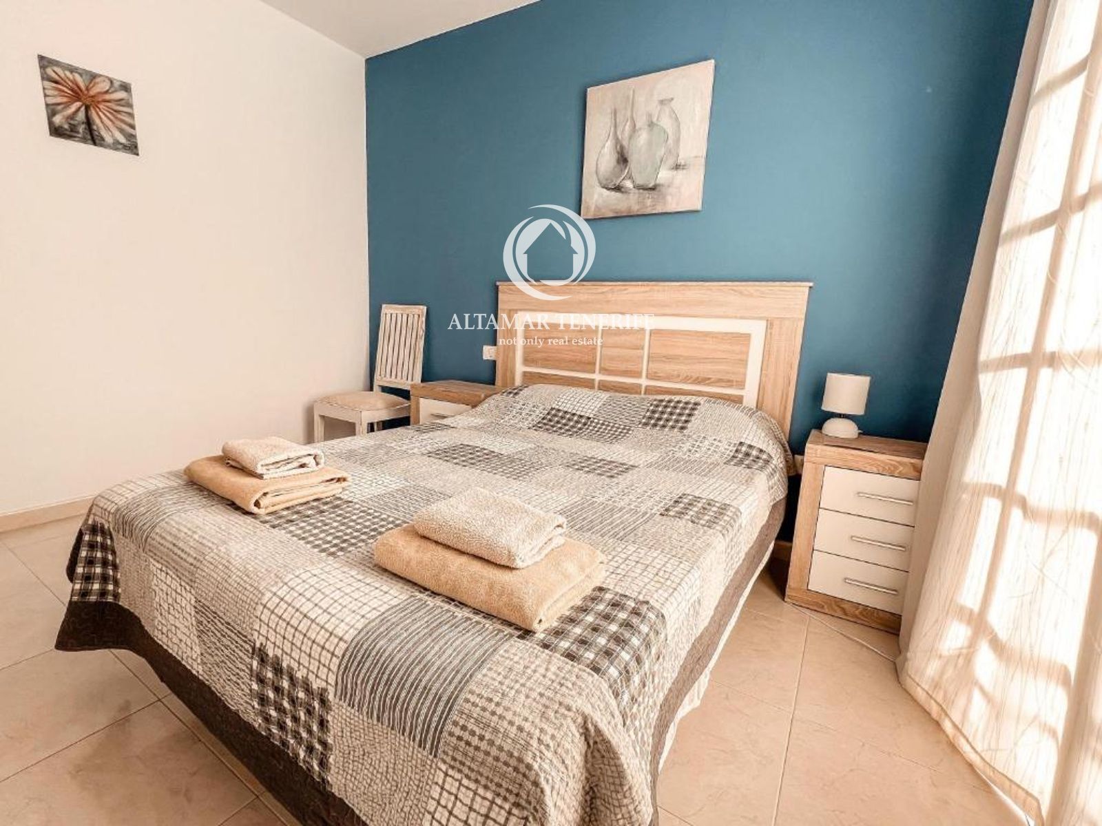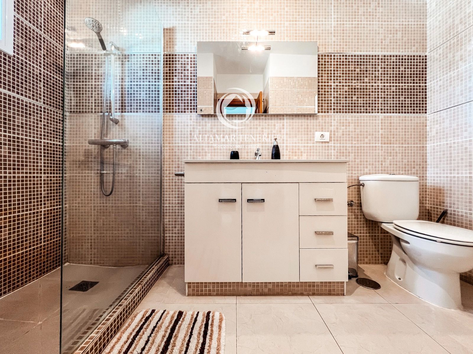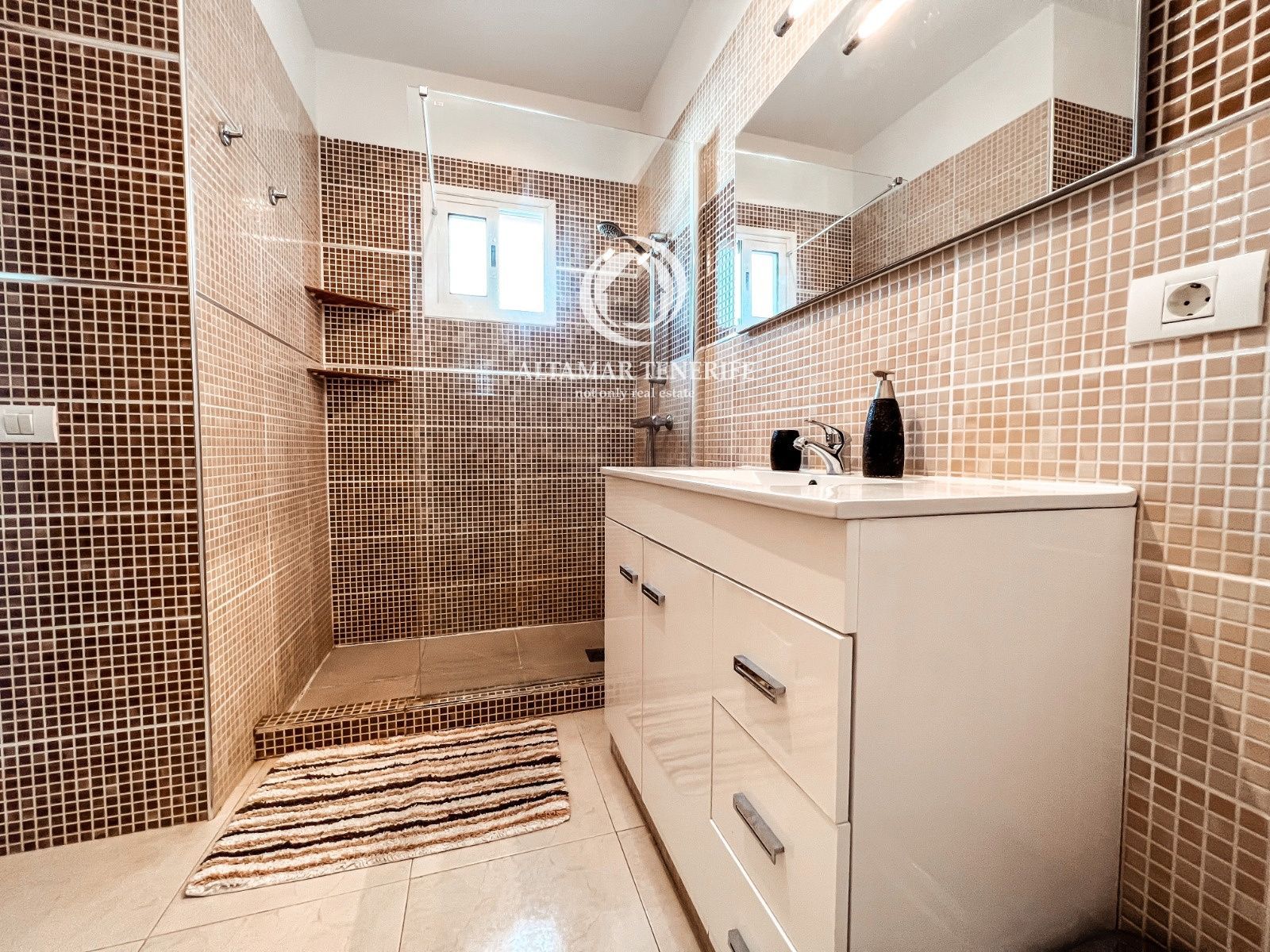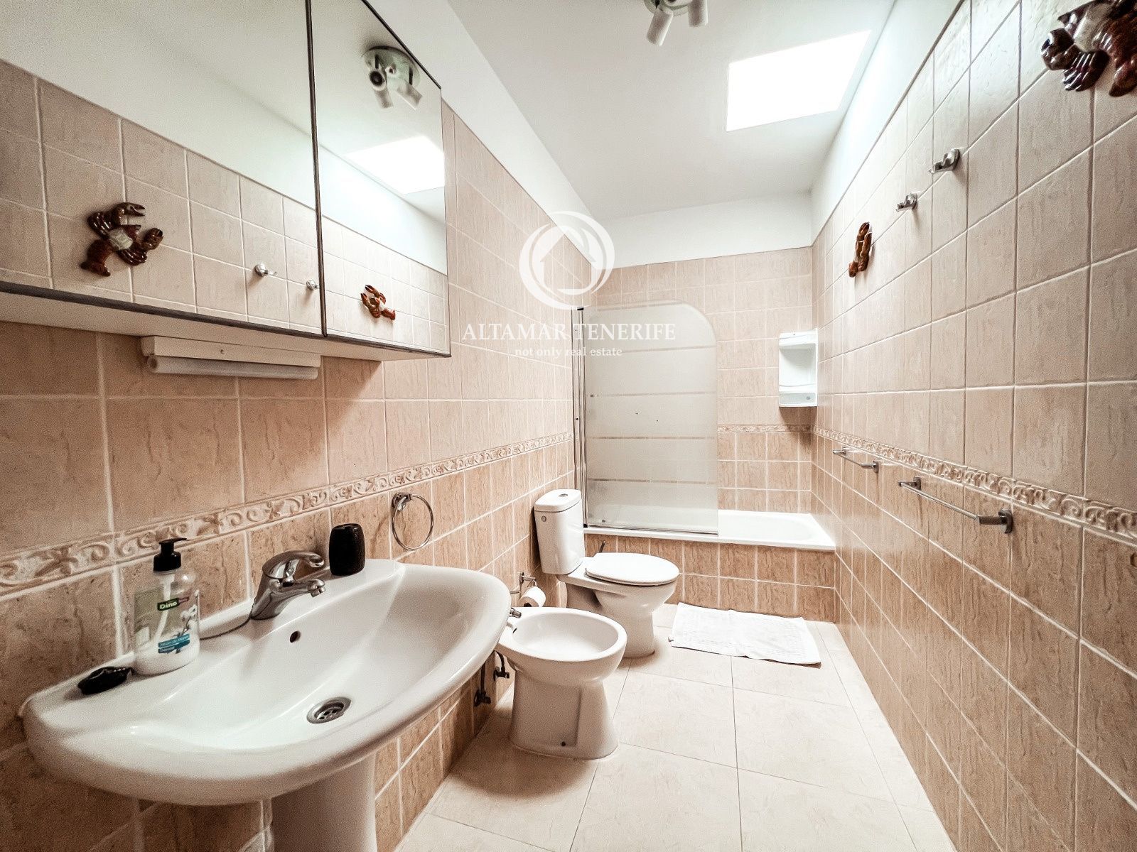 On the top floor, the property offers a large, fully renovated rooftop terrace equipped with a shower and relaxation area. This private space provides excellent views of the sea and the complex surroundings.