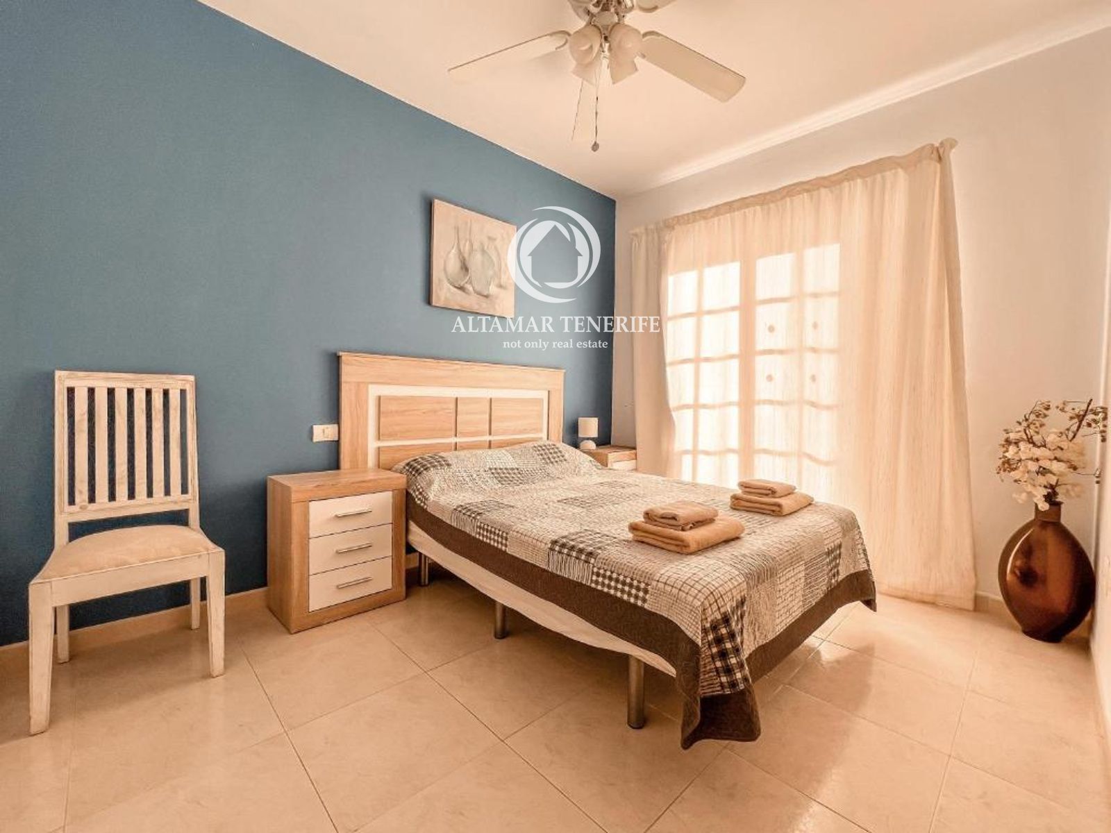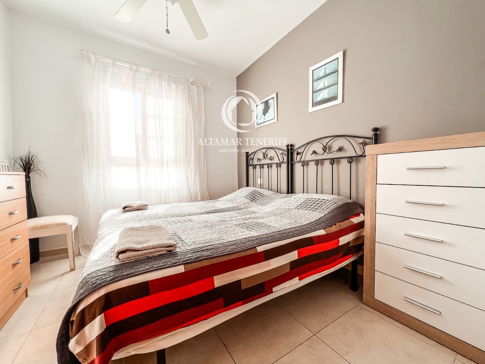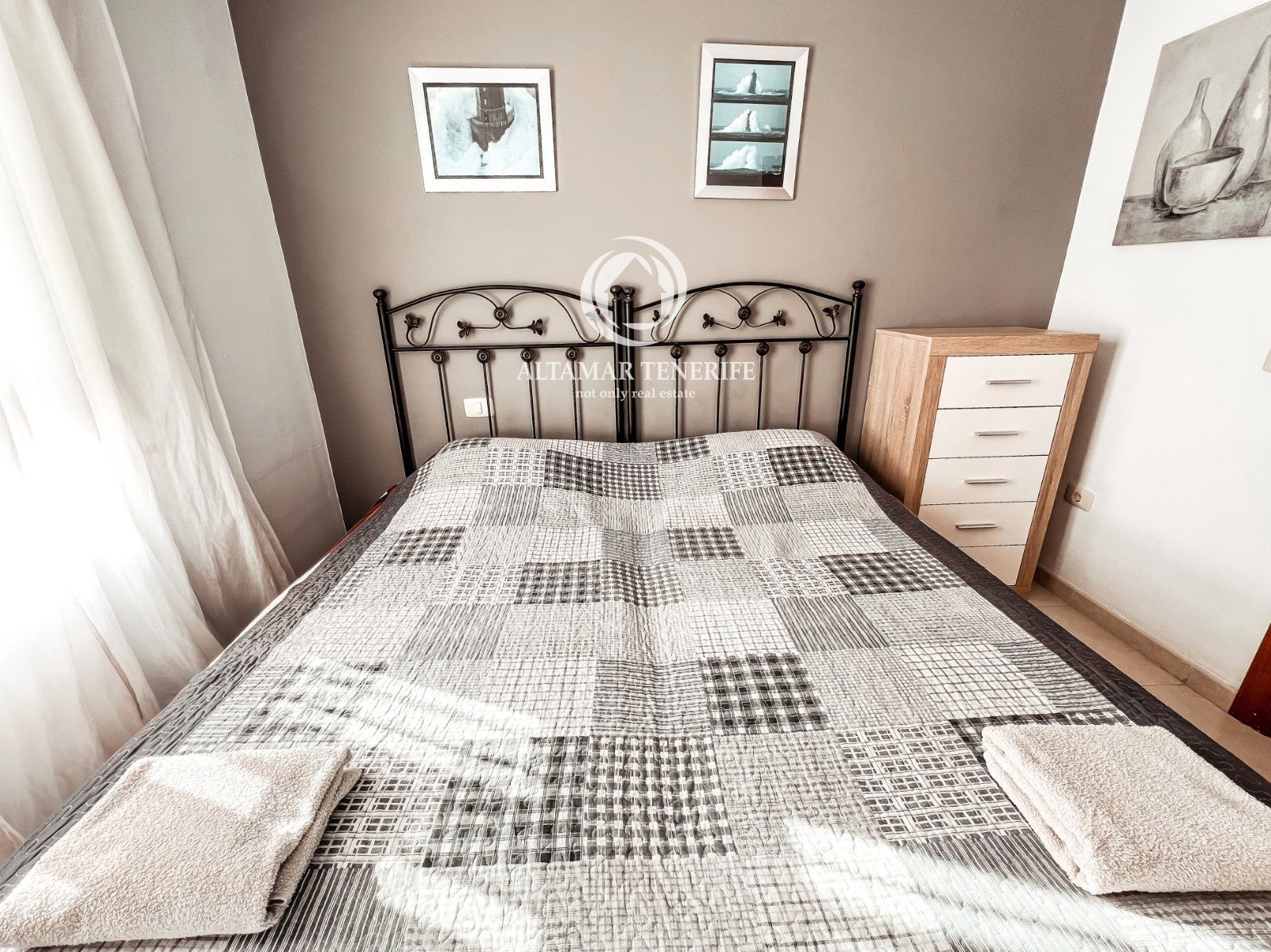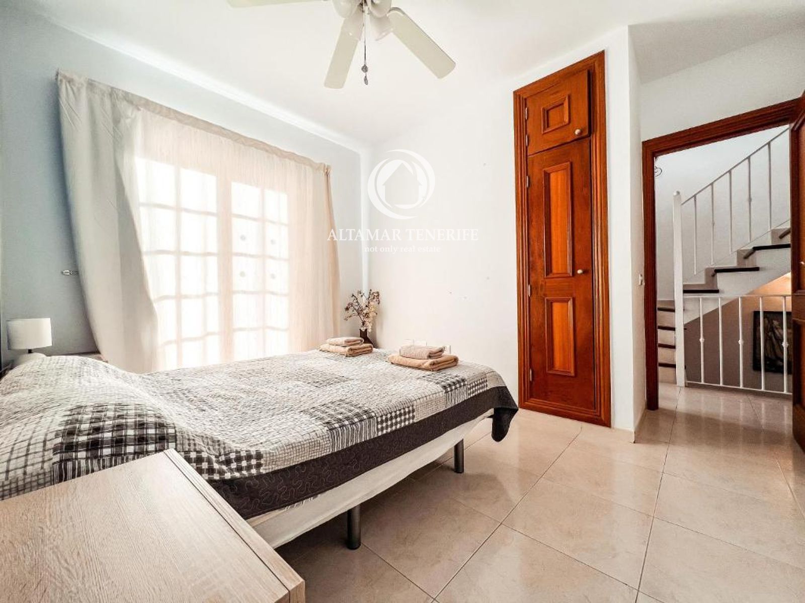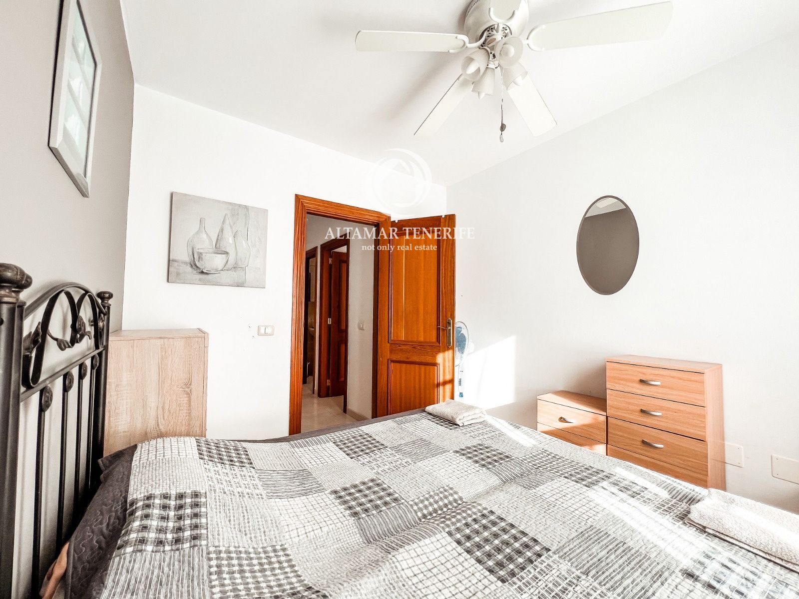 On the top floor, the property offers a large, fully renovated rooftop terrace equipped with a shower and relaxation area. This private space provides excellent views of the sea and the complex surroundings.