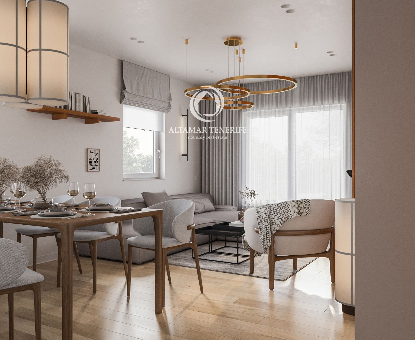 El diseño interior maximiza la luz natural, con ventanales de suelo a techo que conectan la suite principal y el salón con la terraza. El segundo dormitorio tiene acceso a un porche delantero, ideal para familias o parejas que viajan juntas.