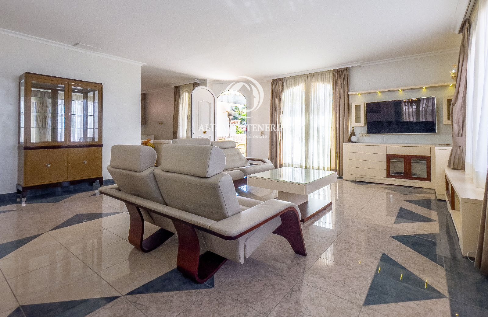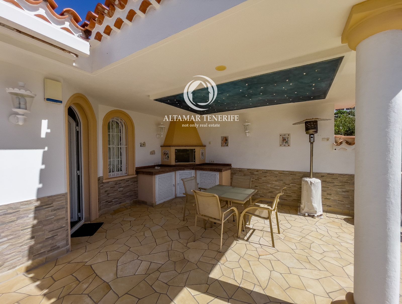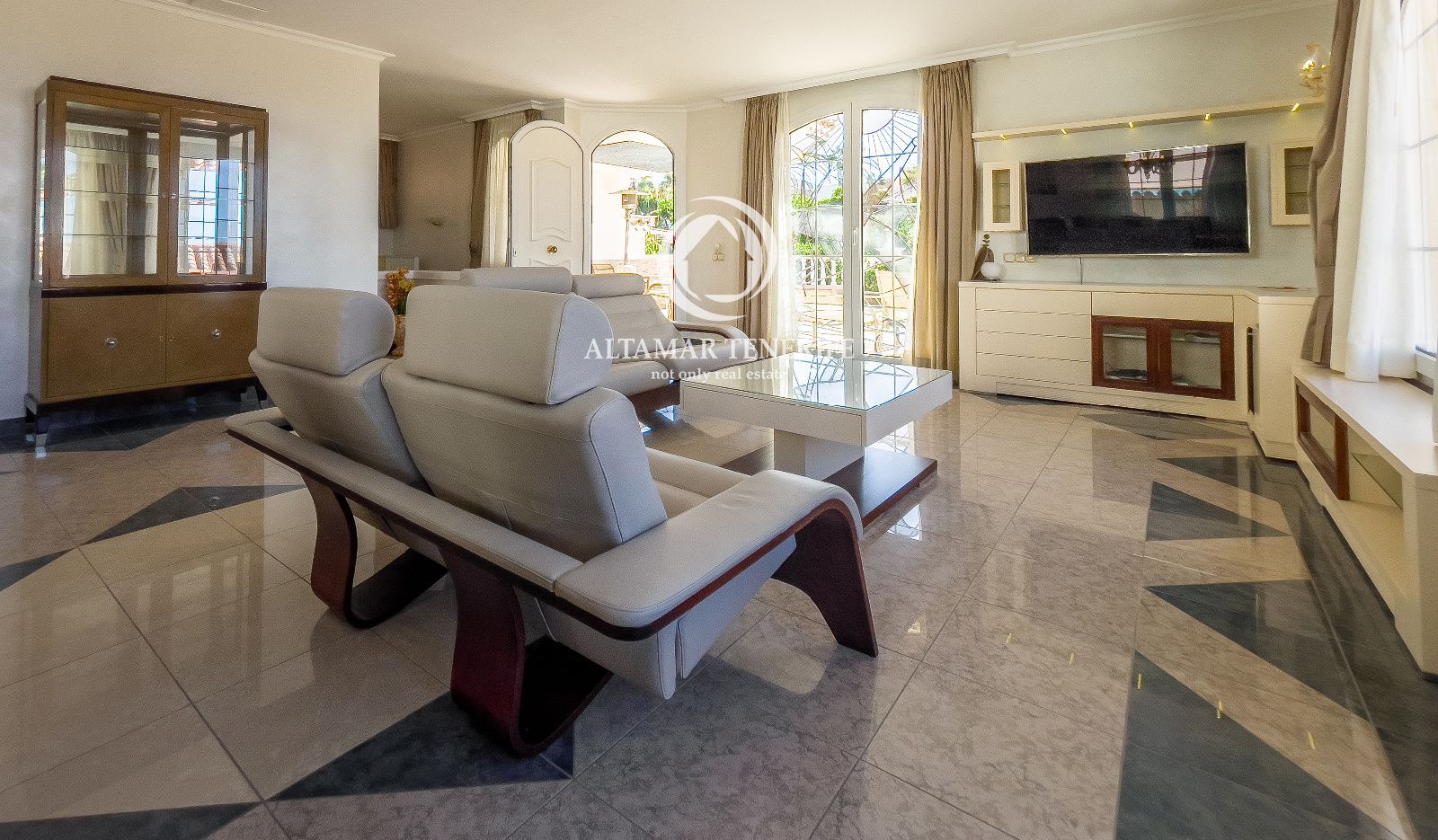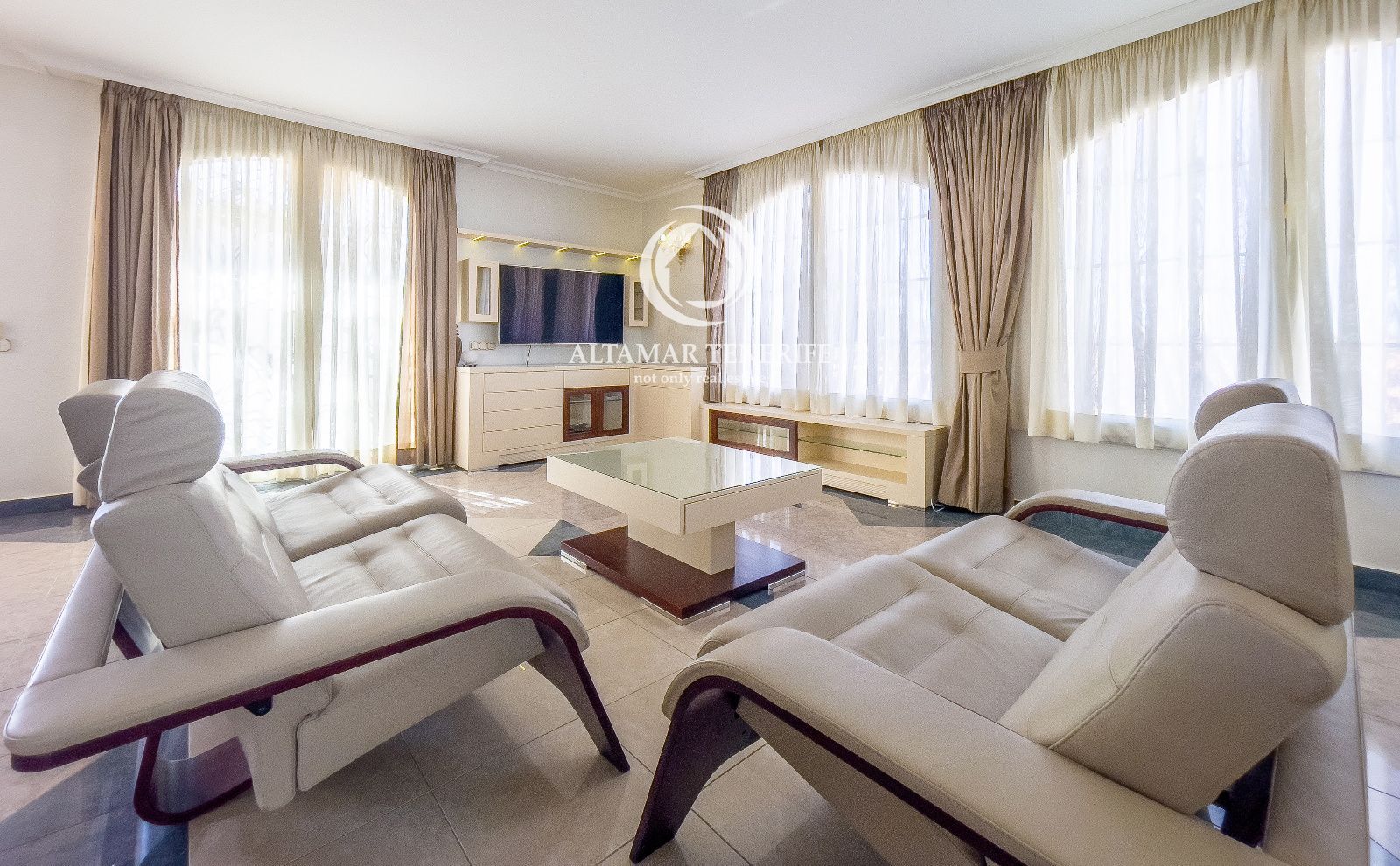 La propiedad combina lujo y confort en cada detalle. En la planta principal se encuentra un amplio salón amueblado con piezas Roche Bobois, una cocina independiente totalmente equipada, un aseo y una gran terraza con barbacoa, jardín y vistas parciales al océano y a la montaña.