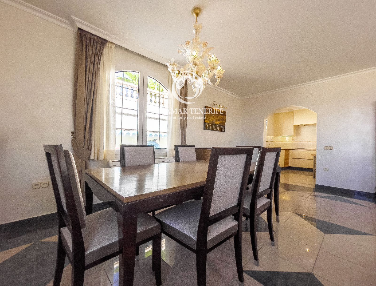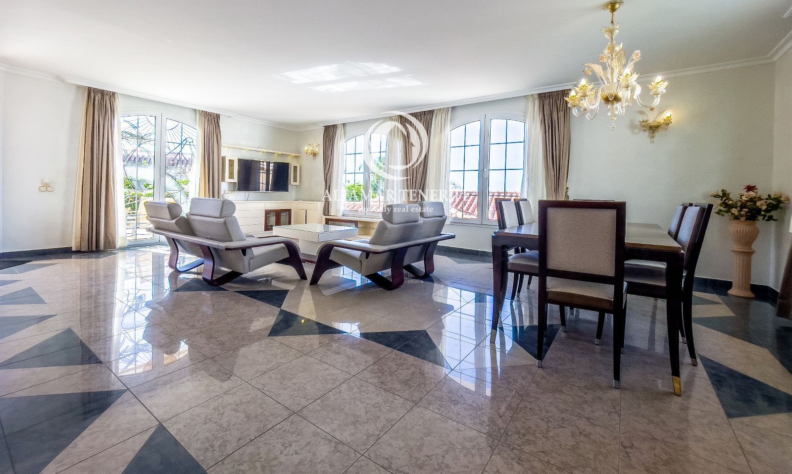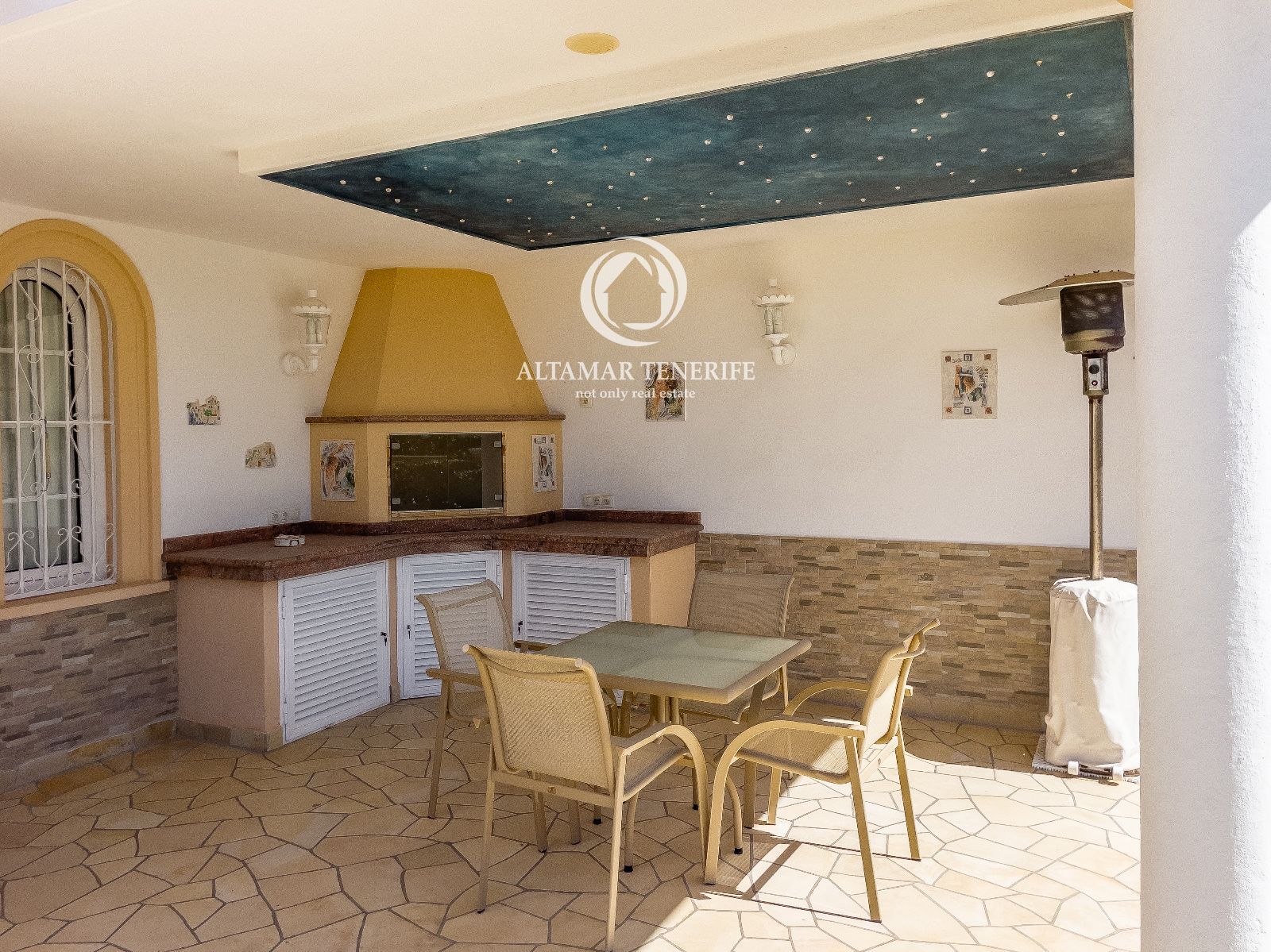 La propiedad combina lujo y confort en cada detalle. En la planta principal se encuentra un amplio salón amueblado con piezas Roche Bobois, una cocina independiente totalmente equipada, un aseo y una gran terraza con barbacoa, jardín y vistas parciales al océano y a la montaña.