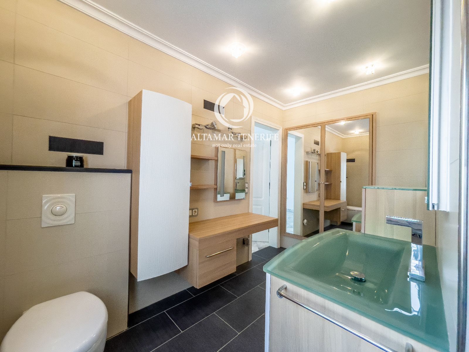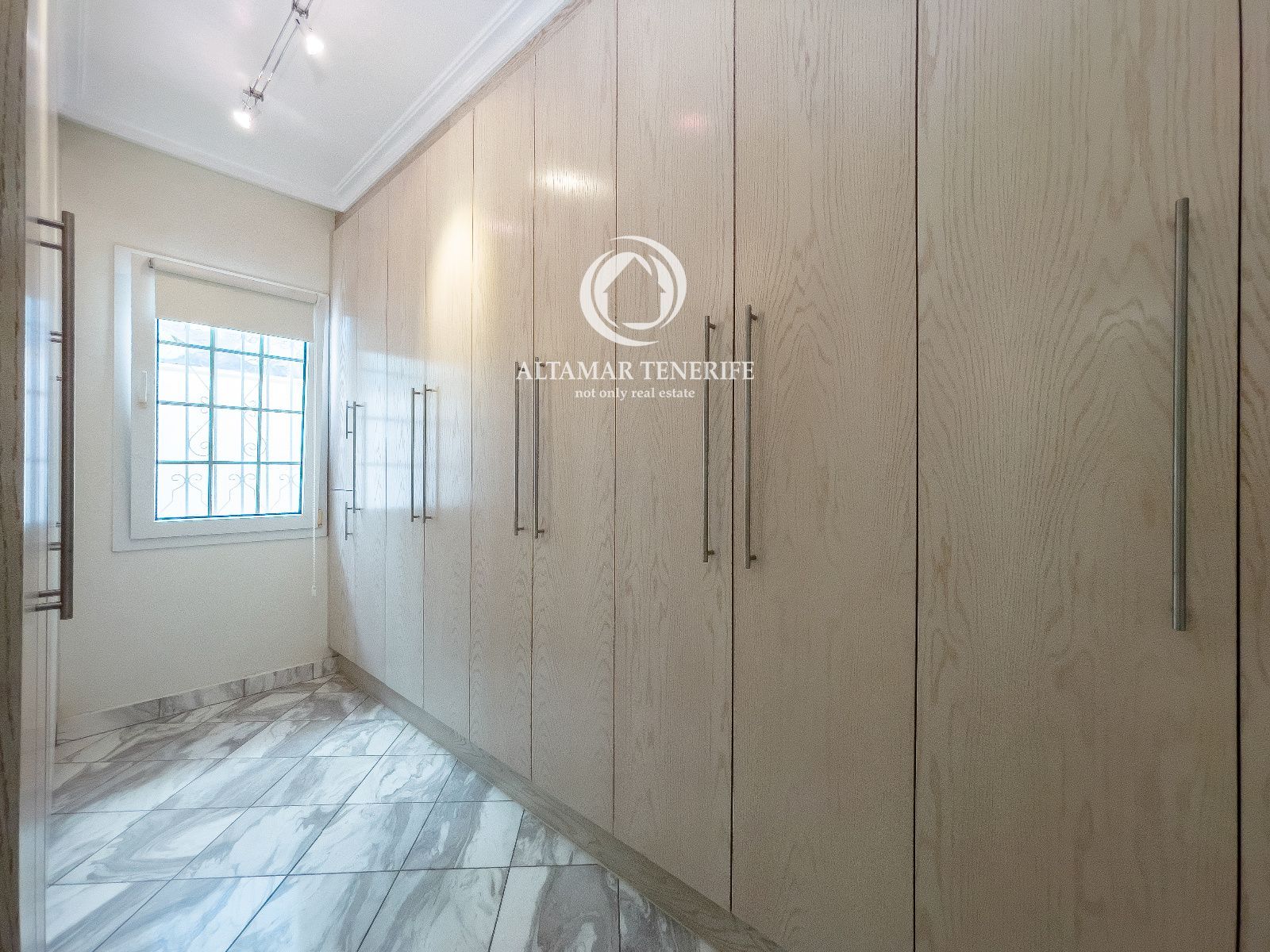 La planta inferior alberga la zona de descanso, con tres dormitorios, dos de ellos con acceso a la terraza inferior, y una suite principal con vestidor, baño privado, ducha y sauna hammam. Además, dispone de garaje con armarios empotrados, lavadero y bodega climatizada.