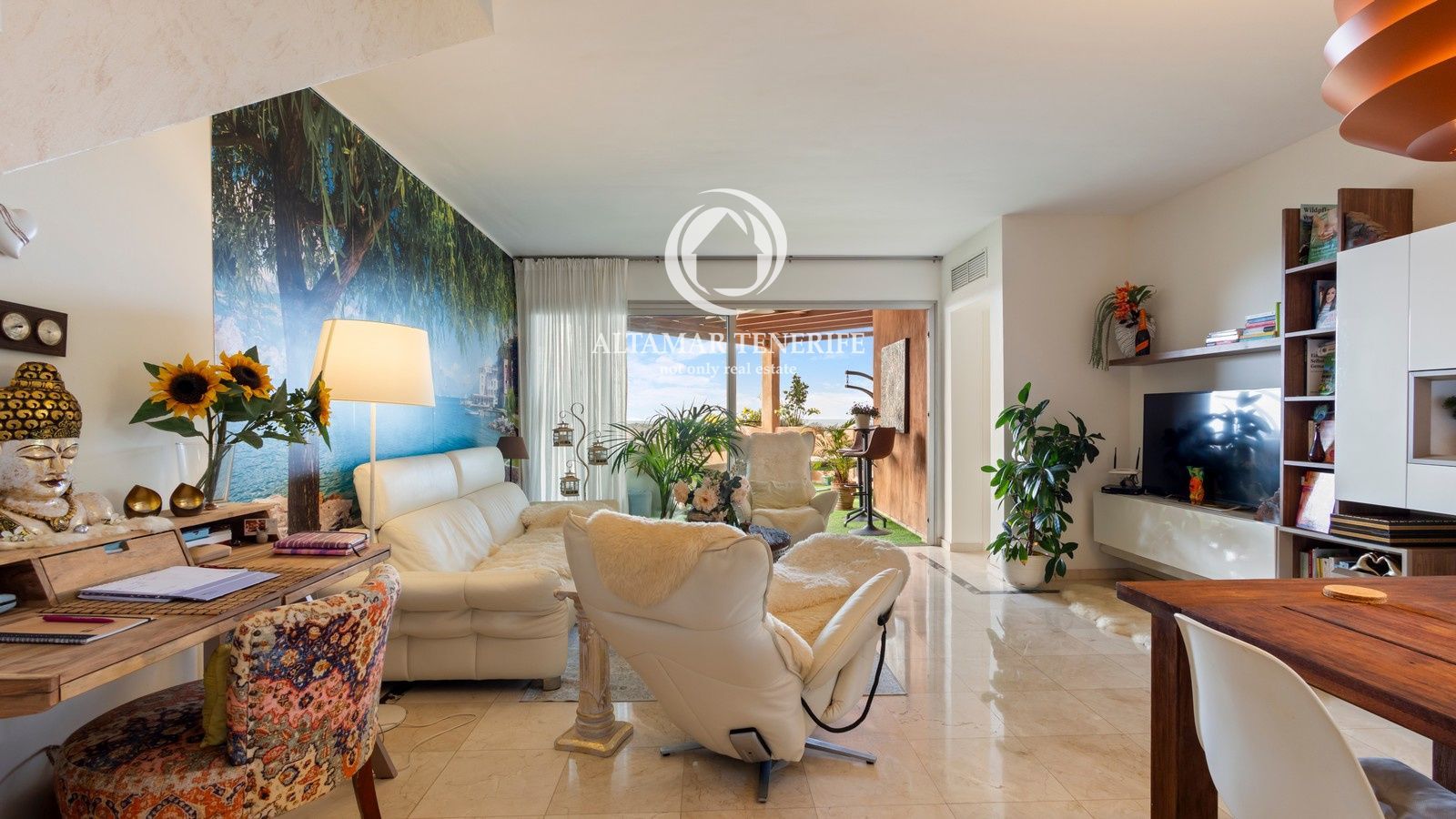 Exclusivo ático en venta en Palm-Mar, ubicado en el prestigioso complejo Bahía de los Menceyes, una zona residencial tranquila y cuidada del sur de Tenerife. Situado en la última planta, ofrece privacidad, abundante luz natural y un entorno ideal tanto para vivir como para invertir.