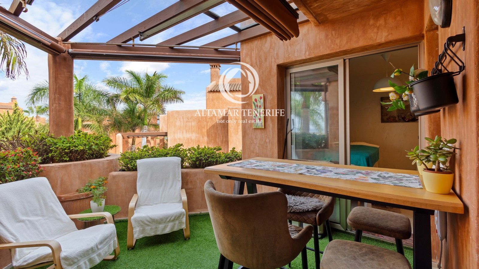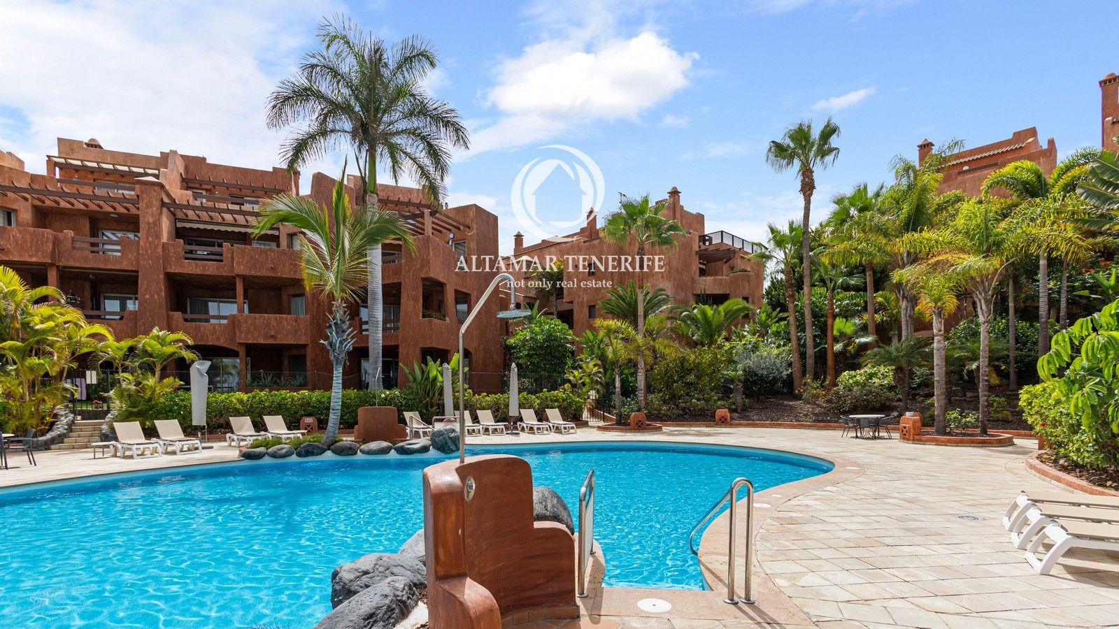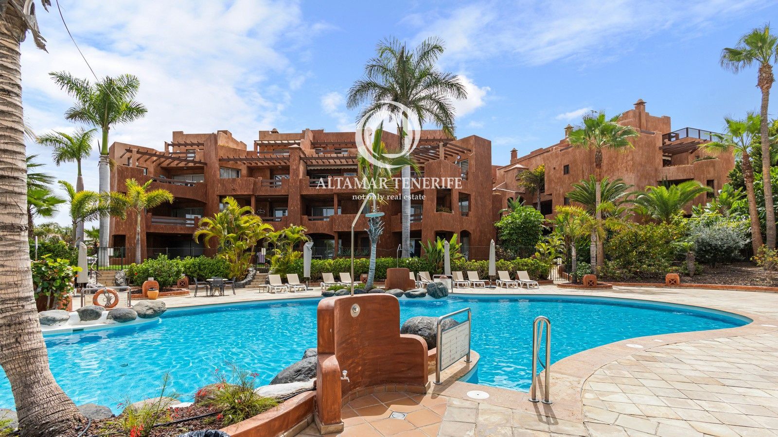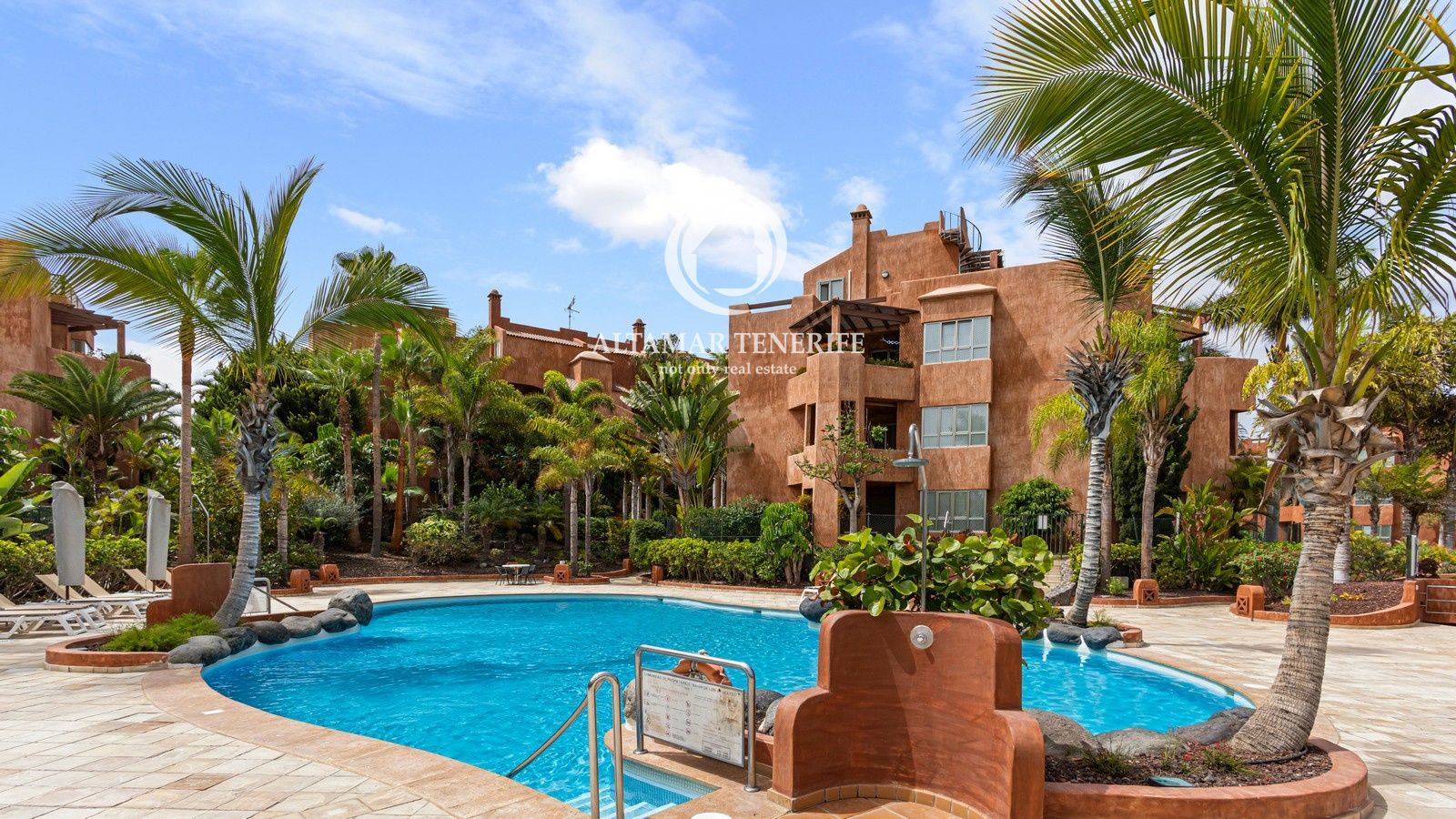 El complejo cuenta con ascensor, piscina comunitaria, jardines y zonas comunes. Incluye dos plazas de garaje subterráneo y trastero. A poca distancia de la playa, paseo marítimo, comercios y restaurantes, y a solo 15 minutos del aeropuerto Tenerife Sur.