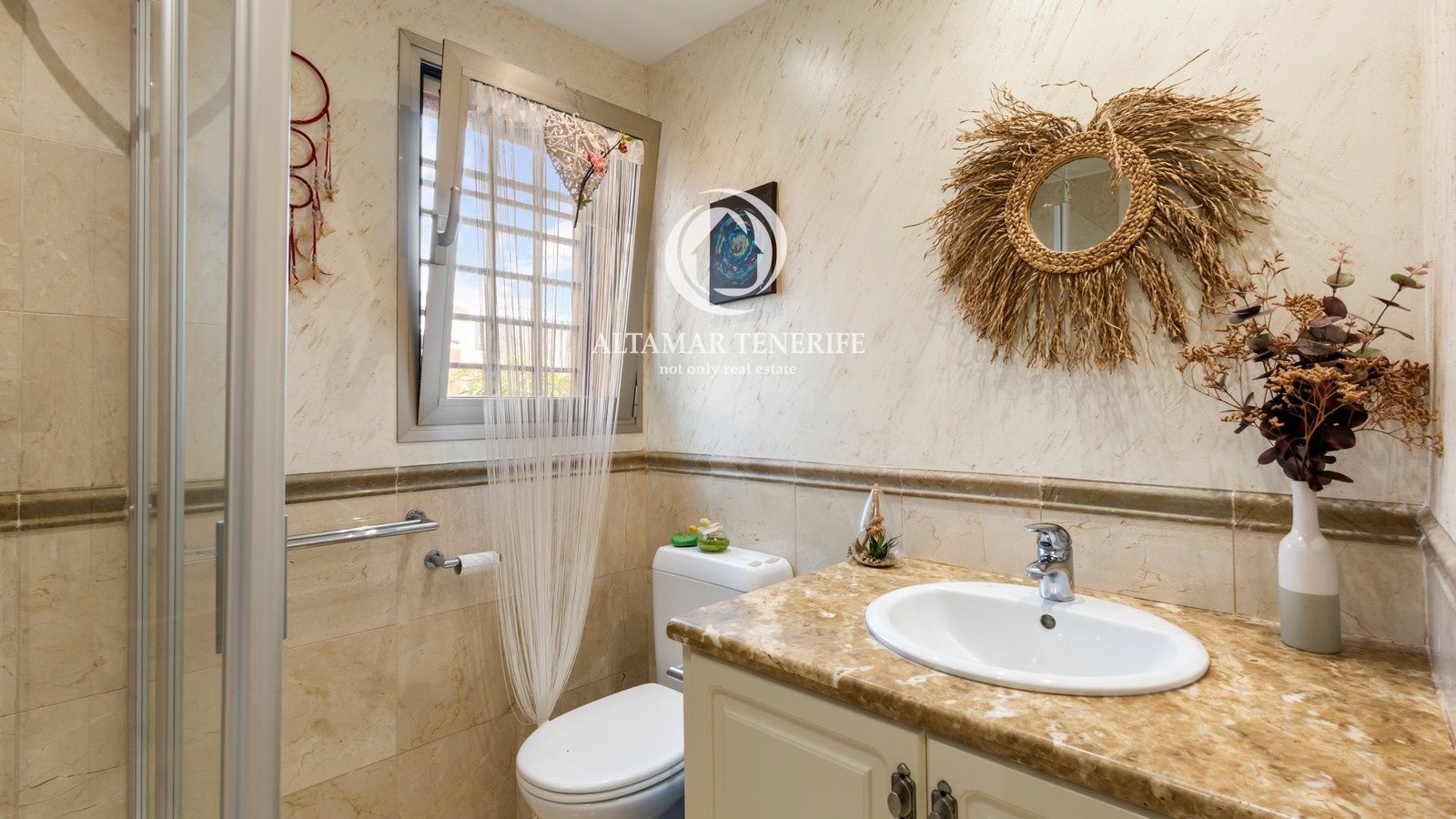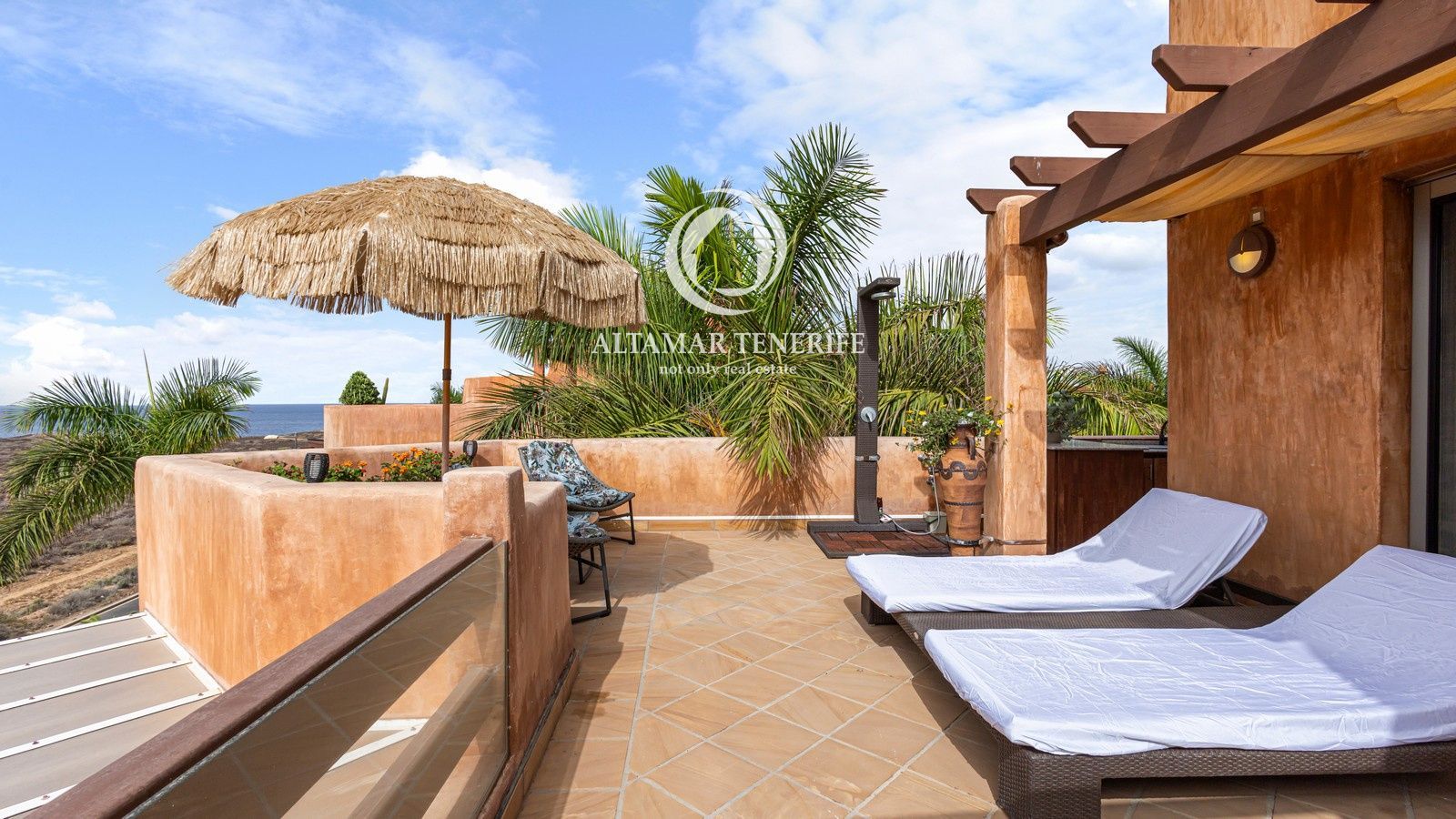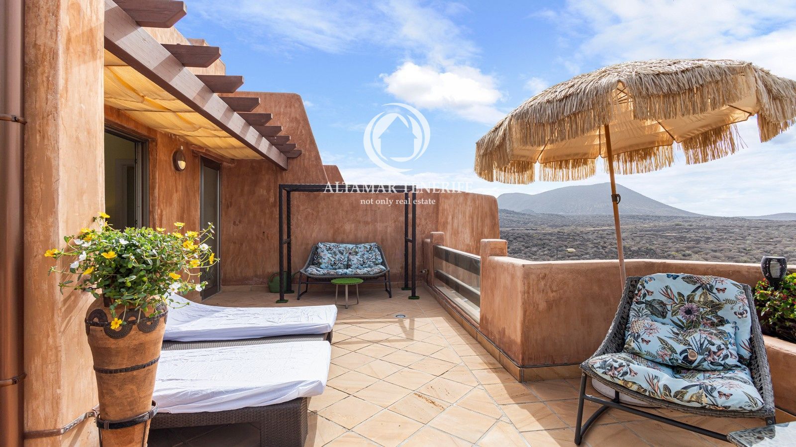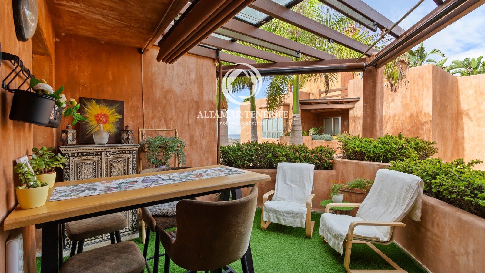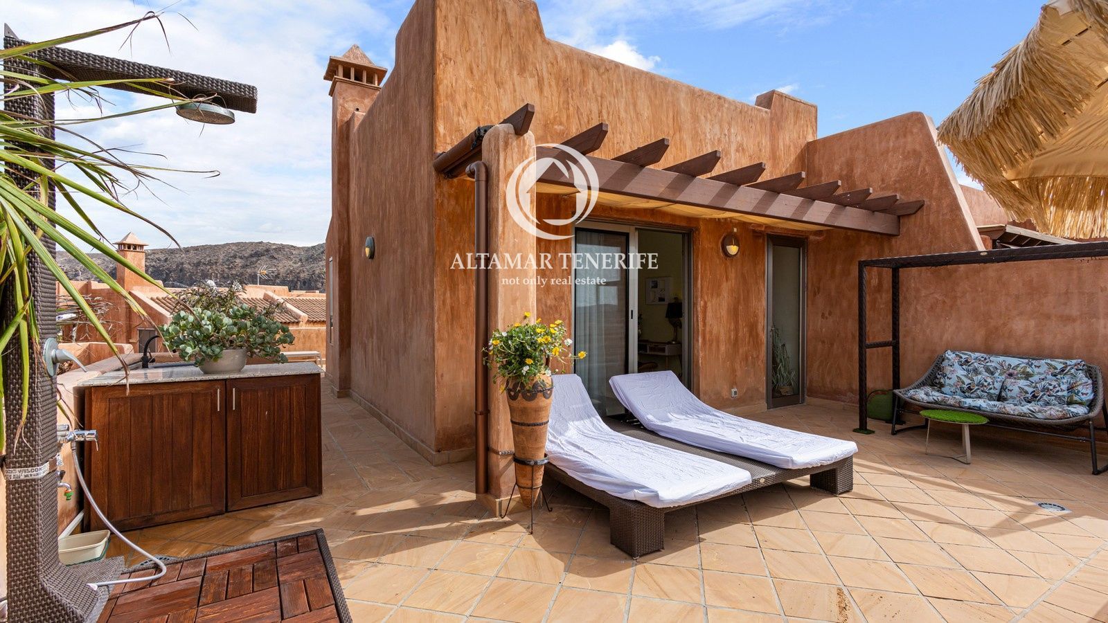 El complejo cuenta con ascensor, piscina comunitaria, jardines y zonas comunes. Incluye dos plazas de garaje subterráneo y trastero. A poca distancia de la playa, paseo marítimo, comercios y restaurantes, y a solo 15 minutos del aeropuerto Tenerife Sur.