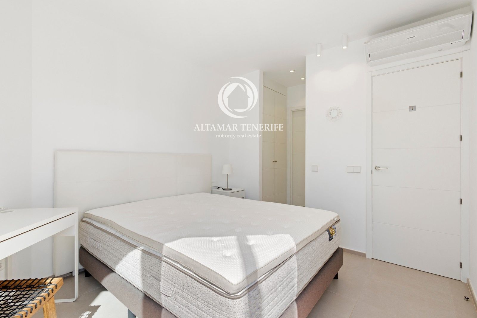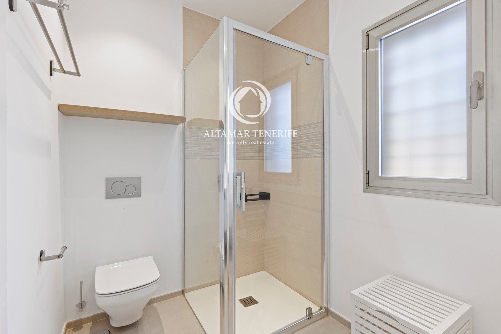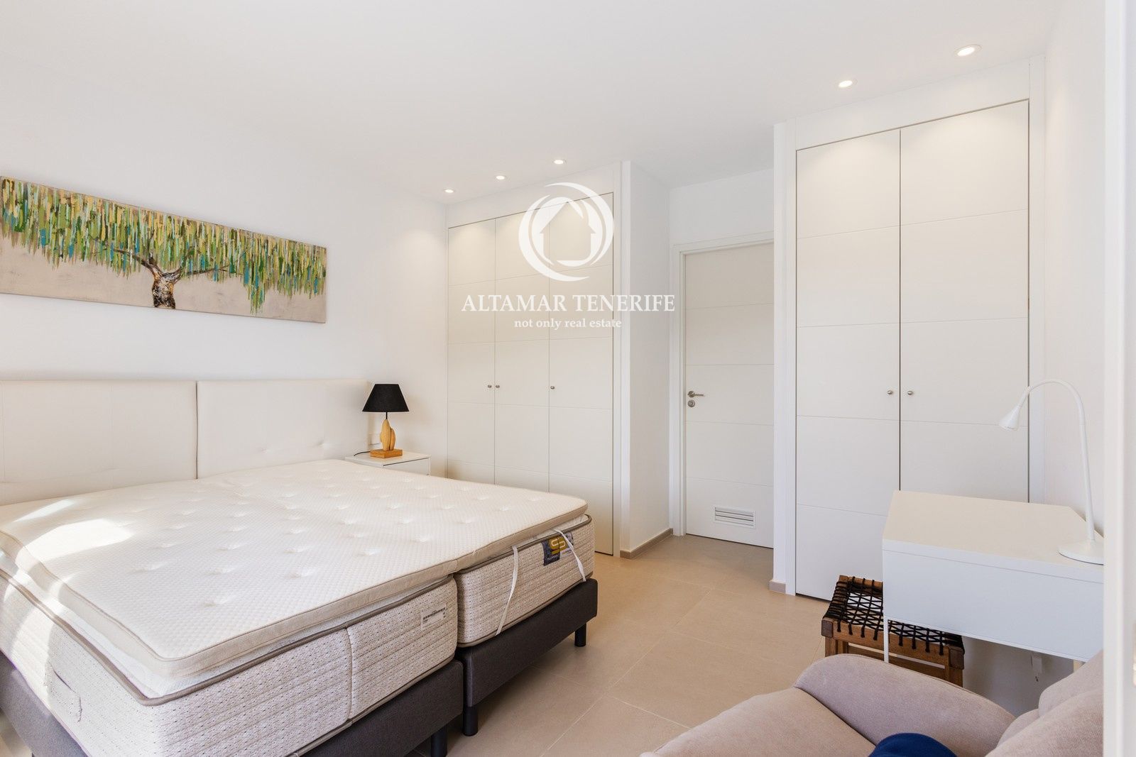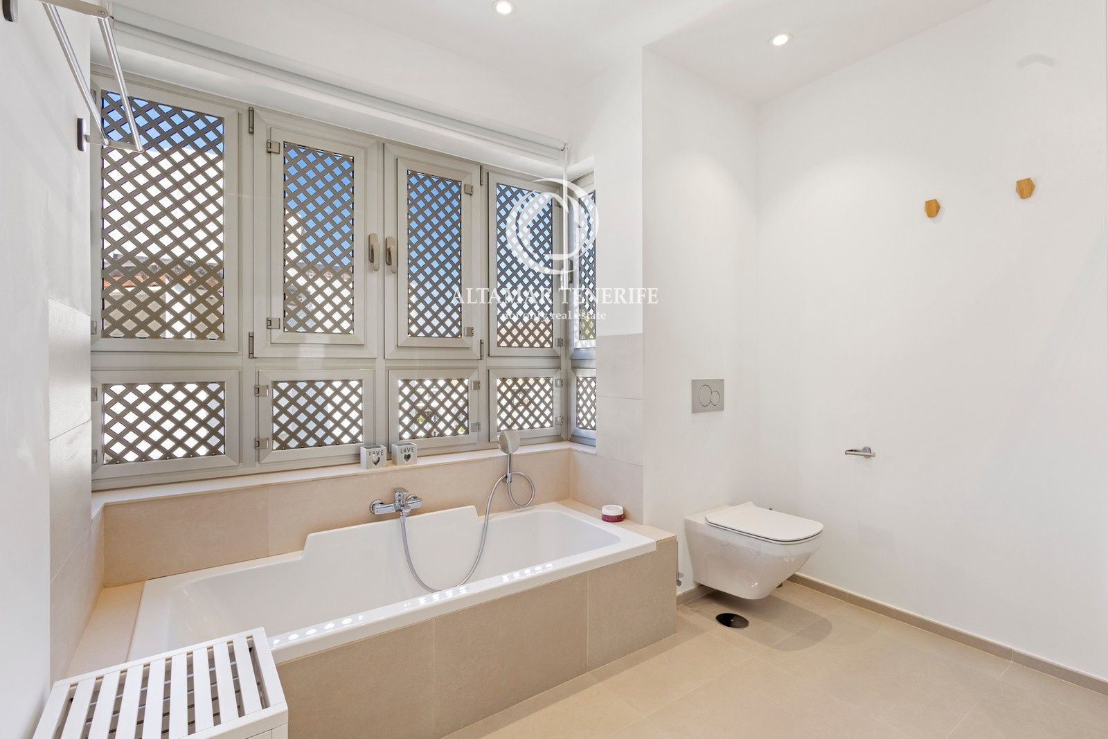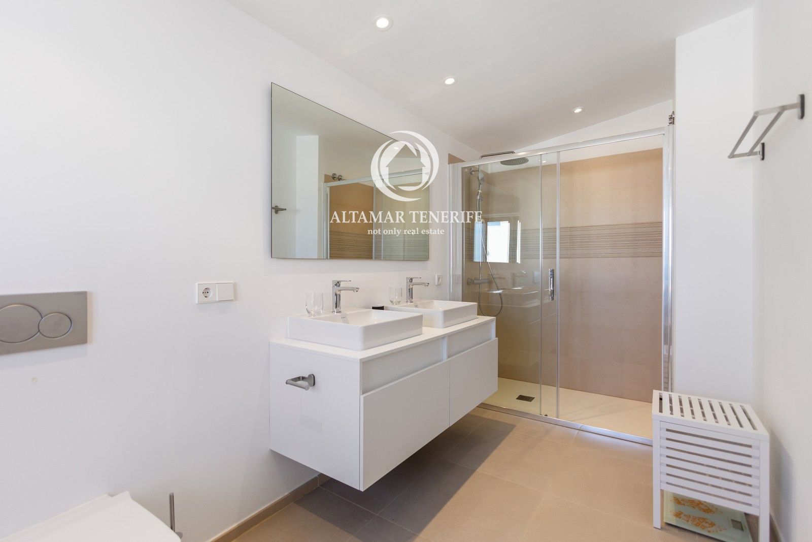 La vivienda cuenta con 3 dormitorios en suite y un aseo adicional para invitados, combinando comodidad, funcionalidad y estilo. En la planta baja, dos amplias terrazas proporcionan luminosidad y espacios al aire libre, mientras que una escalera interior conecta con el solárium privado, donde se encuentra un jacuzzi perfecto para relajarse y disfrutar del clima canario.
