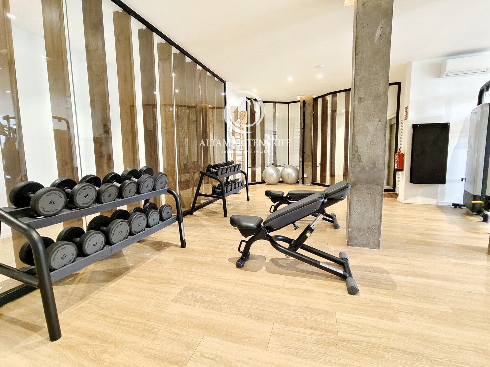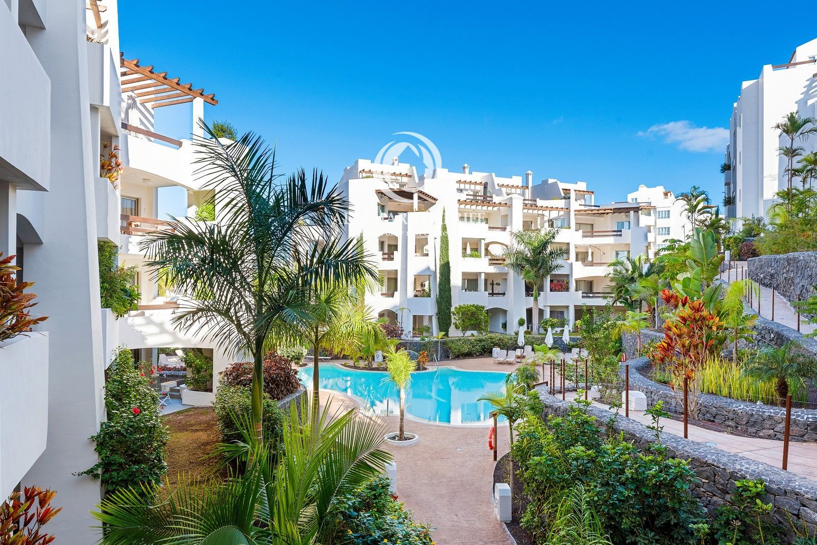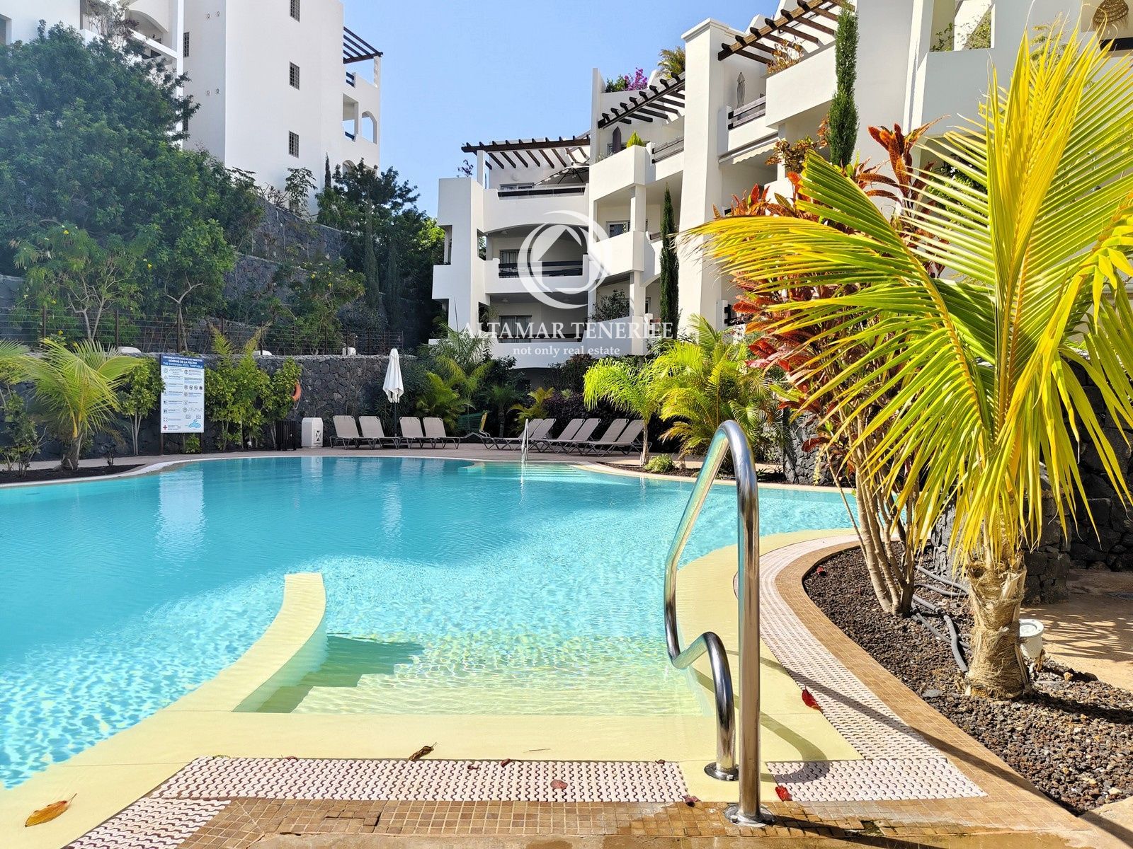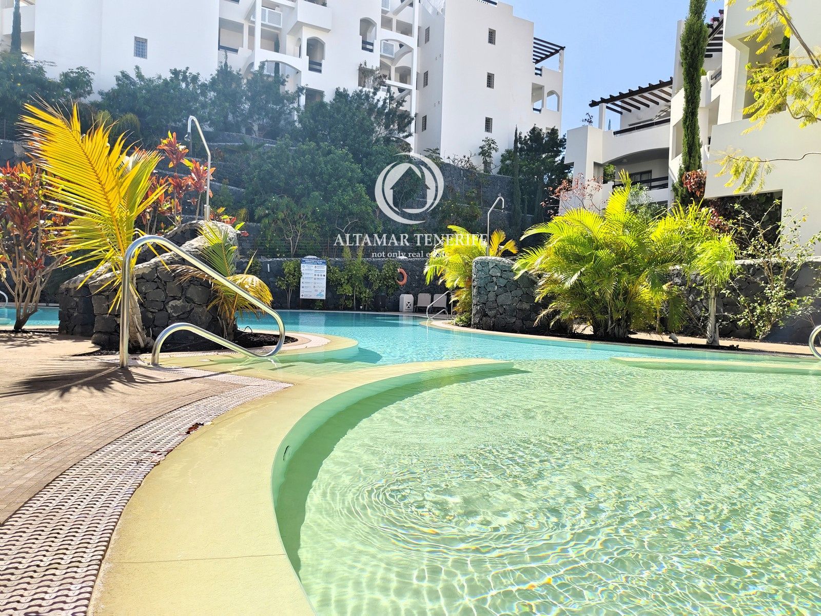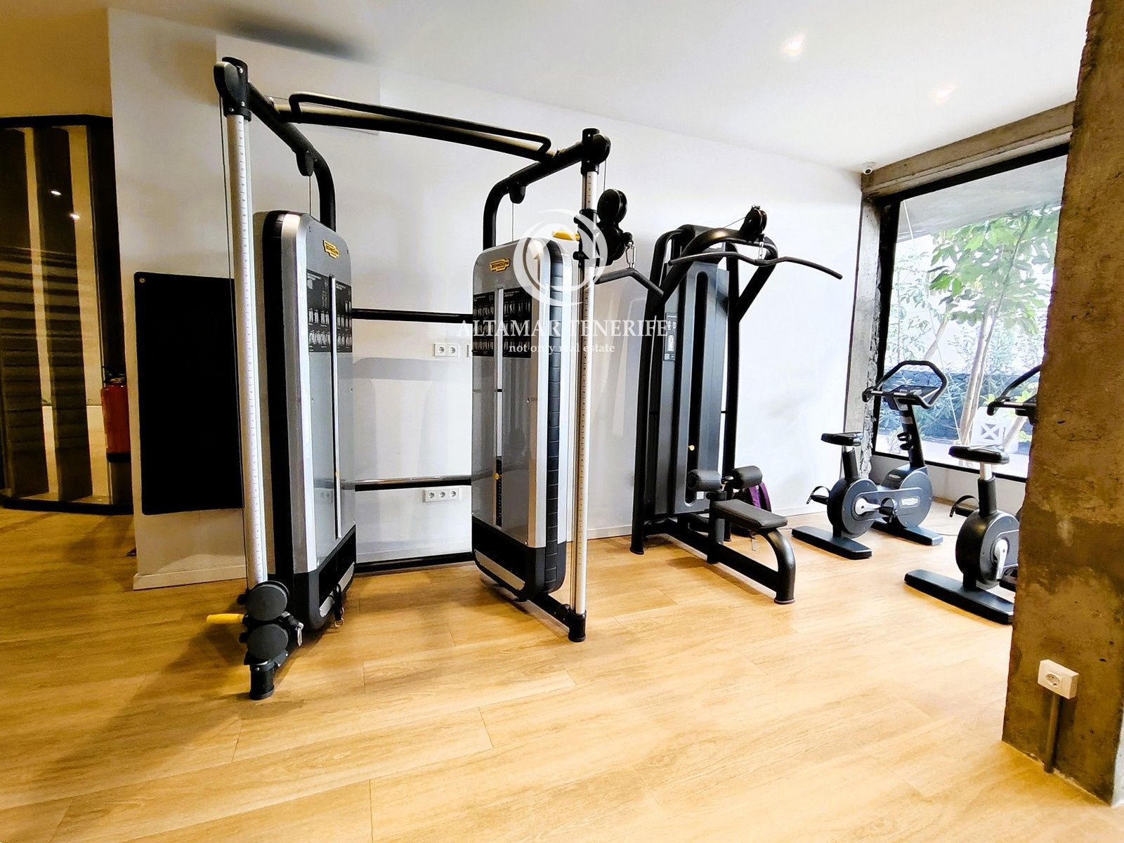 El complejo residencial Colinas de los Menceyes ofrece jardines bien cuidados, piscinas comunitarias y un gimnasio equipado con máquinas Technogym, brindando confort y calidad de vida a sus residentes.