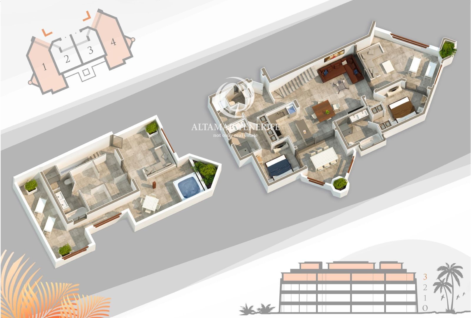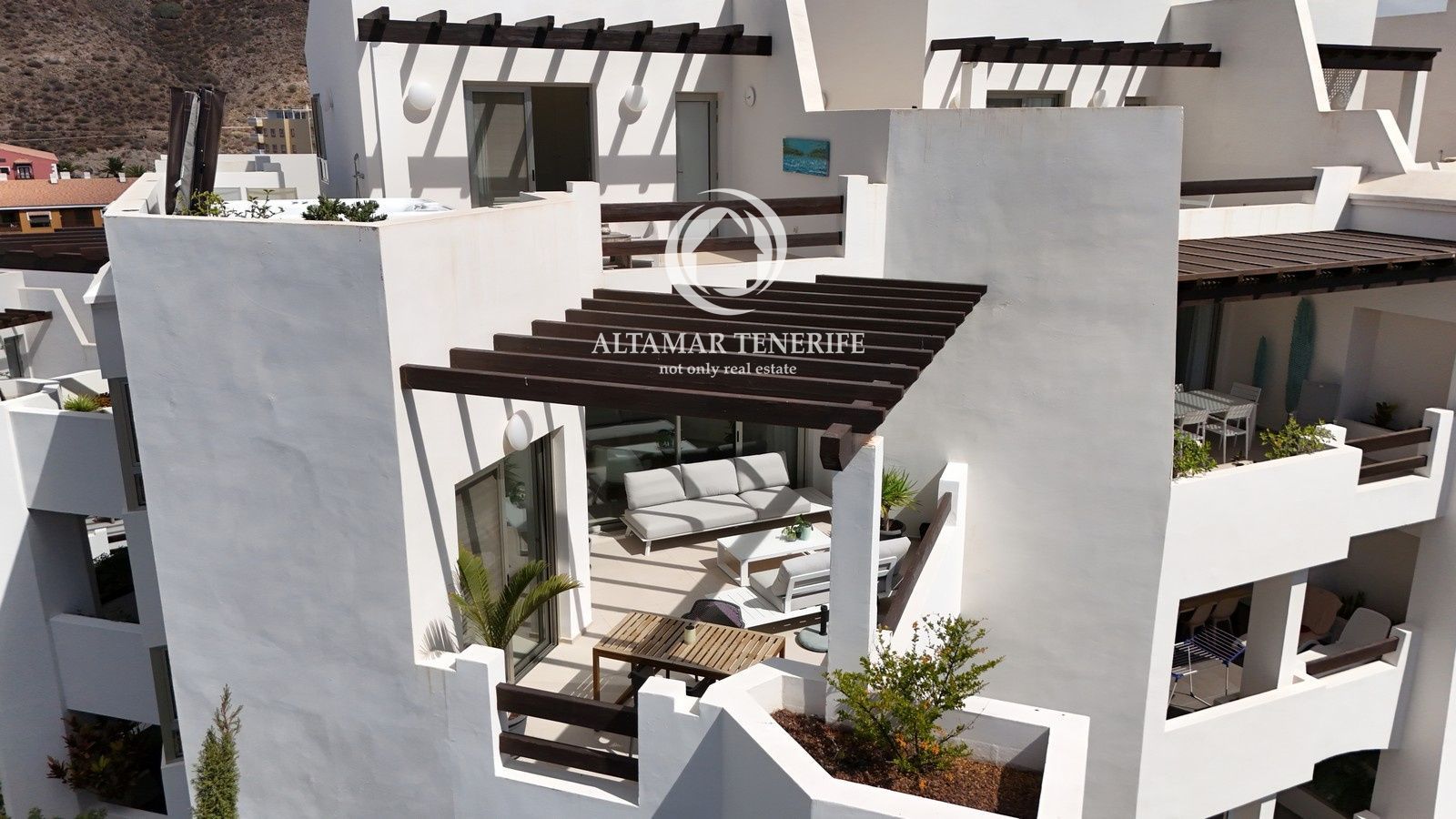 Exclusivo ático esquinero en venta en Palm-Mar, Tenerife, ubicado junto a la reserva natural La Rasca, que ofrece vistas impresionantes, privacidad y absoluta tranquilidad.