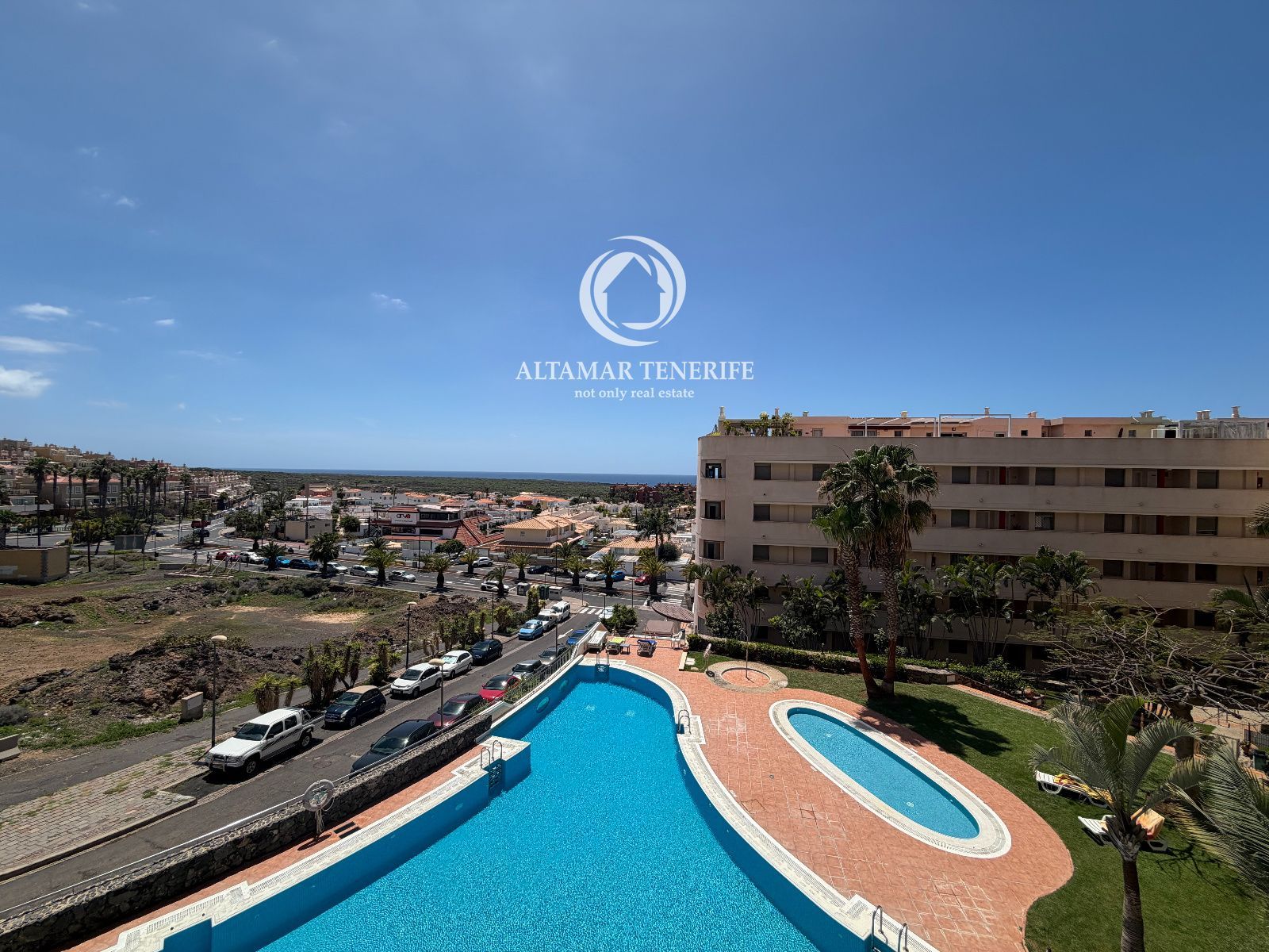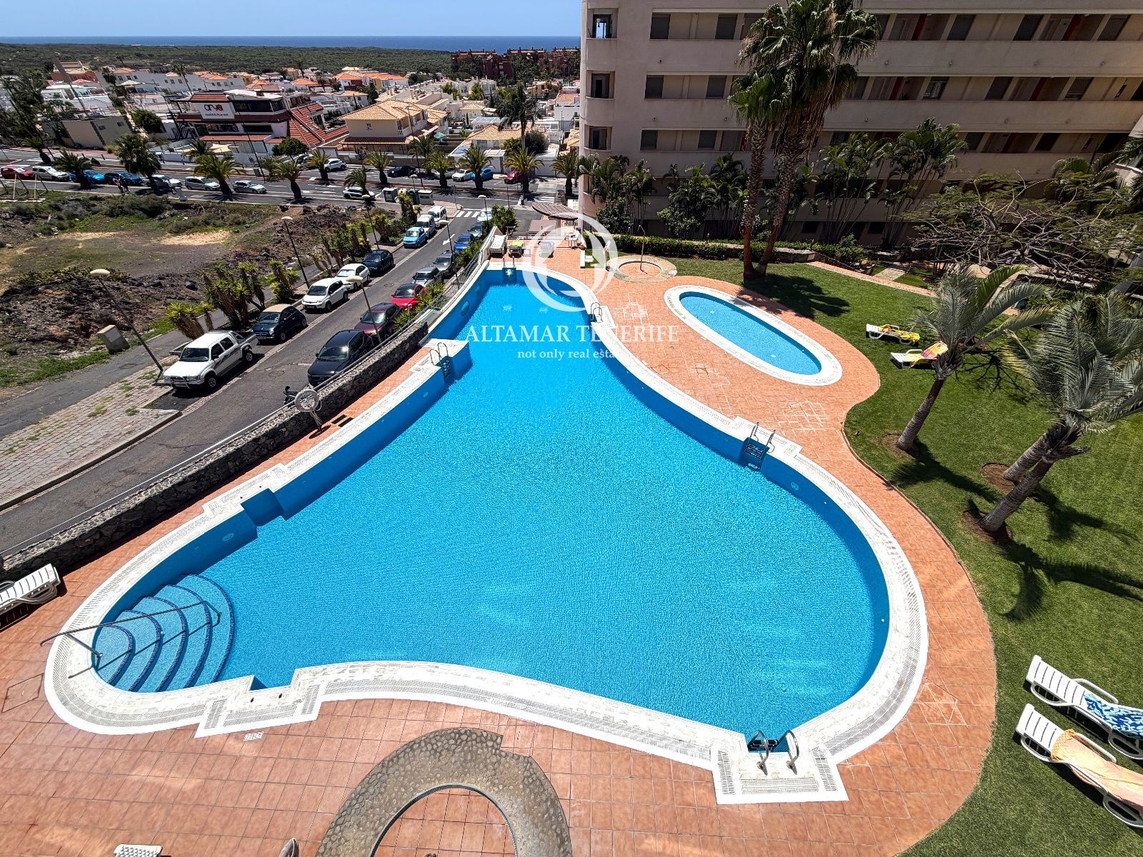 El complejo dispone de piscina comunitaria, perfecta para disfrutar del clima de la zona durante todo el año.