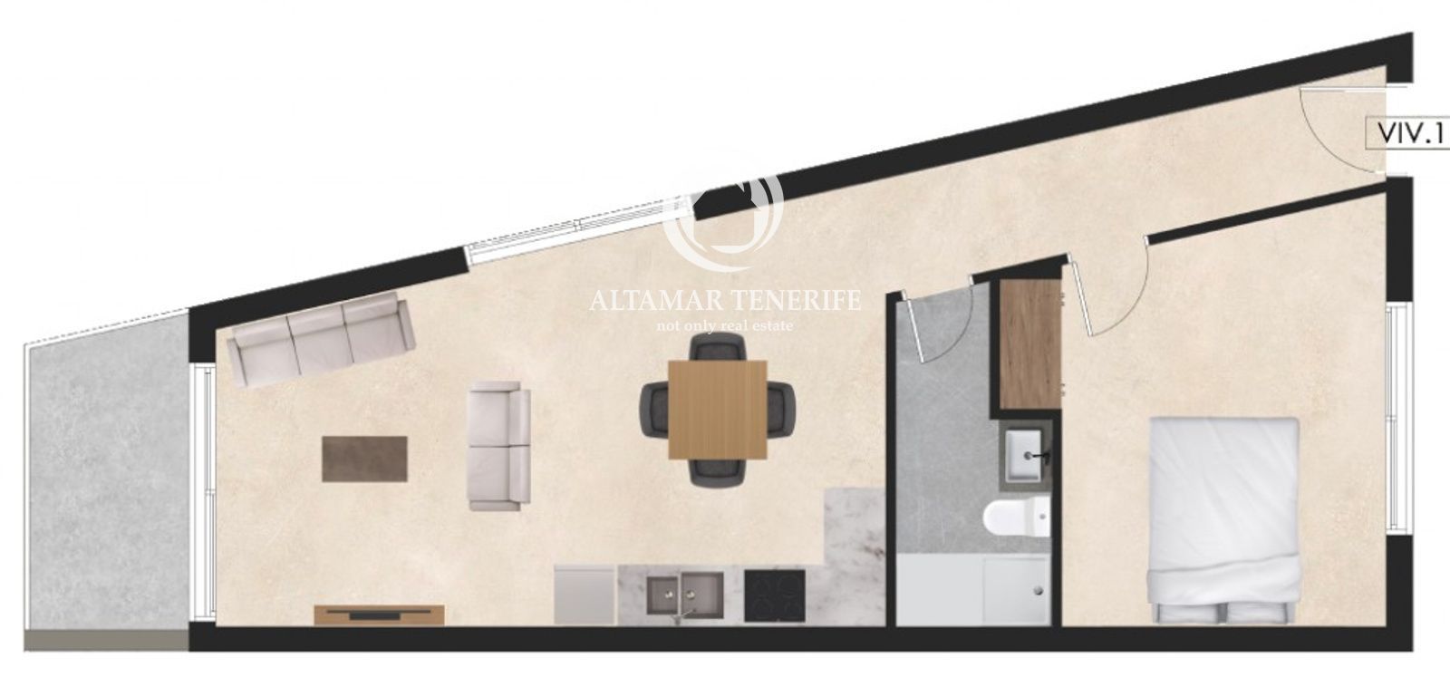 Este apartamento combina diseño, confort y funcionalidad. Su concepto abierto integra cocina totalmente equipada, comedor y salón en un único espacio luminoso, con acceso directo a una terraza privada ideal para relajarse o disfrutar del aire libre.