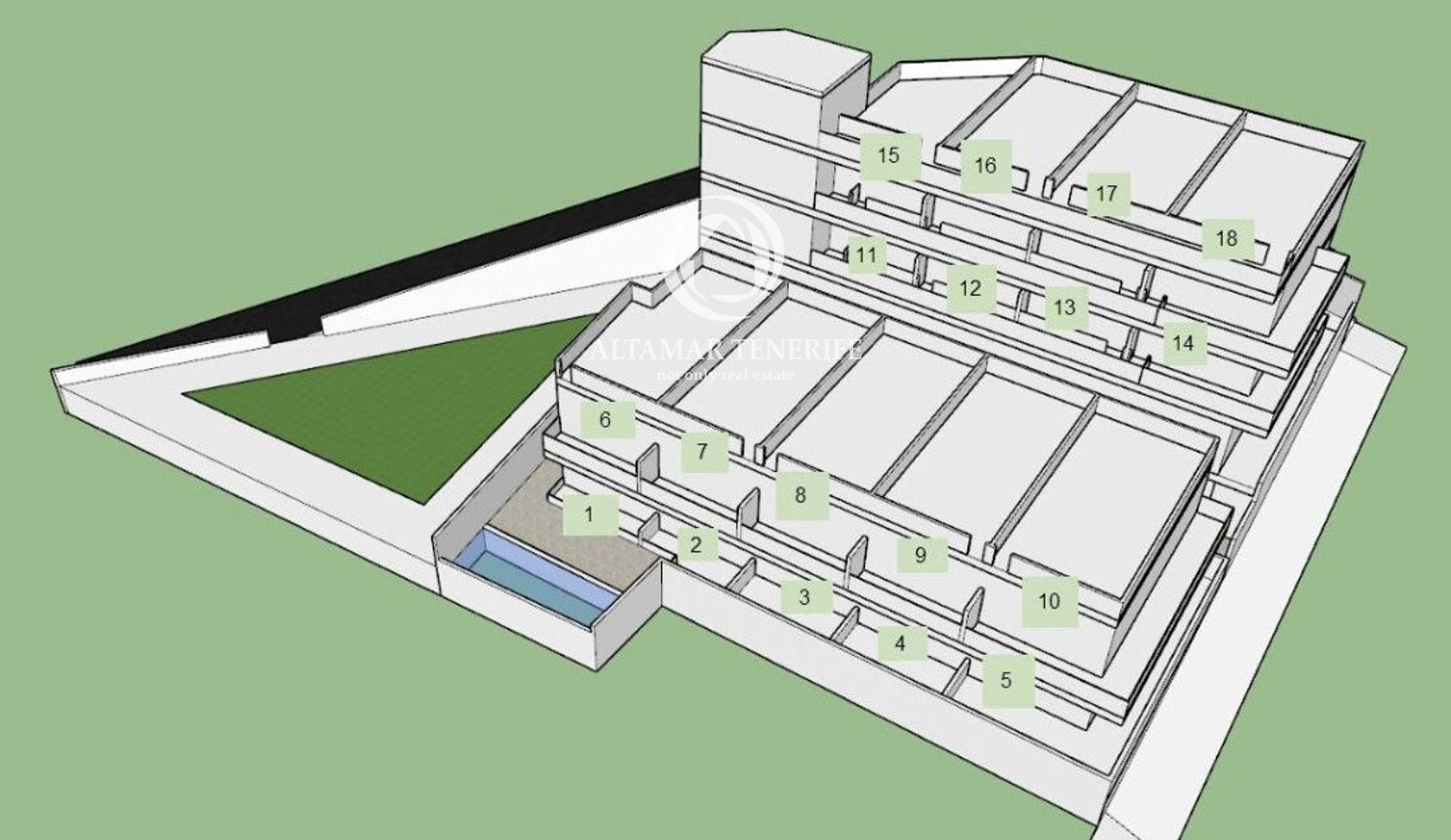 Vive en un exclusivo complejo residencial de 18 viviendas, diseñado para disfrutar del sol, la luz natural y la tranquilidad del sur de Tenerife. A solo 10 minutos de Adeje y cerca de Los Cristianos, rodeado de naturaleza y todos los servicios.