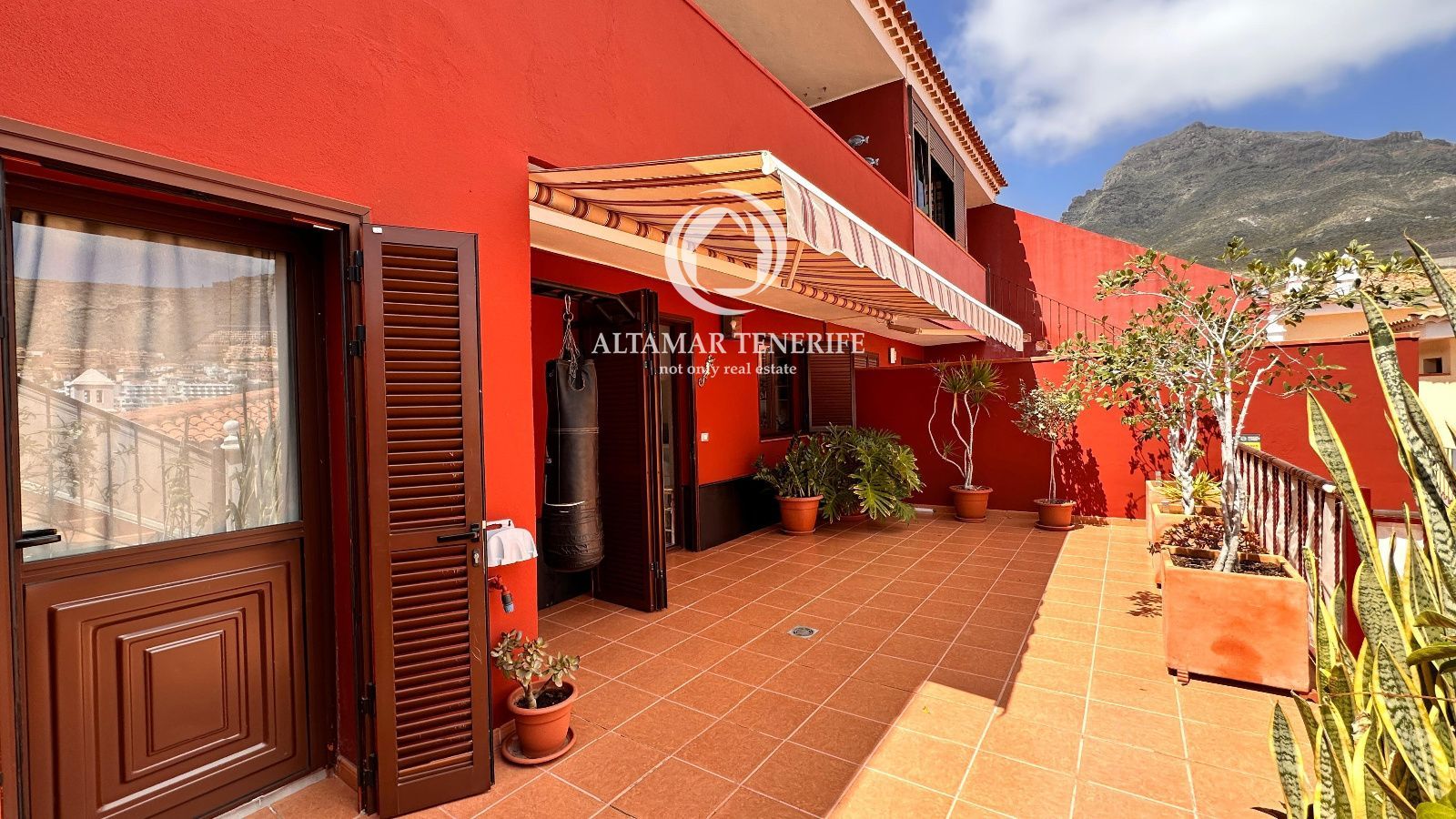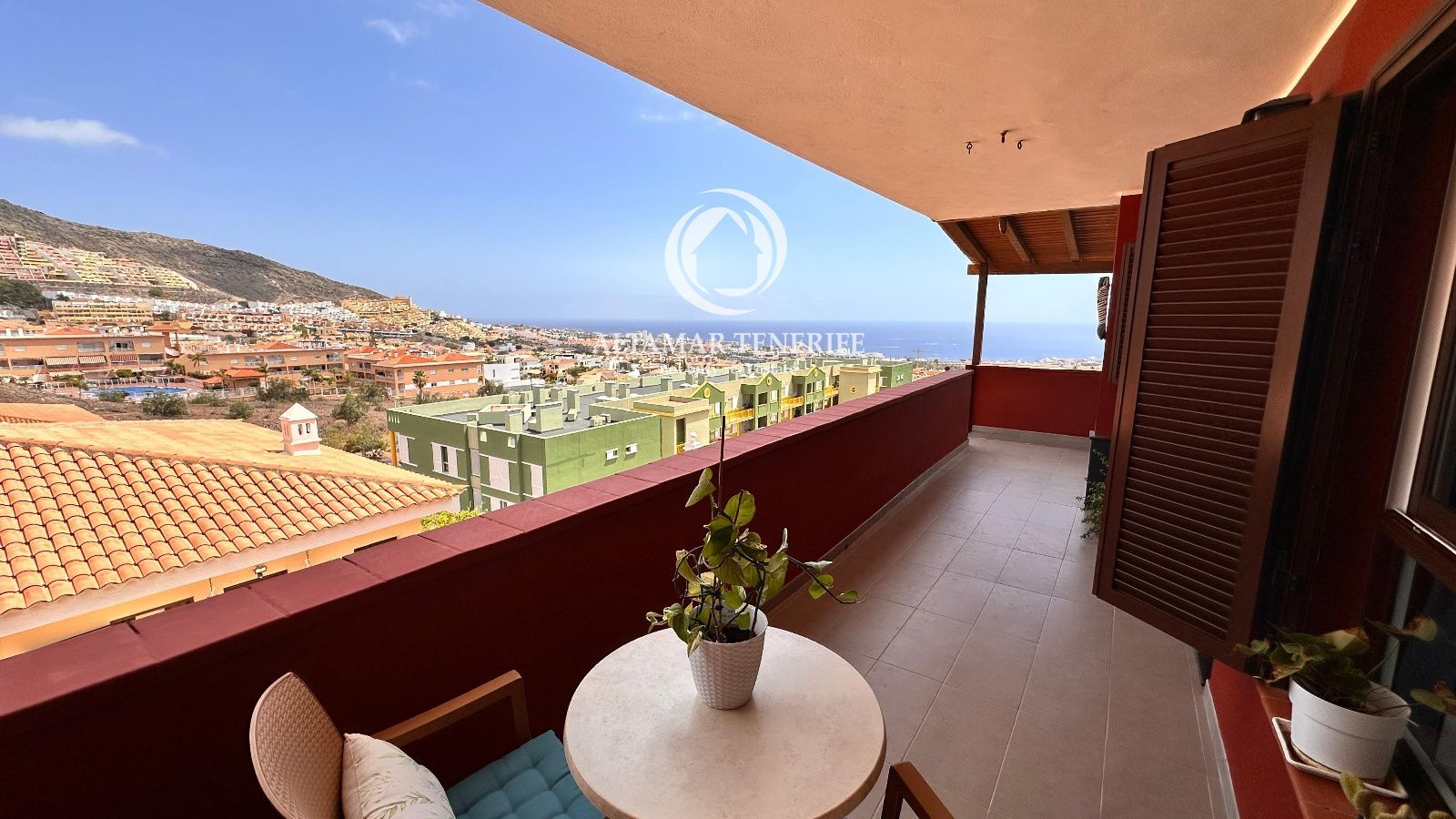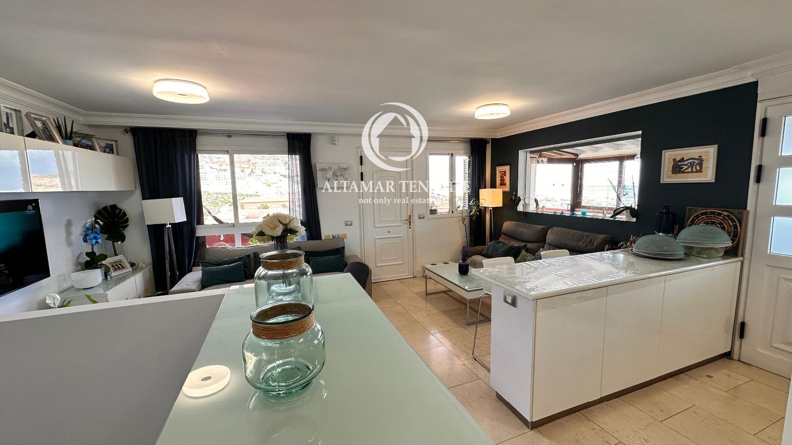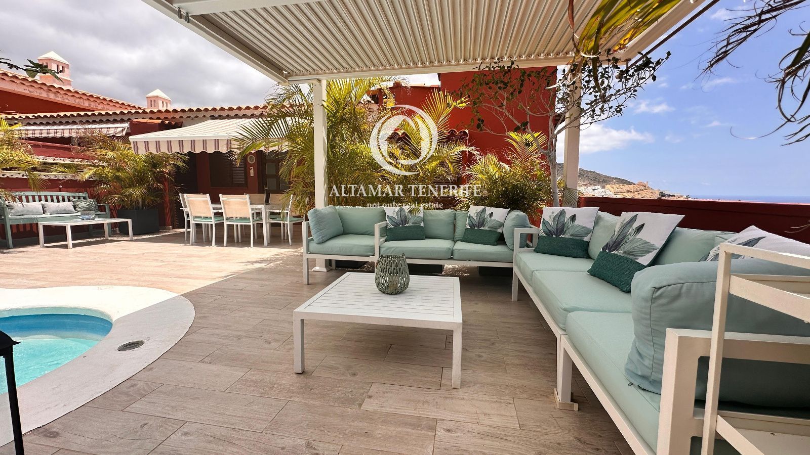 Descubre este exclusivo adosado dúplex en esquina, ubicado en la codiciada zona de Madroñal de Fañabé, una de las áreas residenciales más tranquilas y bien comunicadas de Costa Adeje. La propiedad destaca por sus impresionantes vistas panorámicas al mar y a la montaña, que se disfrutan desde prácticamente todos los espacios de la vivienda.