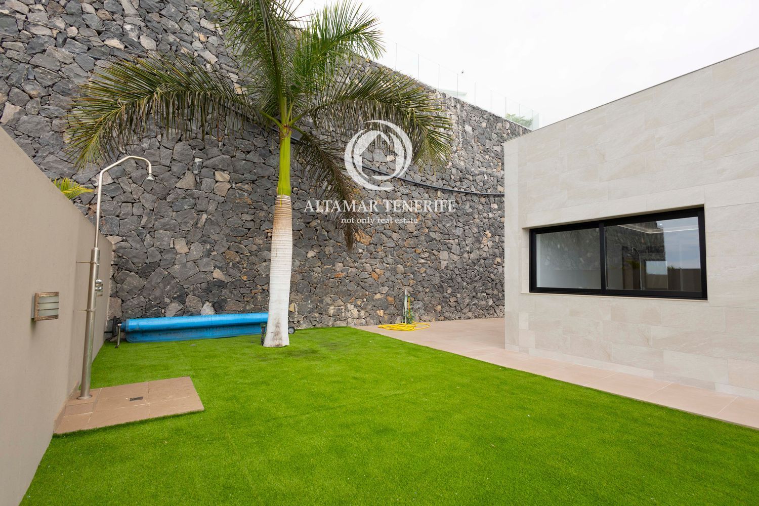 Jardín privado con ducha exterior: Un espacio perfecto para disfrutar del aire libre y refrescarte después de la piscina.