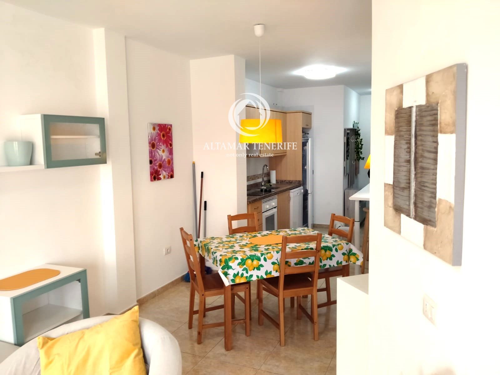 El apartamento se encuentra en un edificio cuidado y ofrece dos habitaciones —una doble y otra individual—, un baño completo, y un salón-comedor integrado con cocina equipada, creando un espacio luminoso y acogedor. Desde el balcón, equipado con barbacoa portátil, se disfrutan vistas al océano que hacen de este lugar un auténtico refugio.