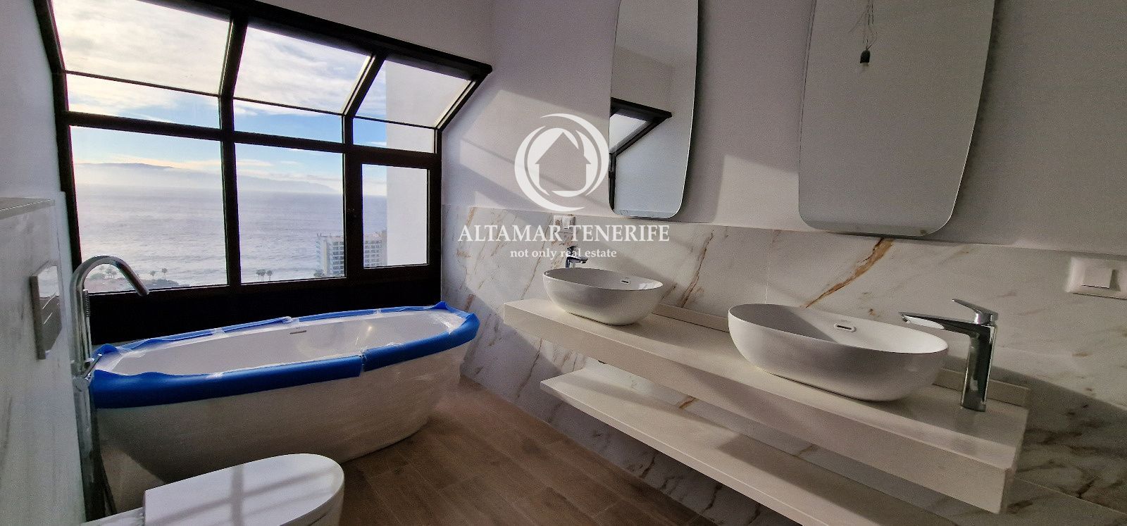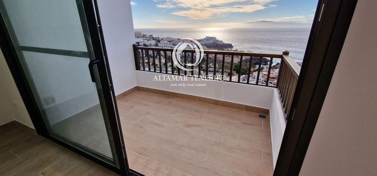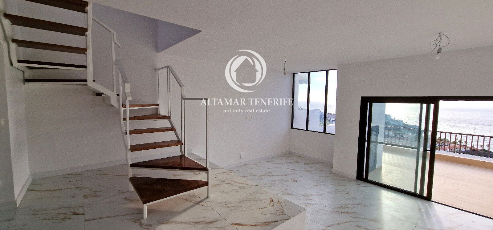 Este dúplex completamente renovado cuenta con cocina moderna equipada, salón-comedor luminoso y terraza de 49 m² con vistas al Atlántico y las islas cercanas. En la planta superior hay dos dormitorios dobles, uno con balcón privado, y un baño con ducha y bañera frente a un ventanal panorámico.