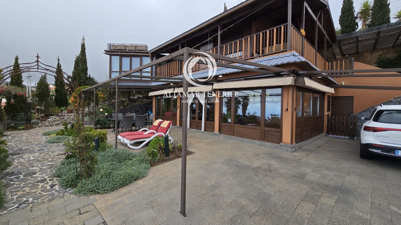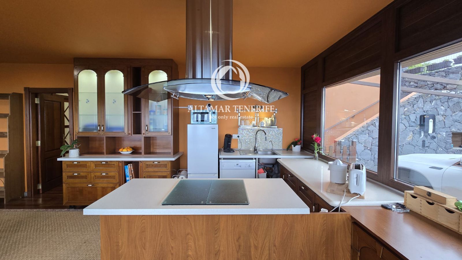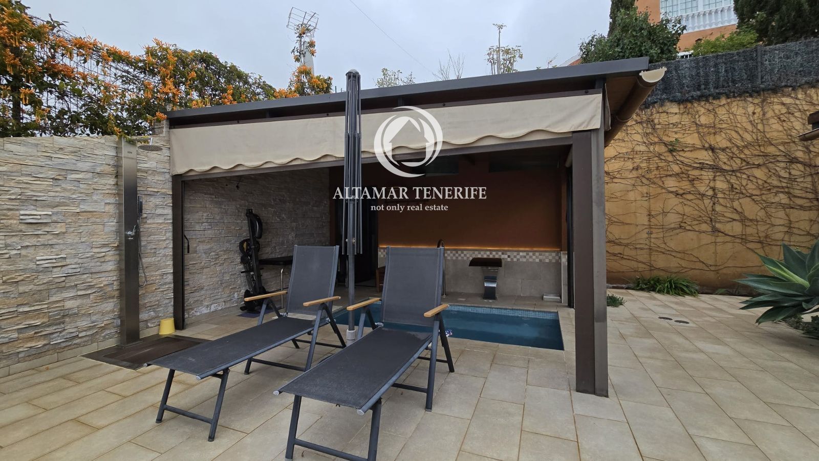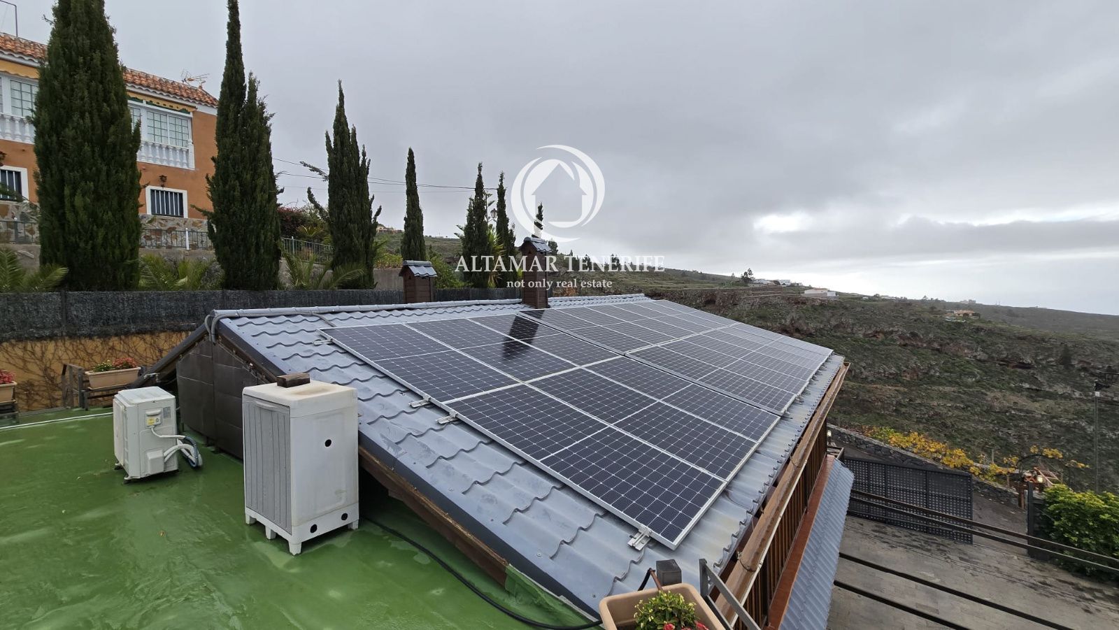 La casa se vende completamente amueblada y equipada, con sistema de filtración de agua, reciclaje de aguas, plaza de aparcamiento con toma para coche eléctrico, huerto y pequeña cueva/bodega. Una joya arquitectónica que combina diseño, sostenibilidad y confort con vistas infinitas al océano.