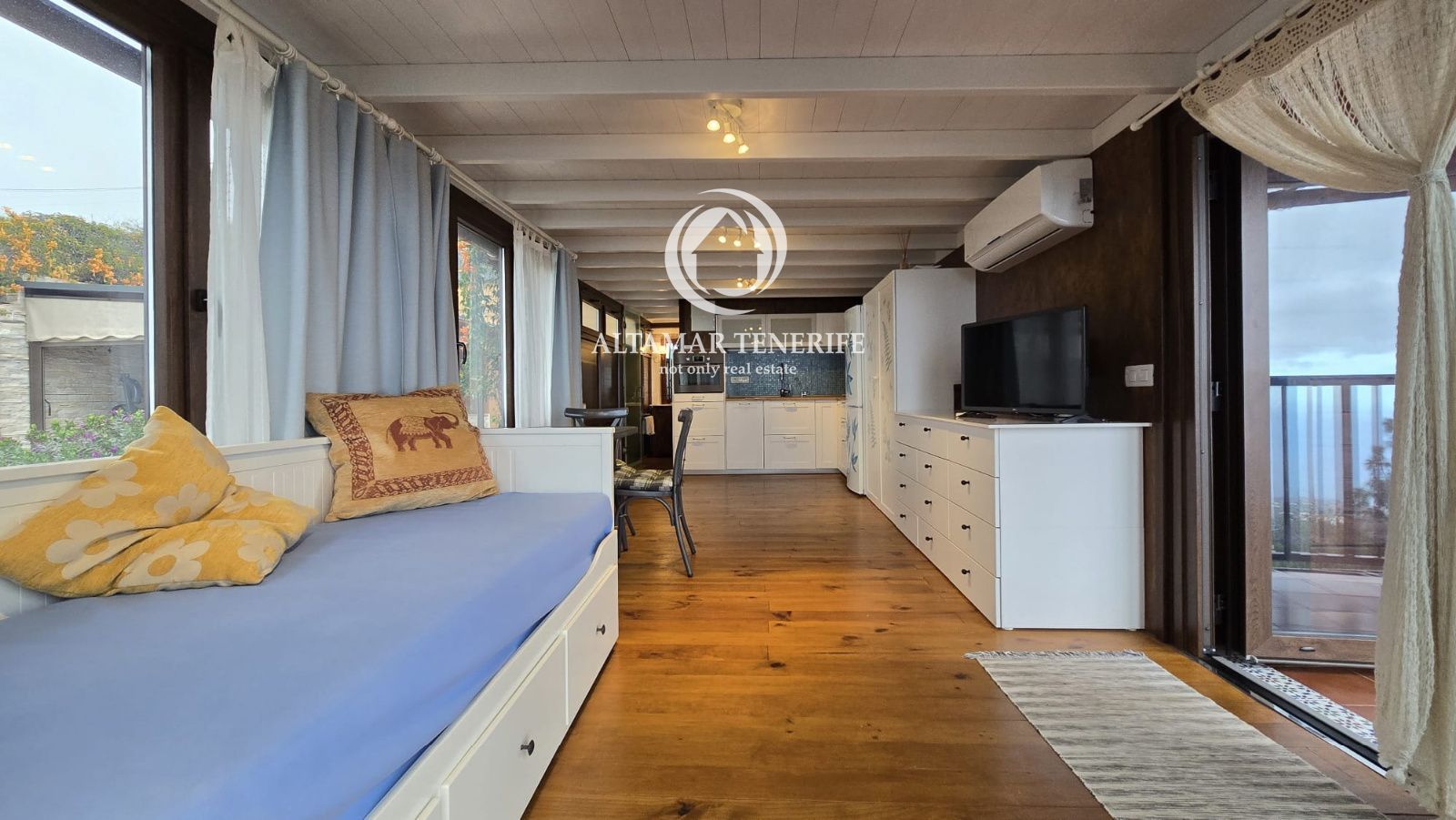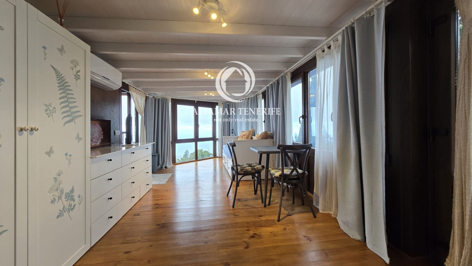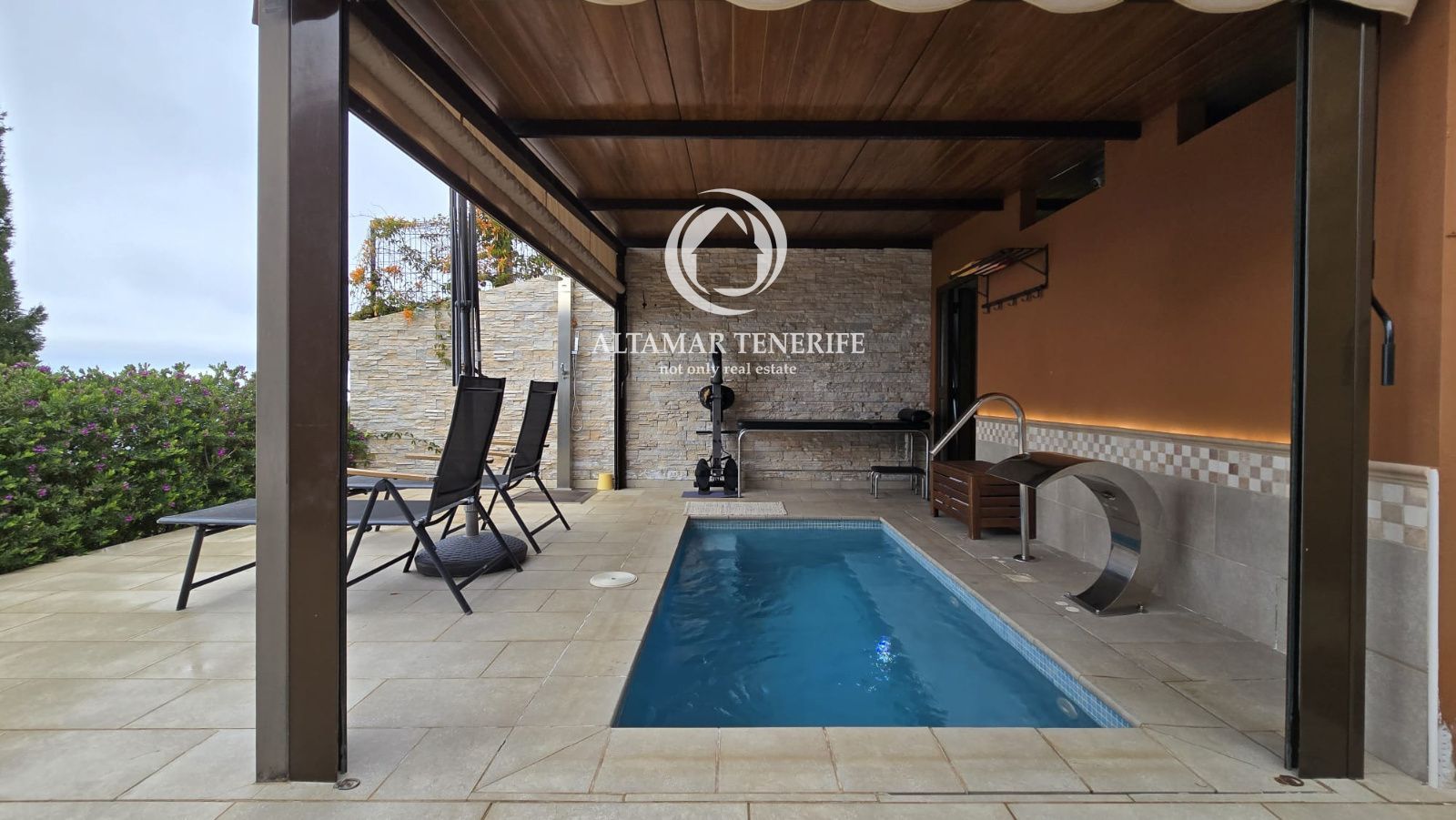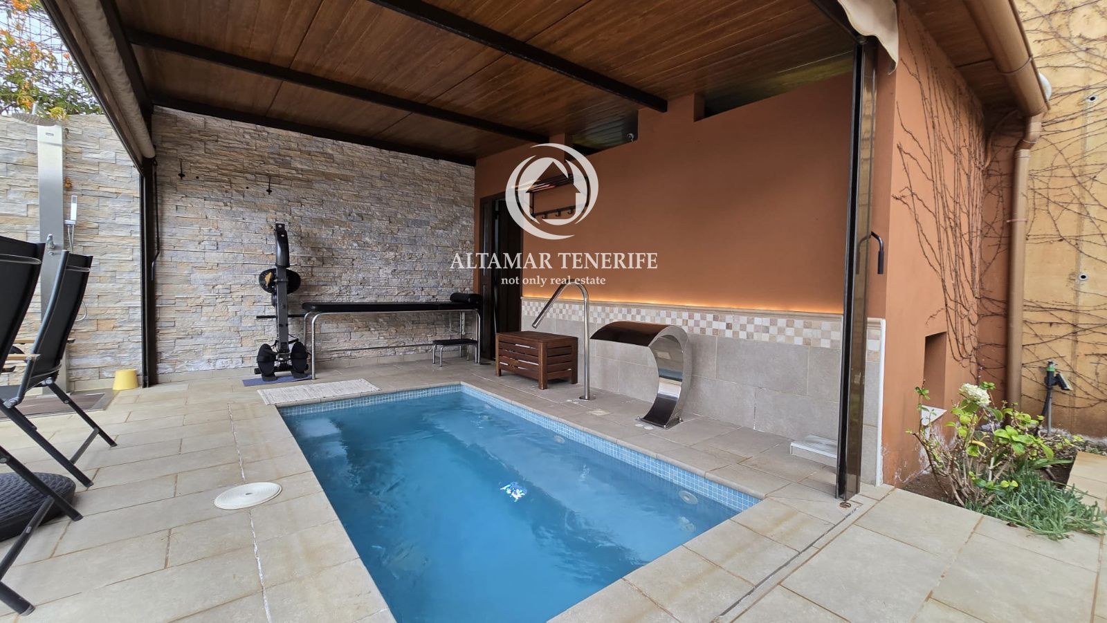 La casa se vende completamente amueblada y equipada, con sistema de filtración de agua, reciclaje de aguas, plaza de aparcamiento con toma para coche eléctrico, huerto y pequeña cueva/bodega. Una joya arquitectónica que combina diseño, sostenibilidad y confort con vistas infinitas al océano.