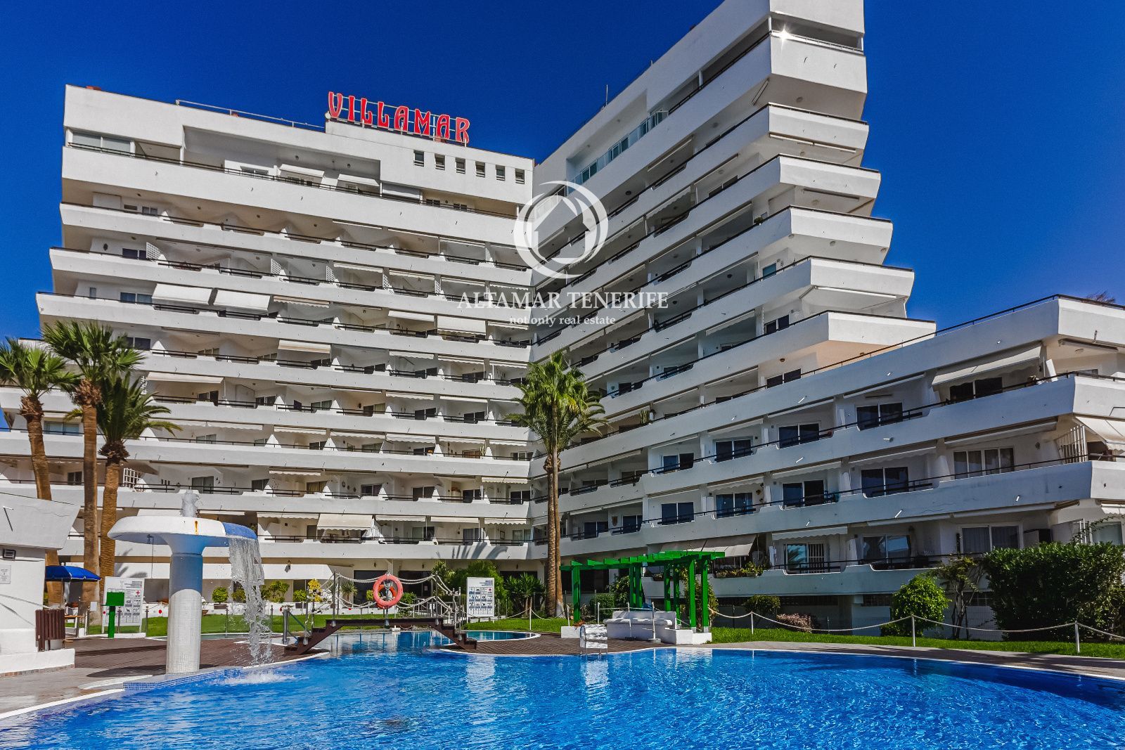 Descubre este encantador apartamento de un dormitorio con impresionantes vistas al océano y al complejo turístico, ubicado en el prestigioso Club Villamar, en el corazón de Las Américas, una de las zonas más animadas y turísticas de Tenerife. Su ubicación es inmejorable: a solo 250 metros de la playa, siguiendo el paseo marítimo, y a 3 minutos a pie del supermercado Mercadona, ofreciendo comodidad y acceso rápido a todos los servicios del centro turístico.