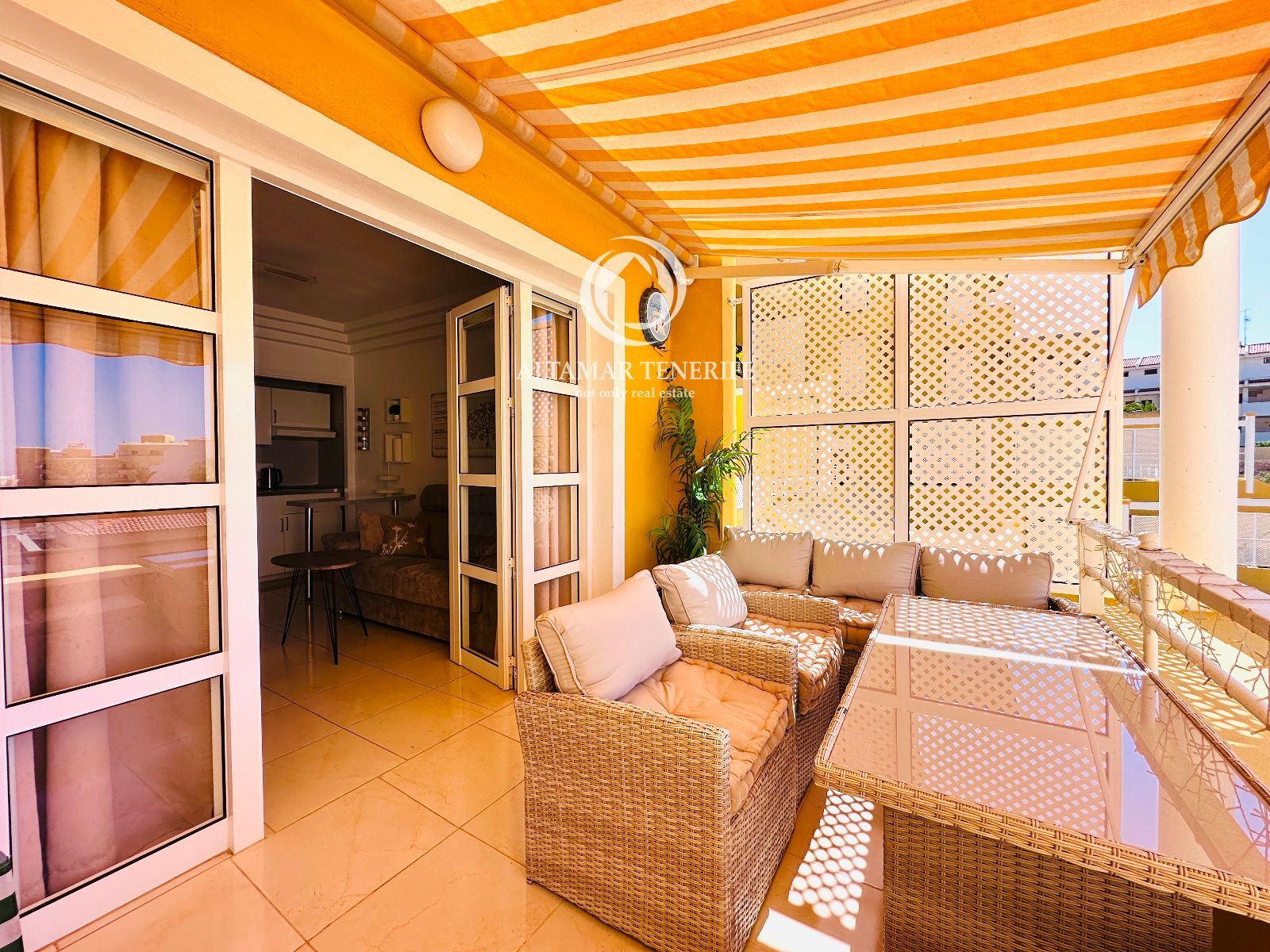 Este acogedor apartamento de un dormitorio y 51 m² está situado en el Complejo Orlando, en el piso 3 del bloque 5, en pleno centro de la zona turística de Las Américas, a pocos minutos caminando de la playa. Su excelente ubicación permite disfrutar del mar, restaurantes y ocio sin necesidad de utilizar el coche.