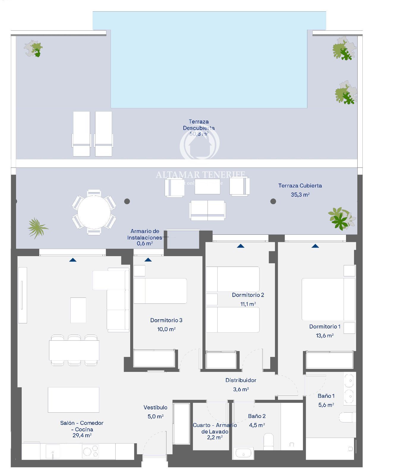 Scopri questo splendido appartamento di nuova costruzione con 3 ampie camere da letto e 2 bagni, progettato per offrire il massimo comfort e funzionalità. Con 223 m², dispone di una grande terrazza luminosa, perfetta per godersi il clima eccezionale di Tenerife. Include inoltre garage e cantina, per uno spazio extra e una maggiore comodità.
