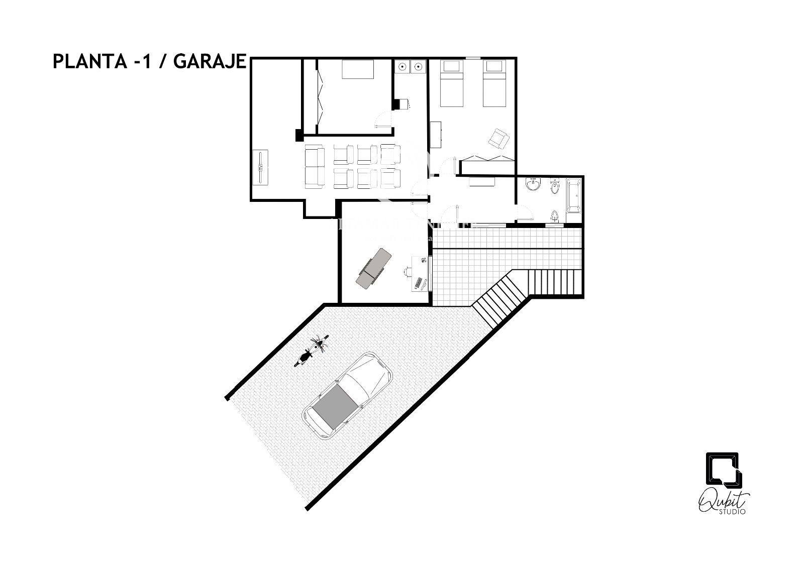 Al piano inferiore c'è un grande garage per più veicoli e uno spazio extra da personalizzare — palestra, sala giochi, cinema o ufficio: a te la scelta!