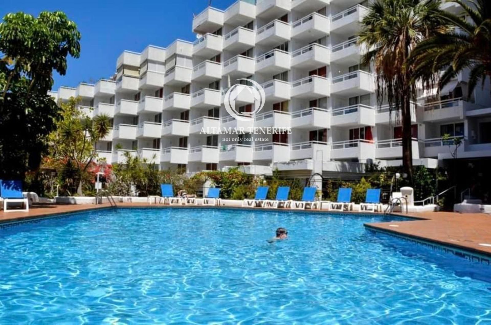 Altamar Tenerife Real Estate è lieta di presentare questo monolocale nell'Apartotel La Ponderosa, un complesso ben mantenuto che offre due piscine (una riscaldata), giardini curati, un parco giochi per bambini e ascensori. La sua posizione è impareggiabile: a soli 5 minuti a piedi dalla Playa del Bobo, una spiaggia tranquilla con una pittoresca passeggiata ricca di negozi, ristoranti e opzioni di intrattenimento.